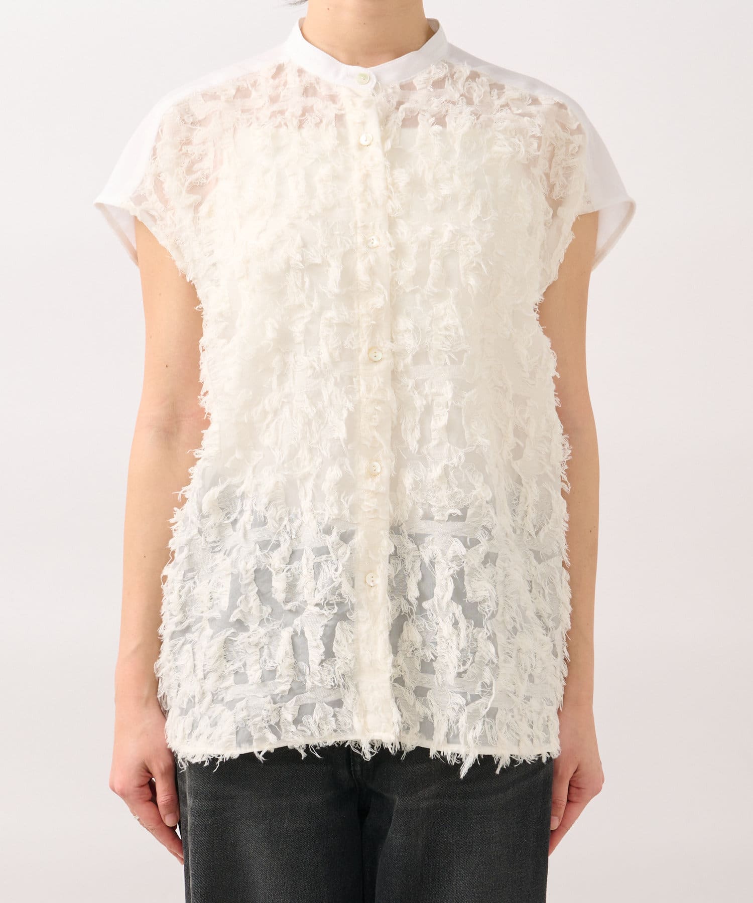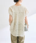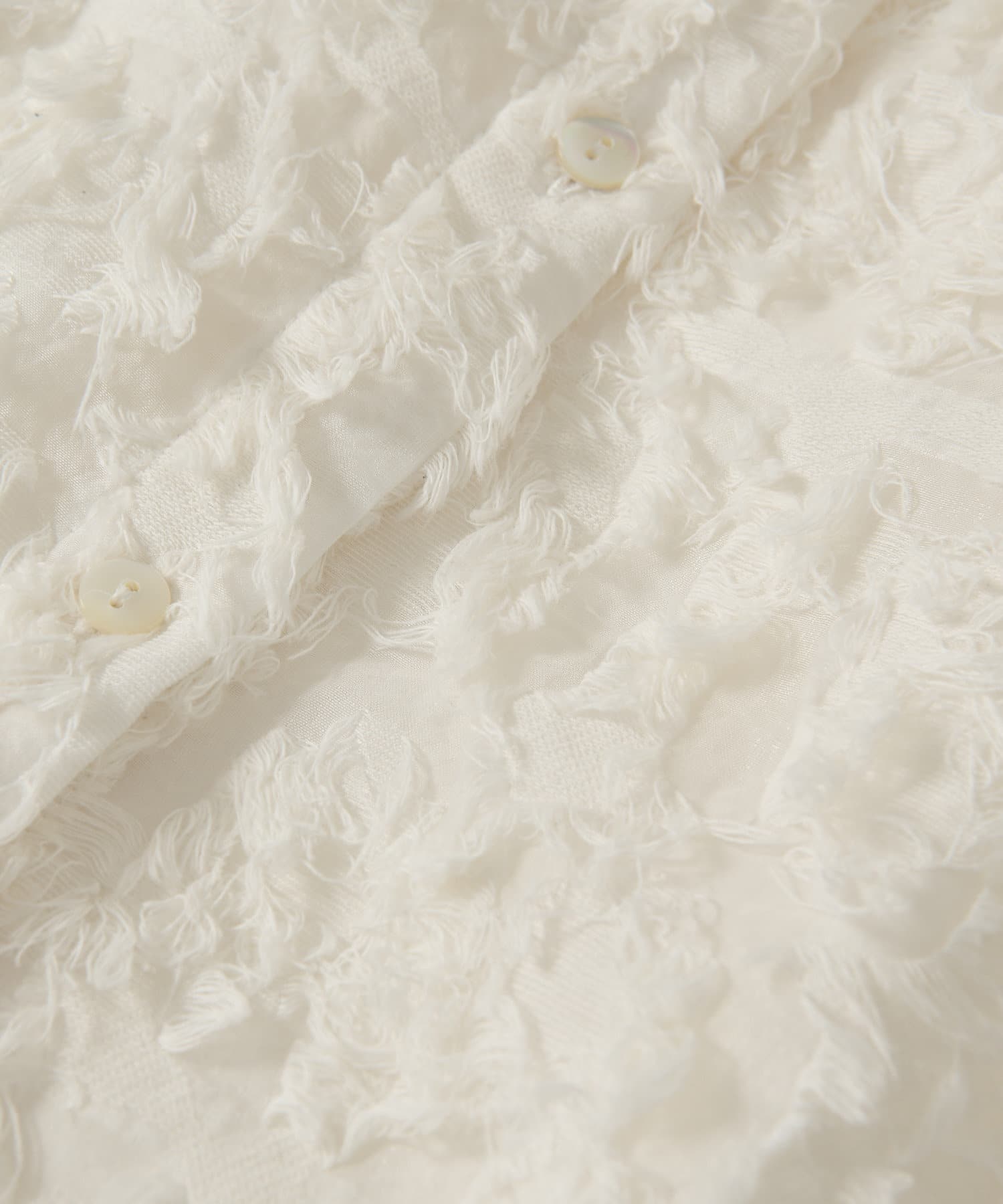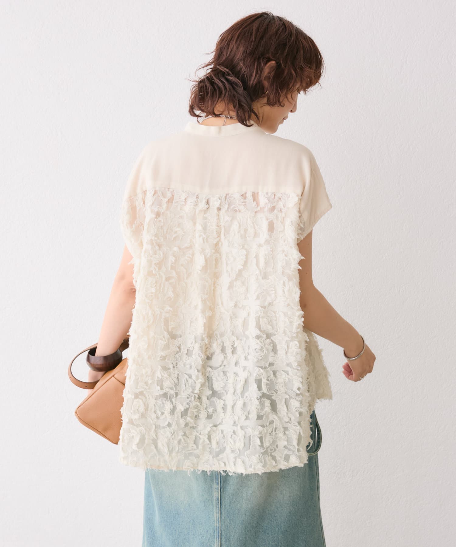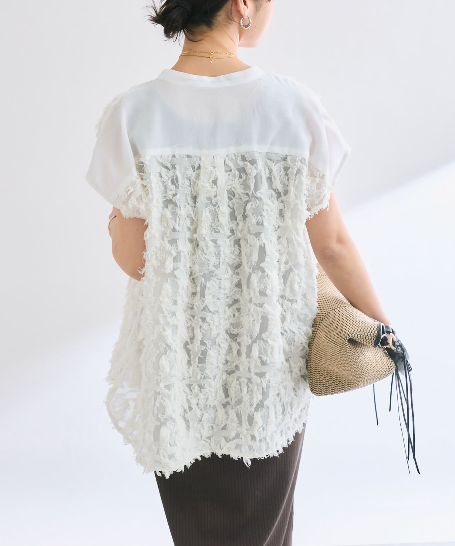 立体的なジャガード素材を使用した華やかな半袖ブラウス。