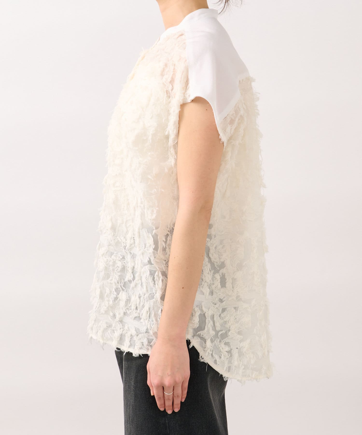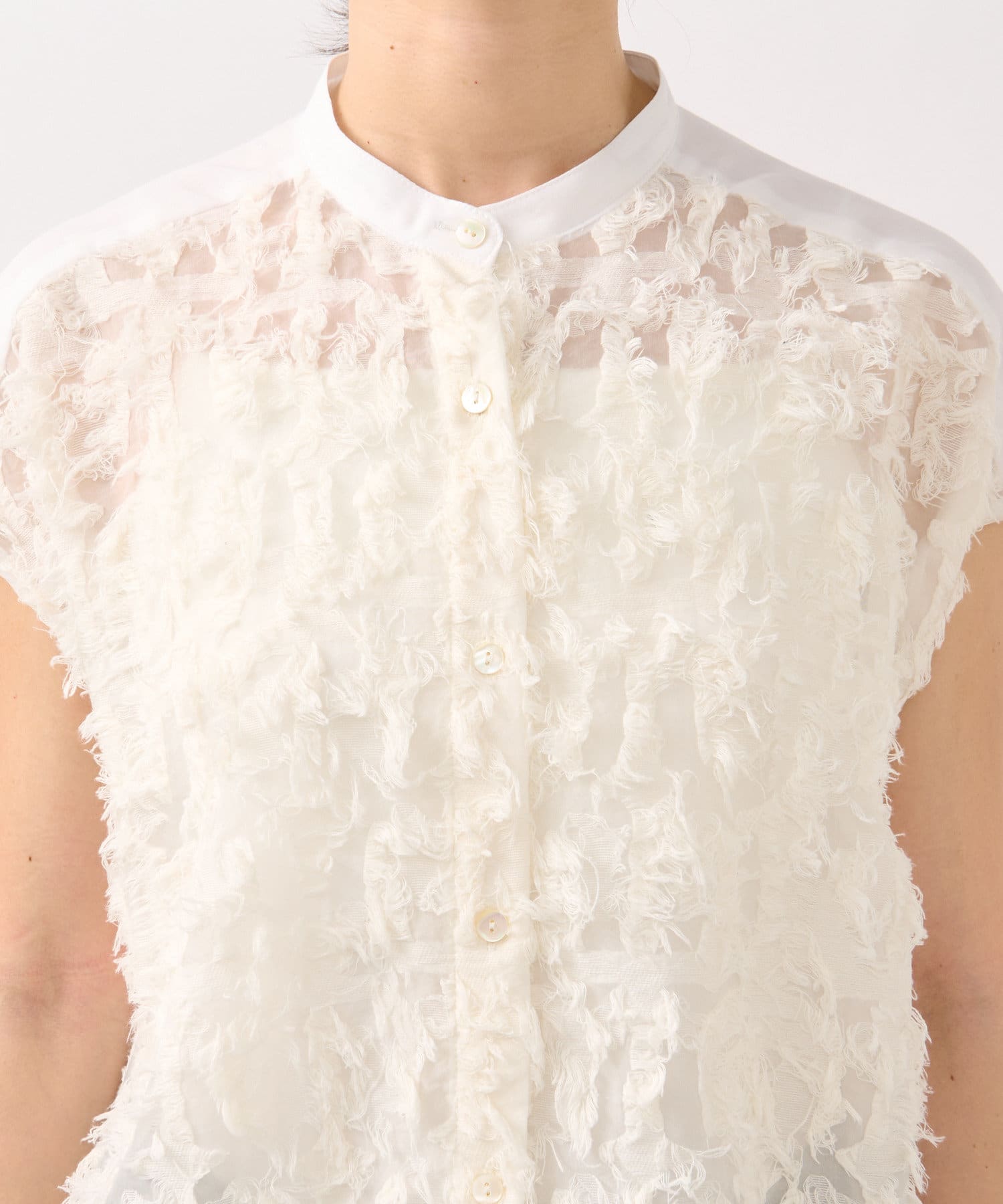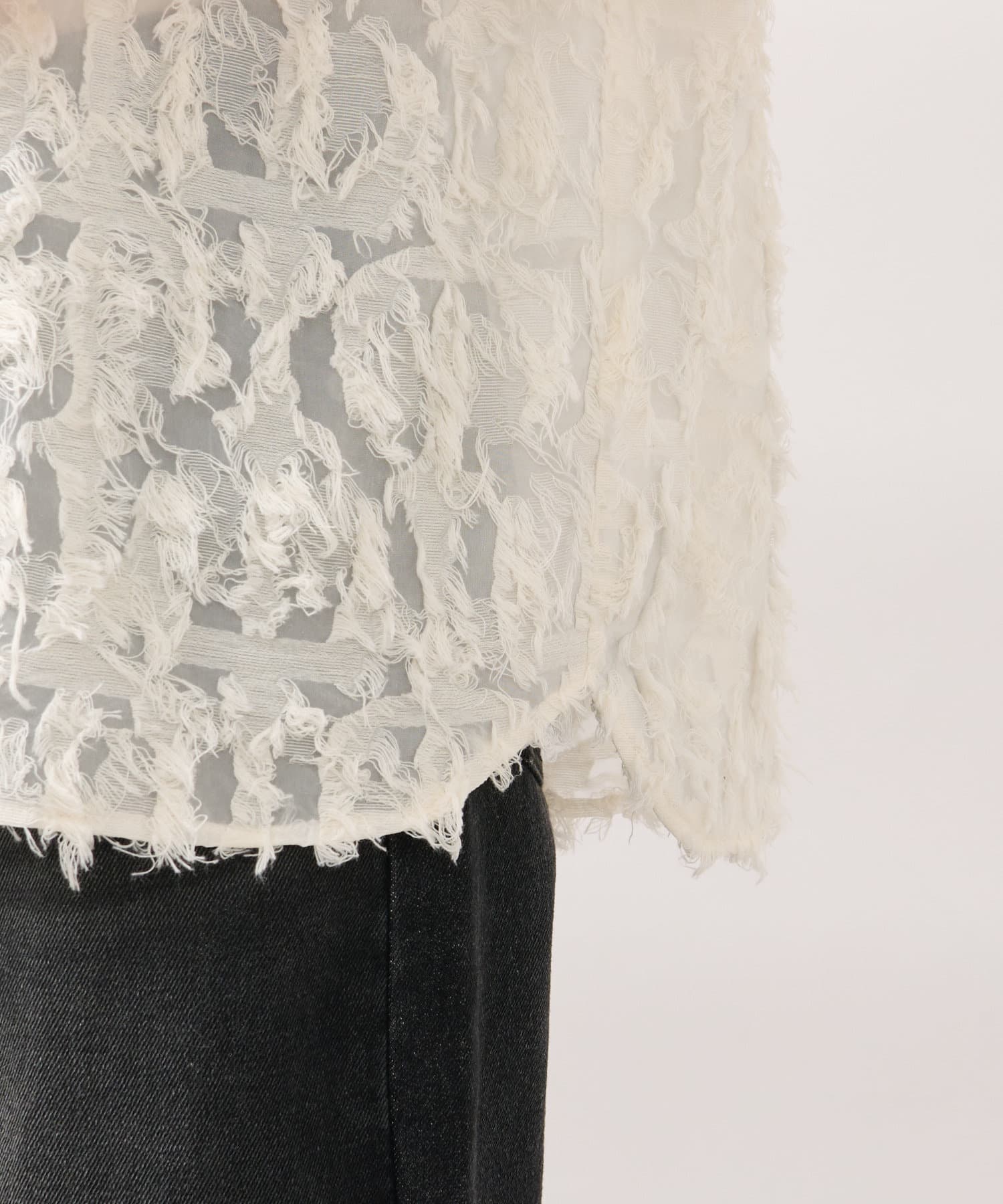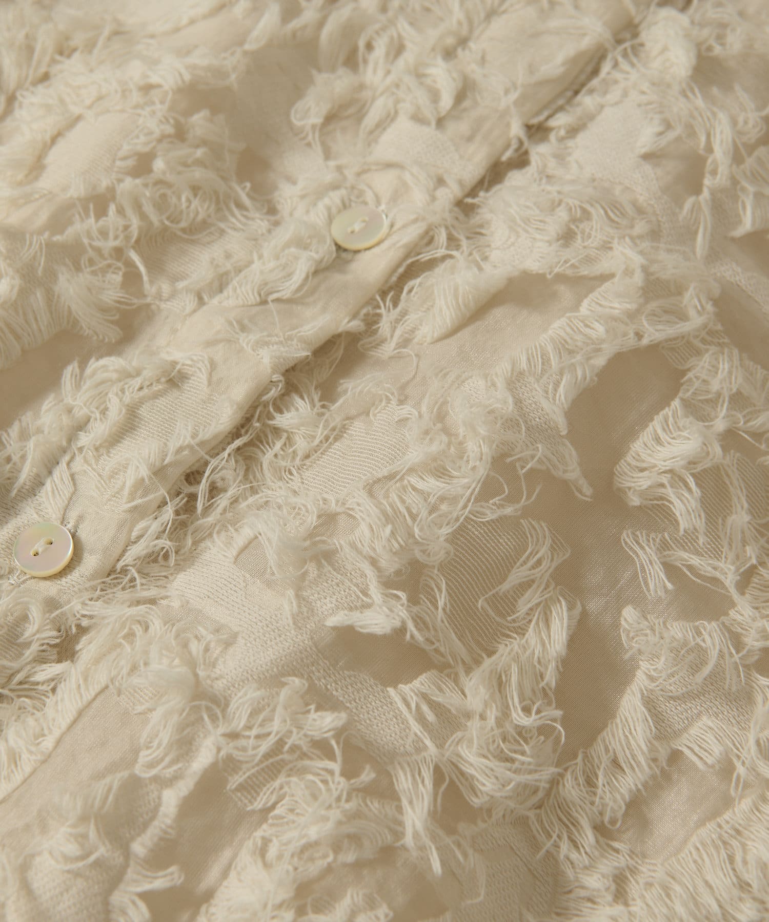 立体的なジャガード素材を使用した華やかな半袖ブラウス。