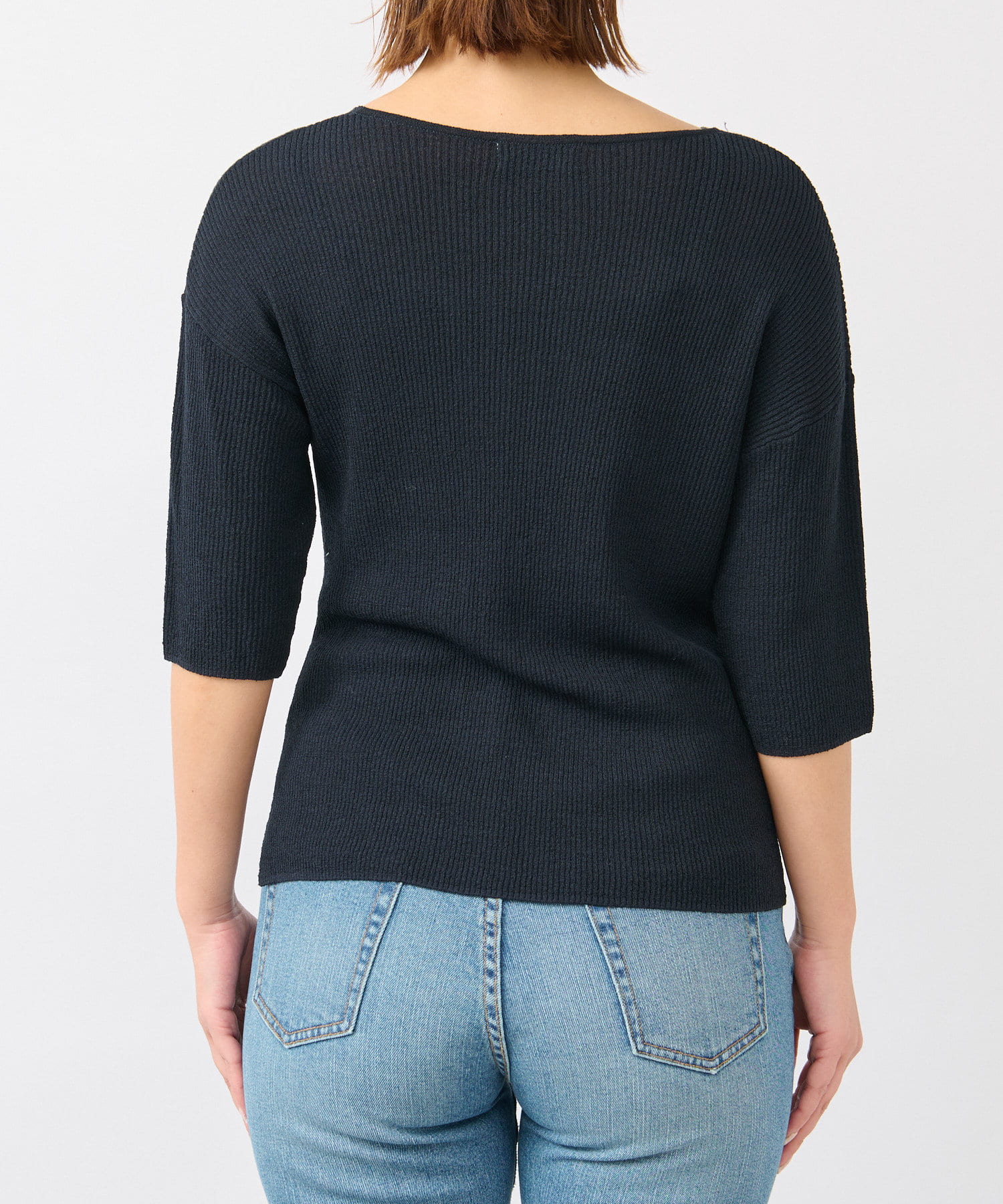 程よいフィット感のリブ編みと五分袖で、細見えするシルエットを演出します。