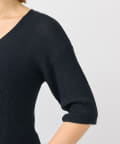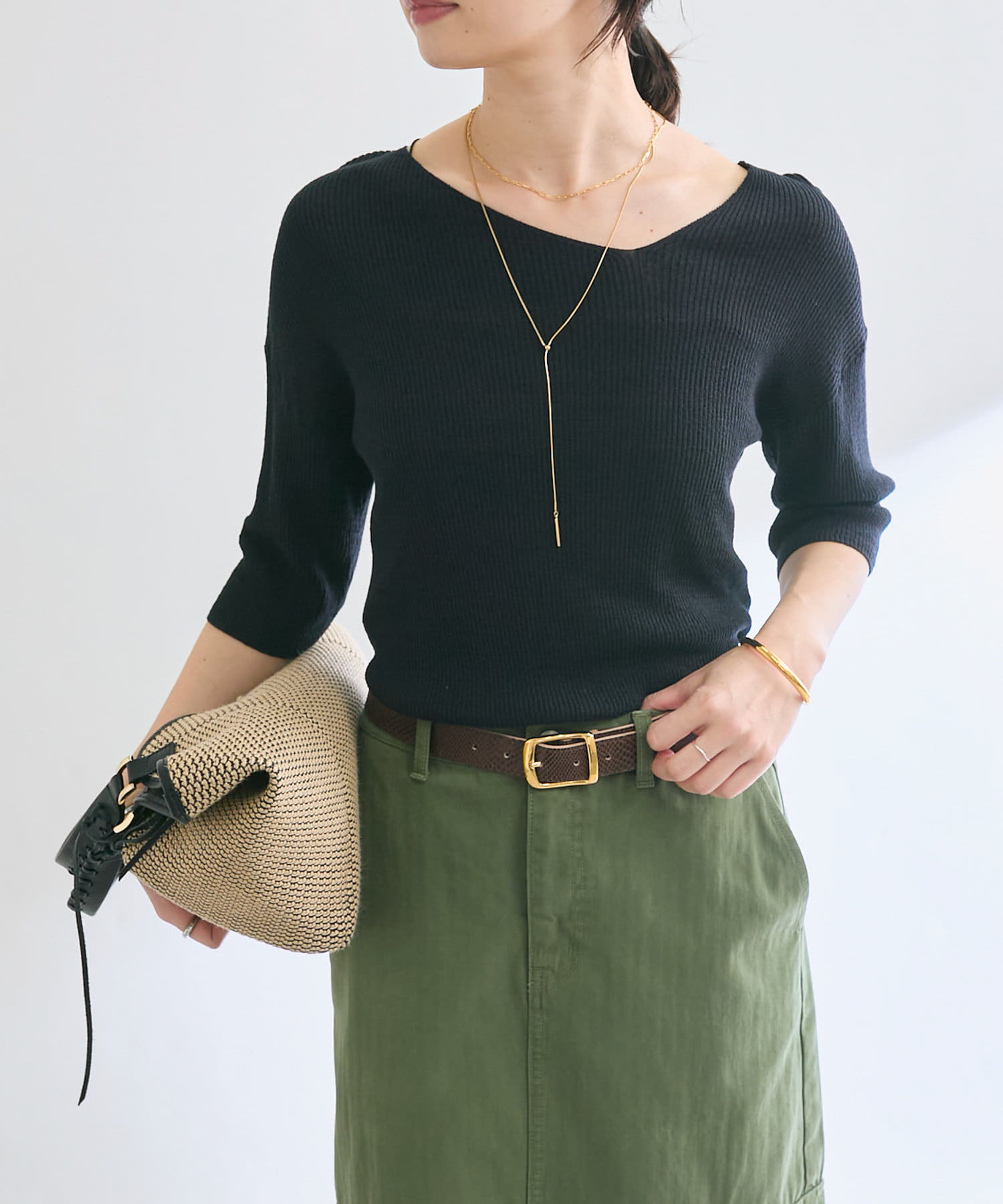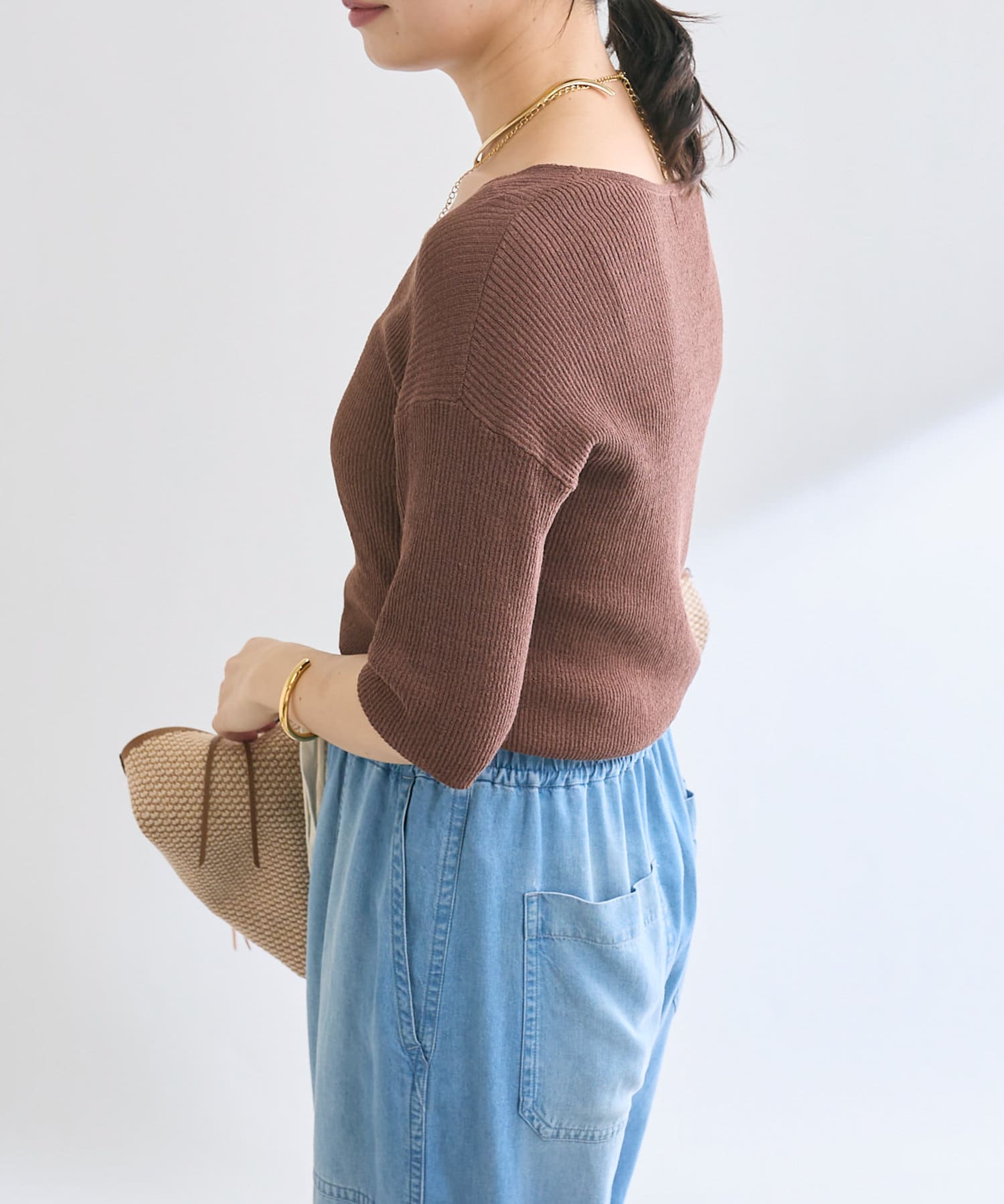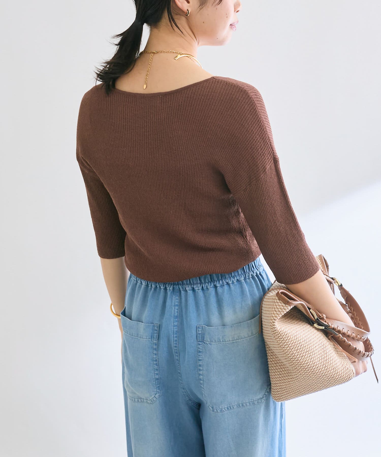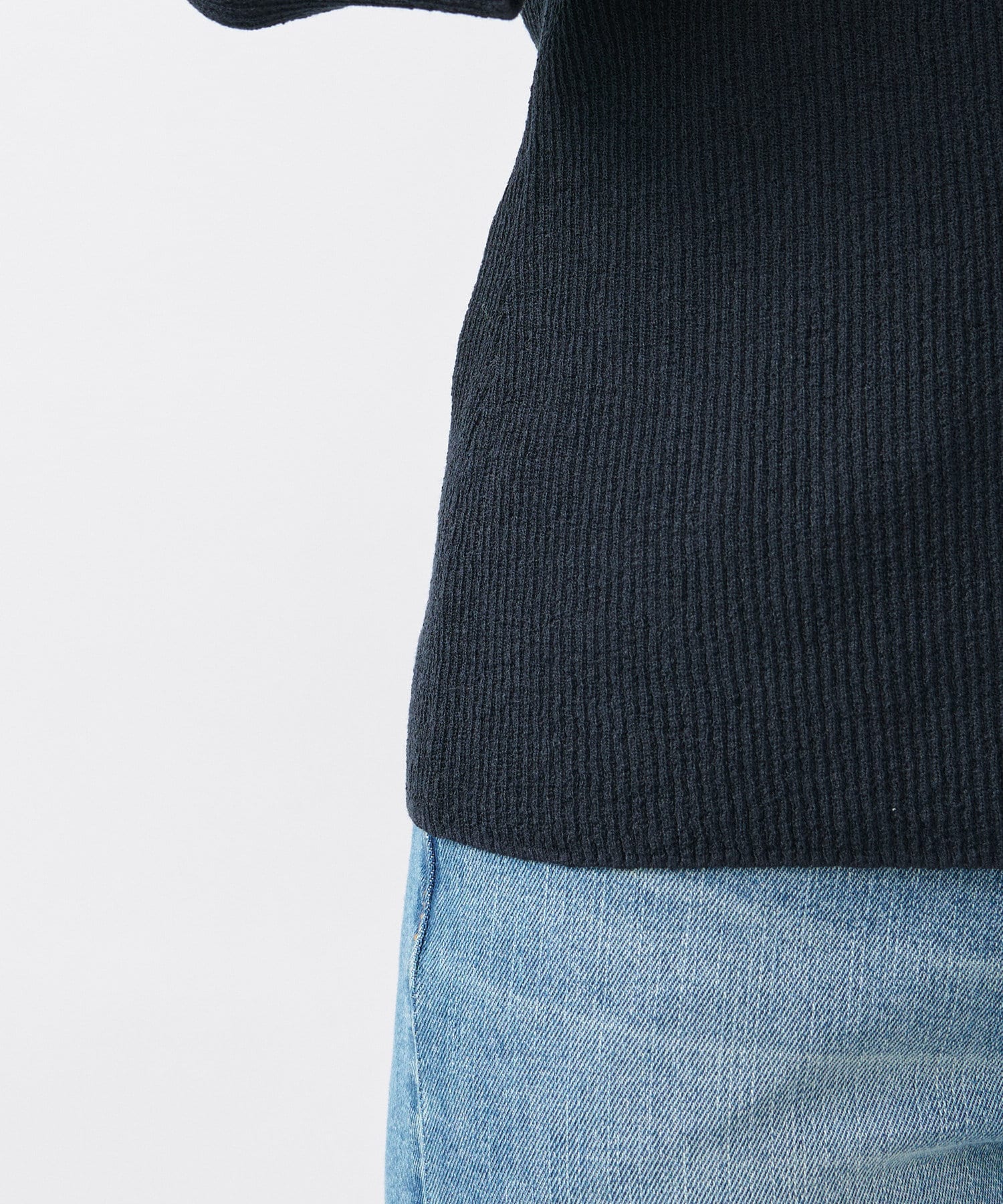 程よいフィット感のリブ編みと五分袖で、細見えするシルエットを演出します。