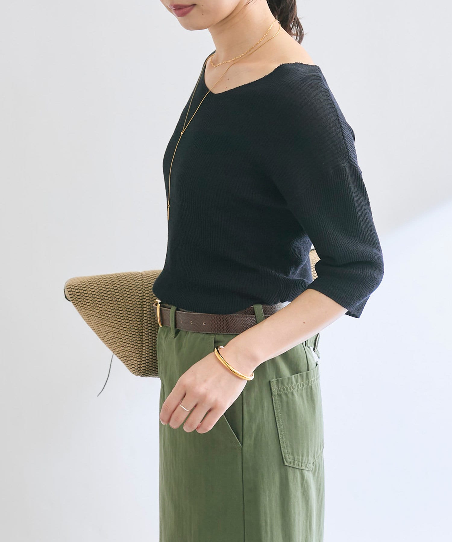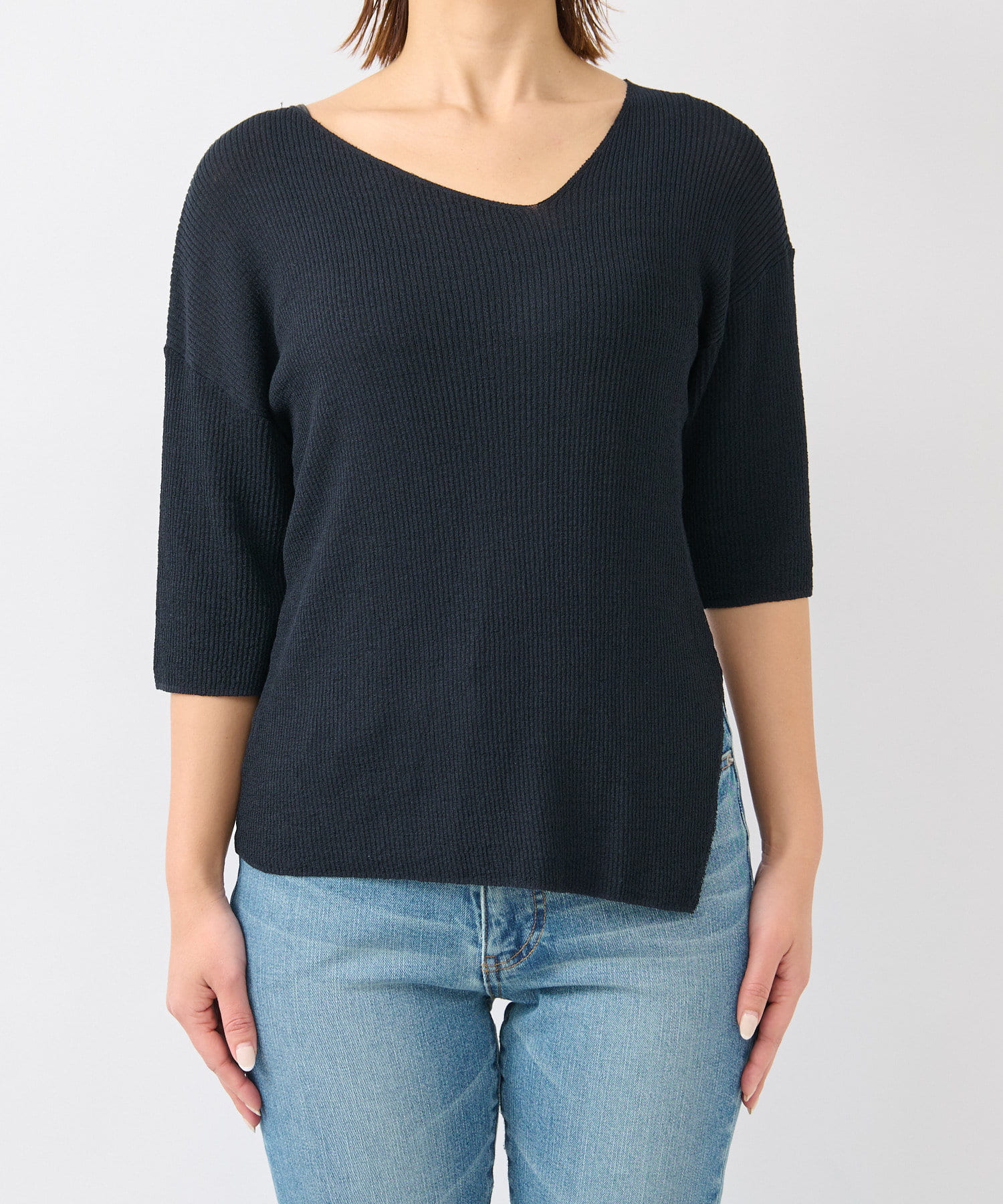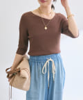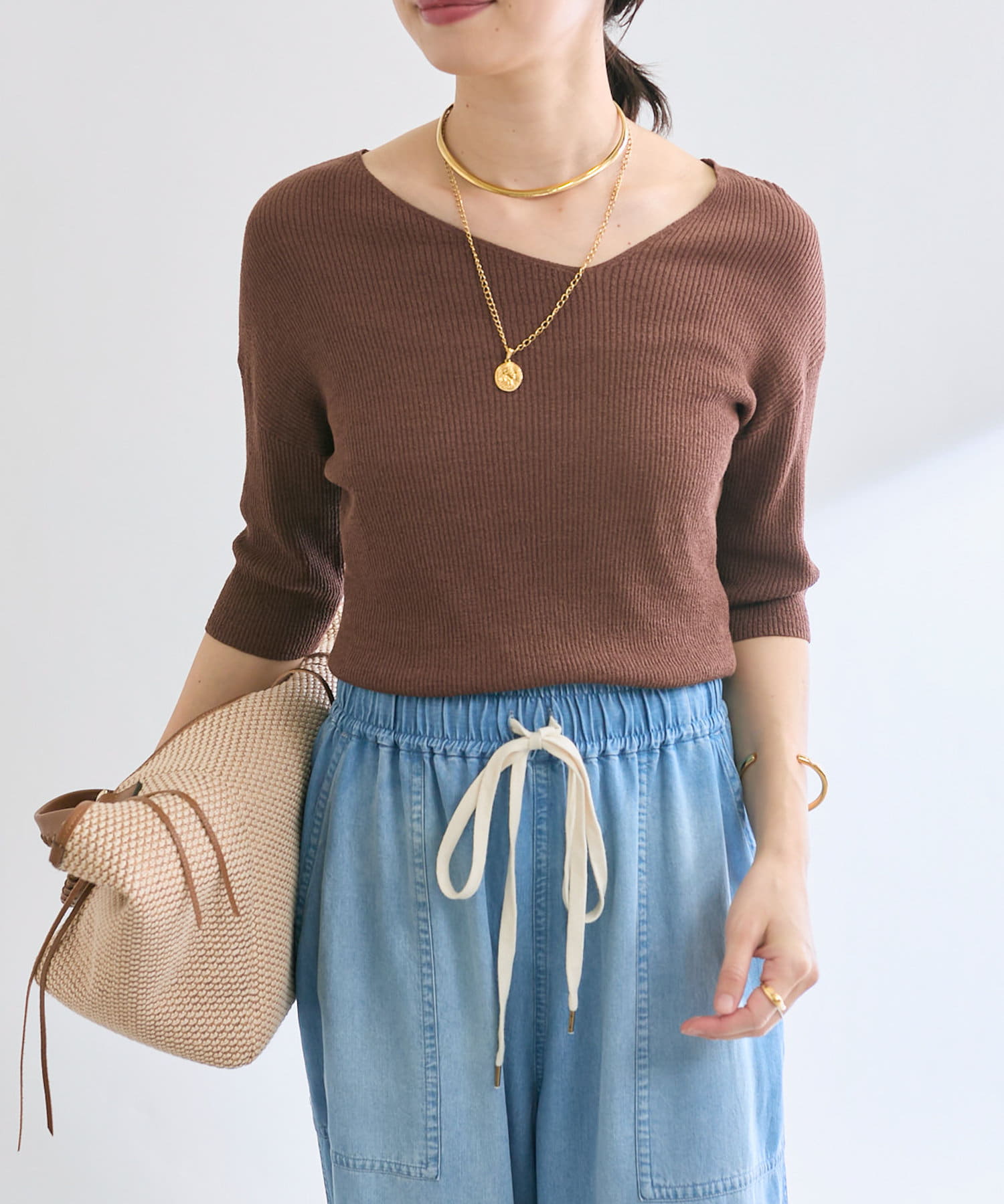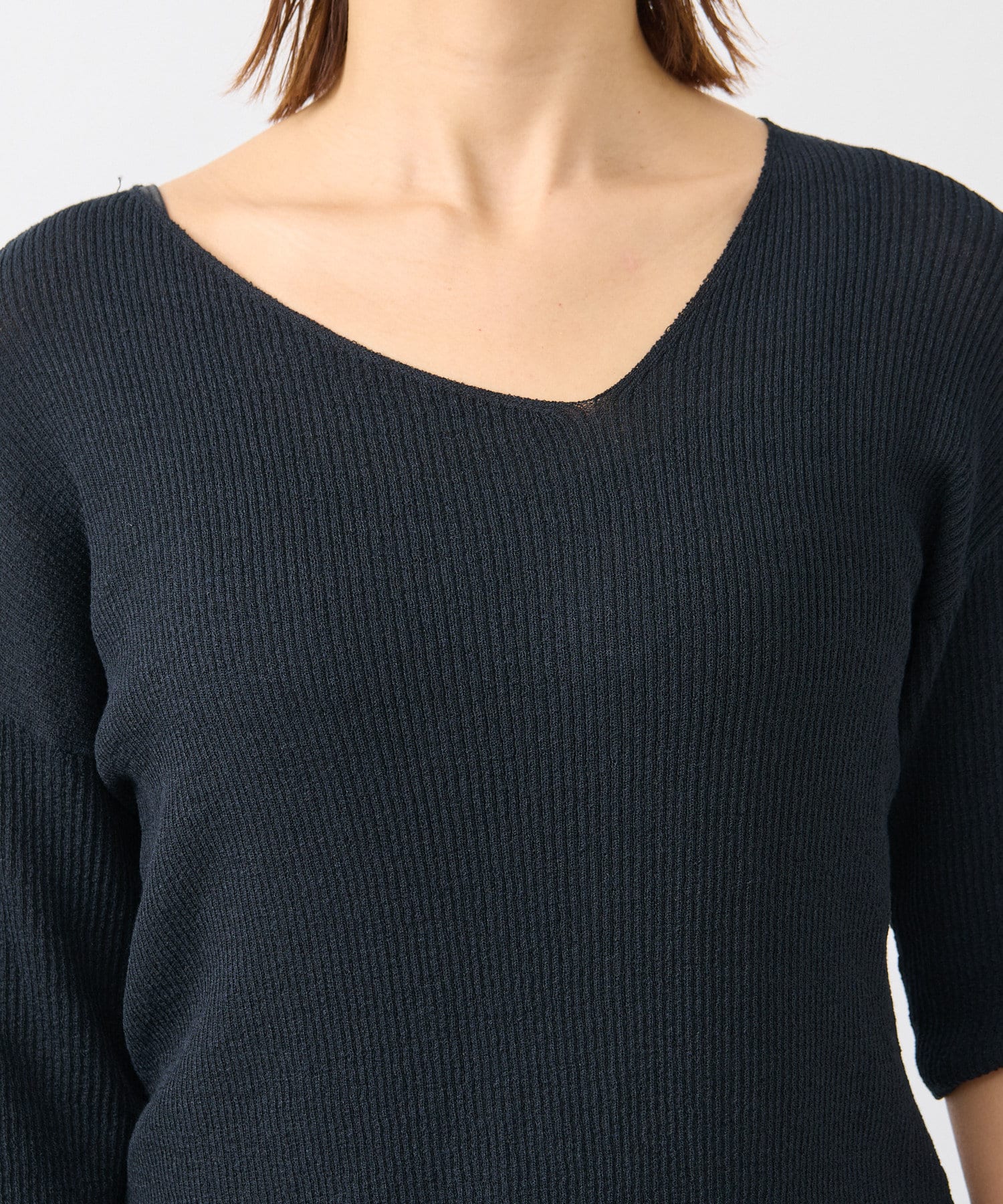 程よいフィット感のリブ編みと五分袖で、細見えするシルエットを演出します。