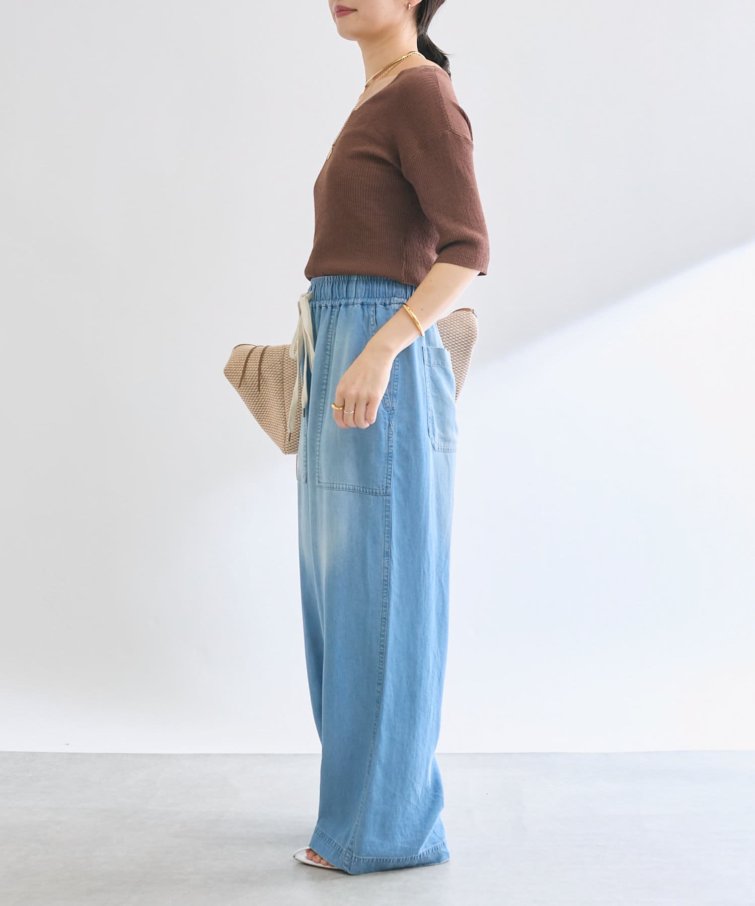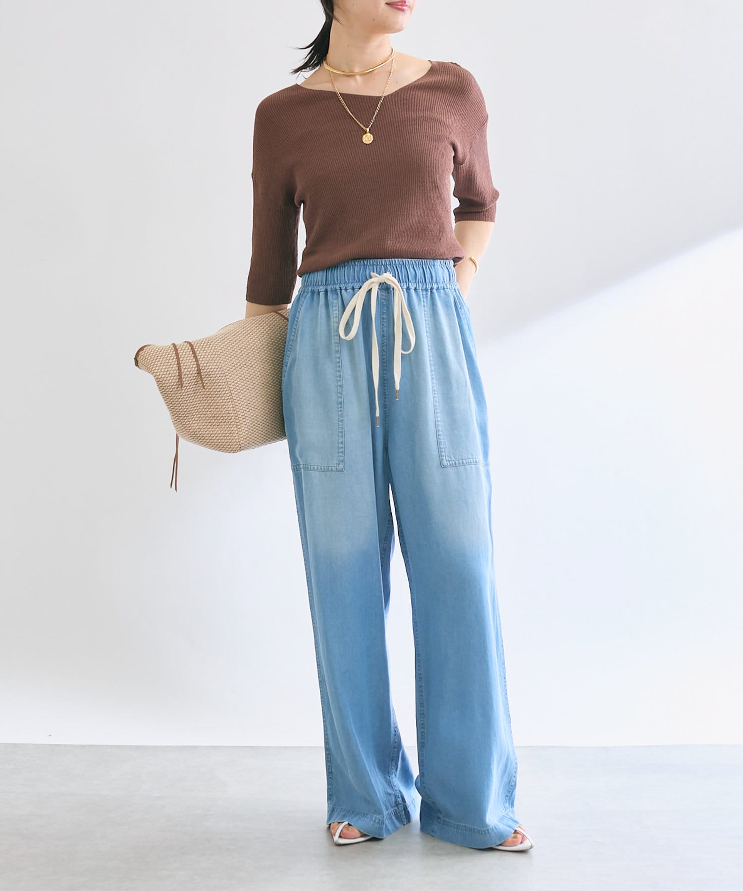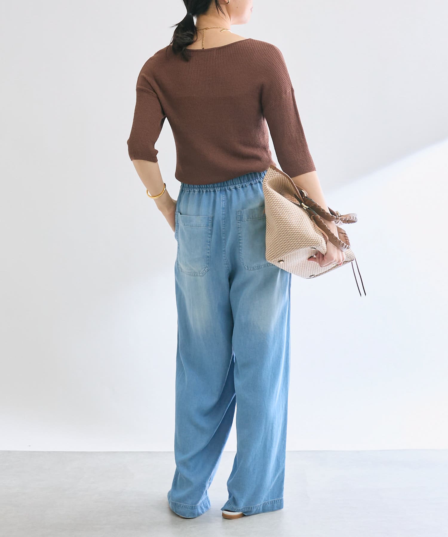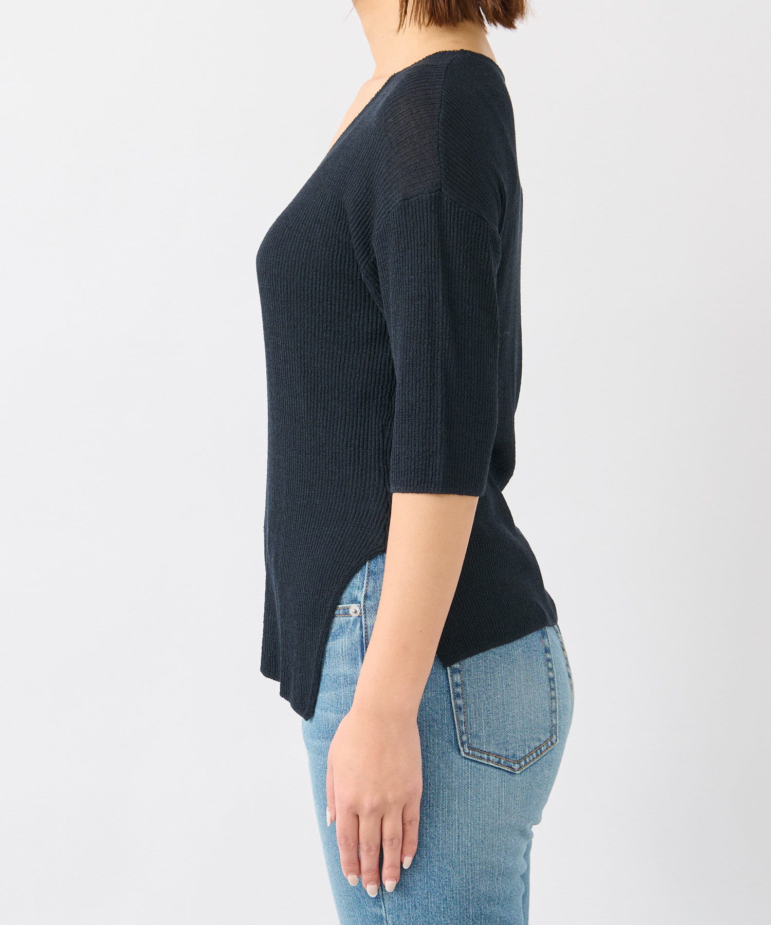 程よいフィット感のリブ編みと五分袖で、細見えするシルエットを演出します。