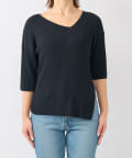 アシメトリーなネックラインが目を惹くプルオーバー。