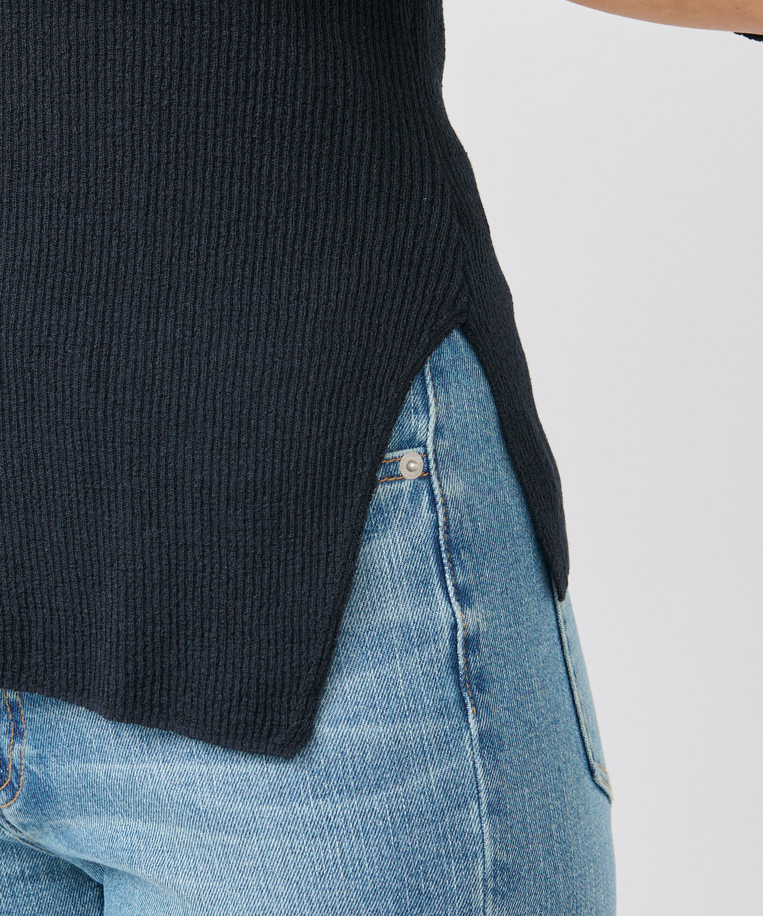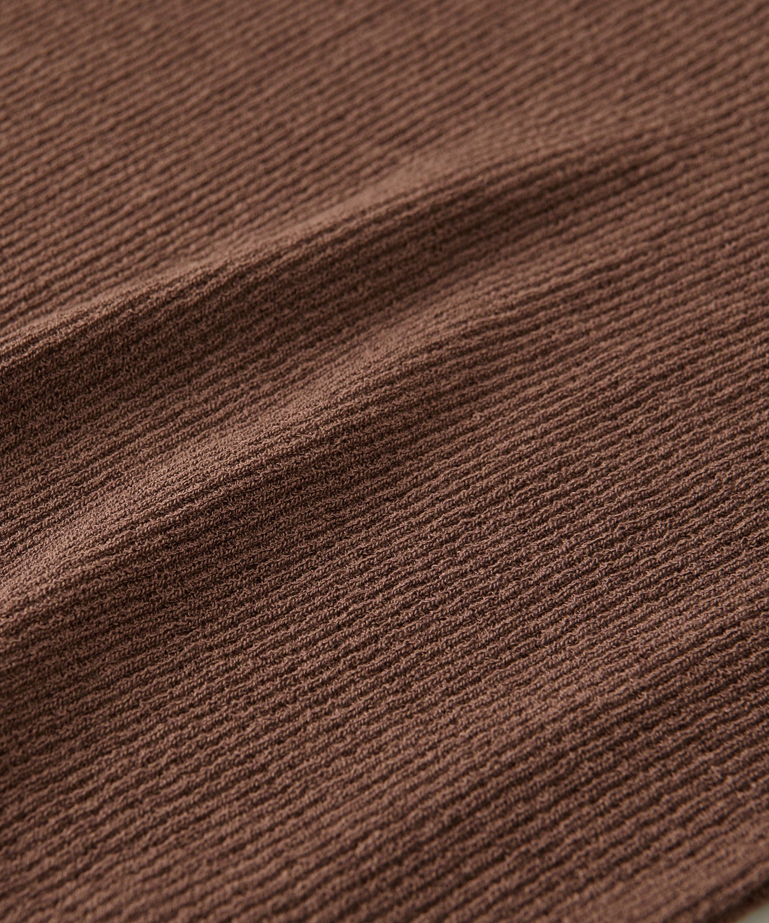 細かな凹凸が特徴のリブ素材は、肌に張り付きにくく、サラッとひんやりしたタッチの着心地。