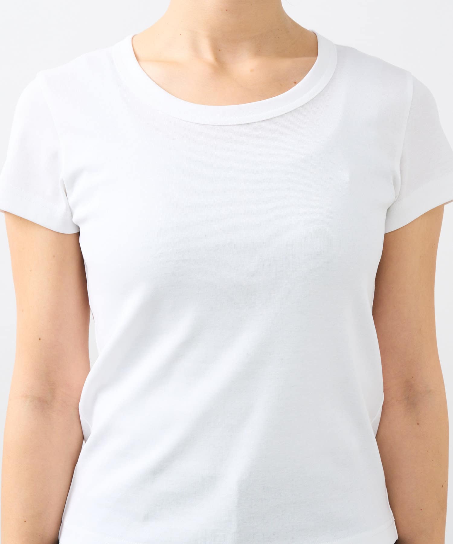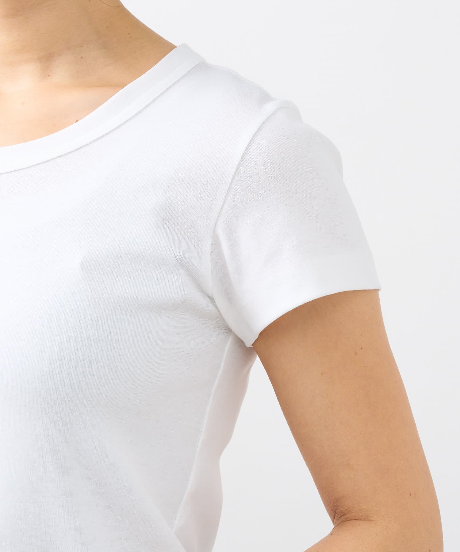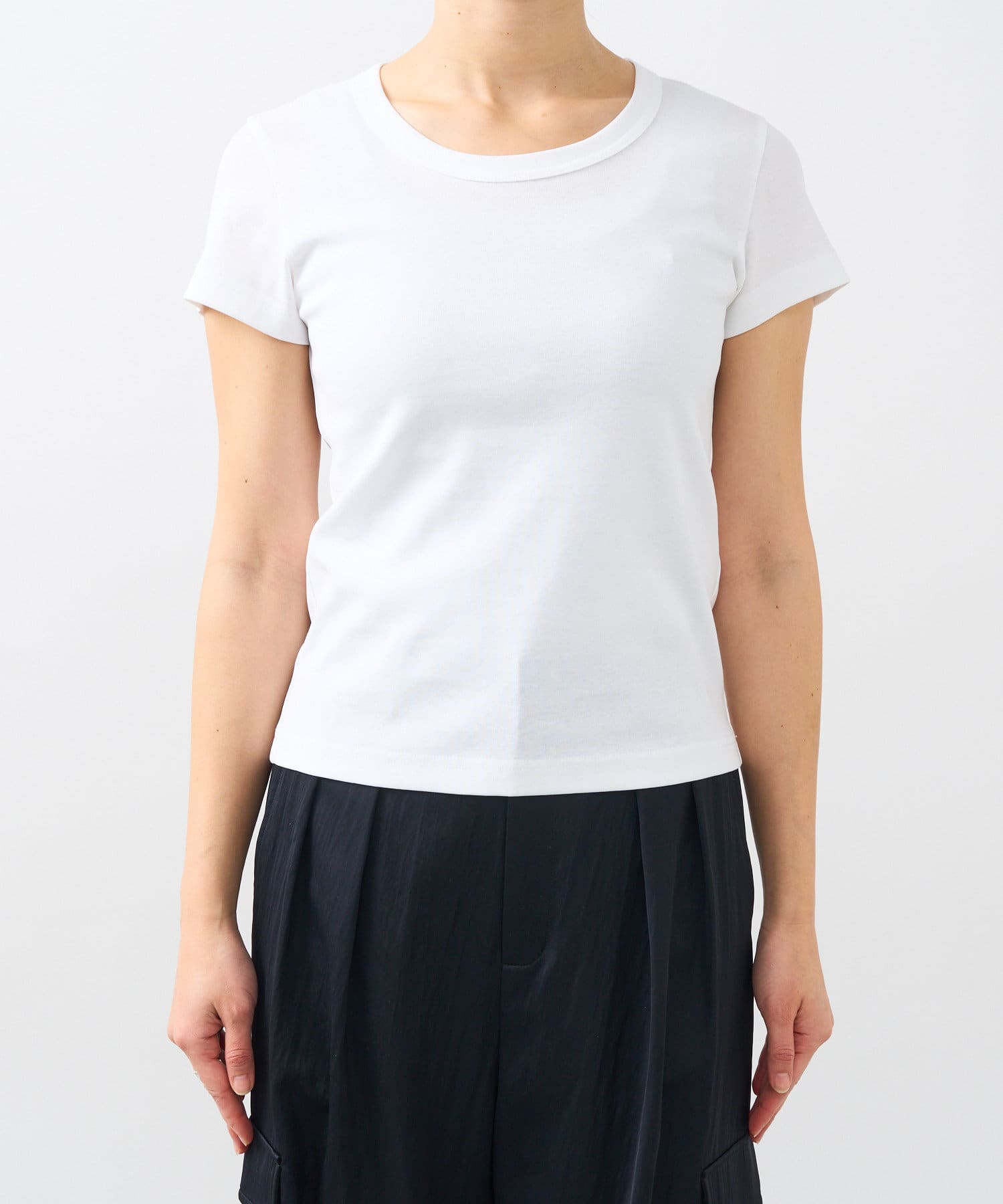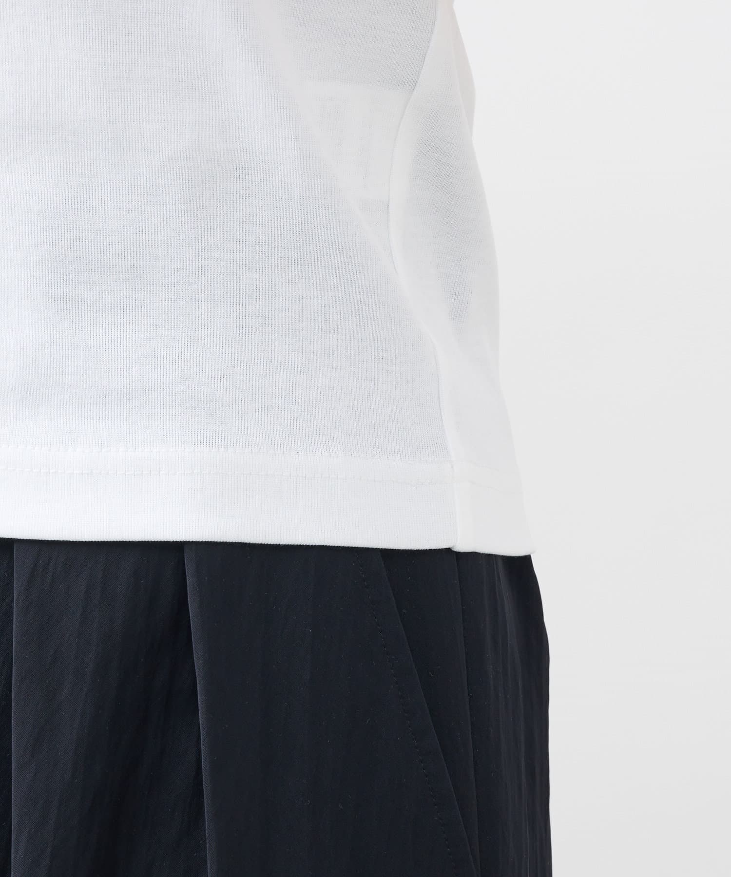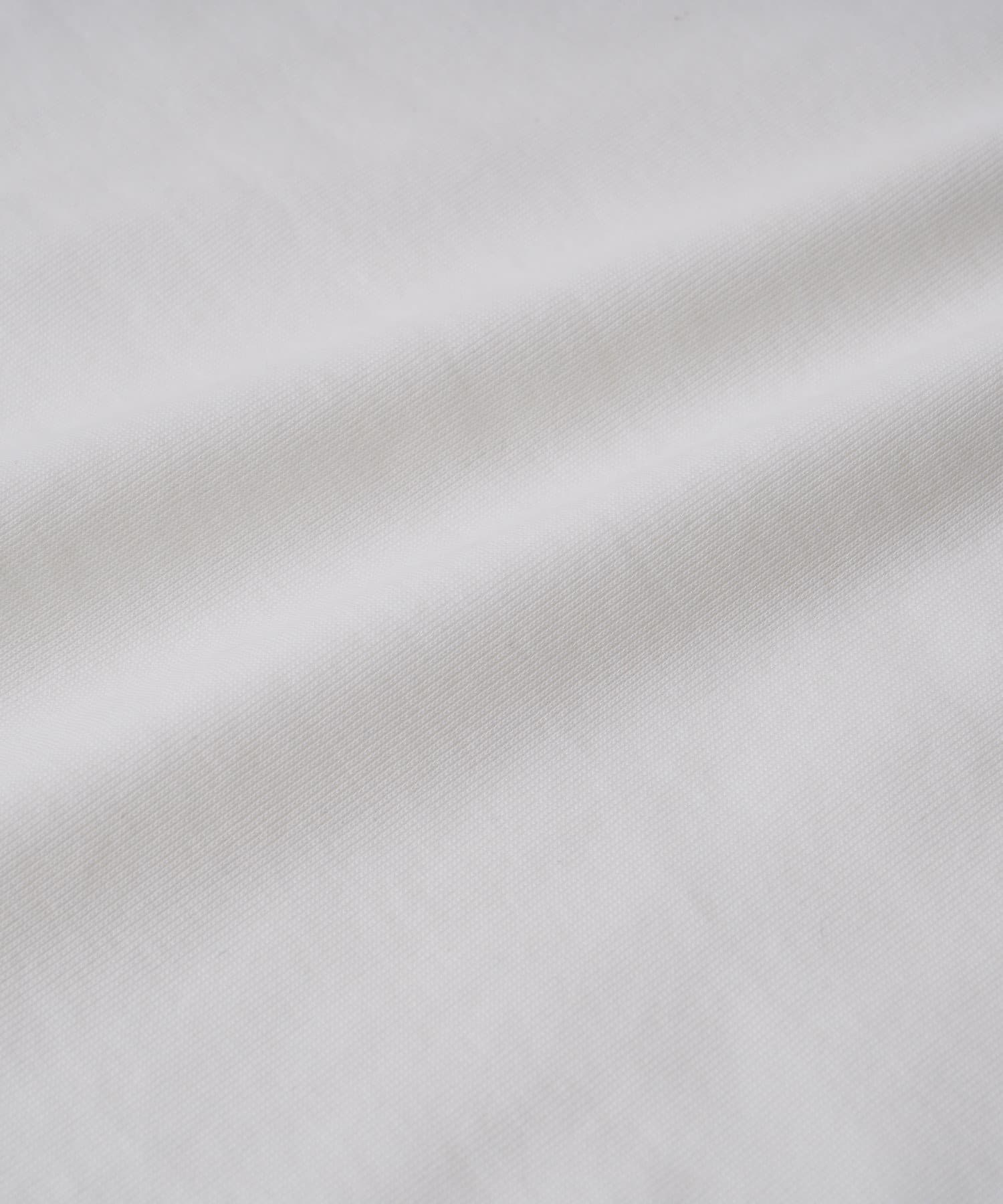 毛羽のないクリアな表面感の素材を使用したミニマルなTシャツ。