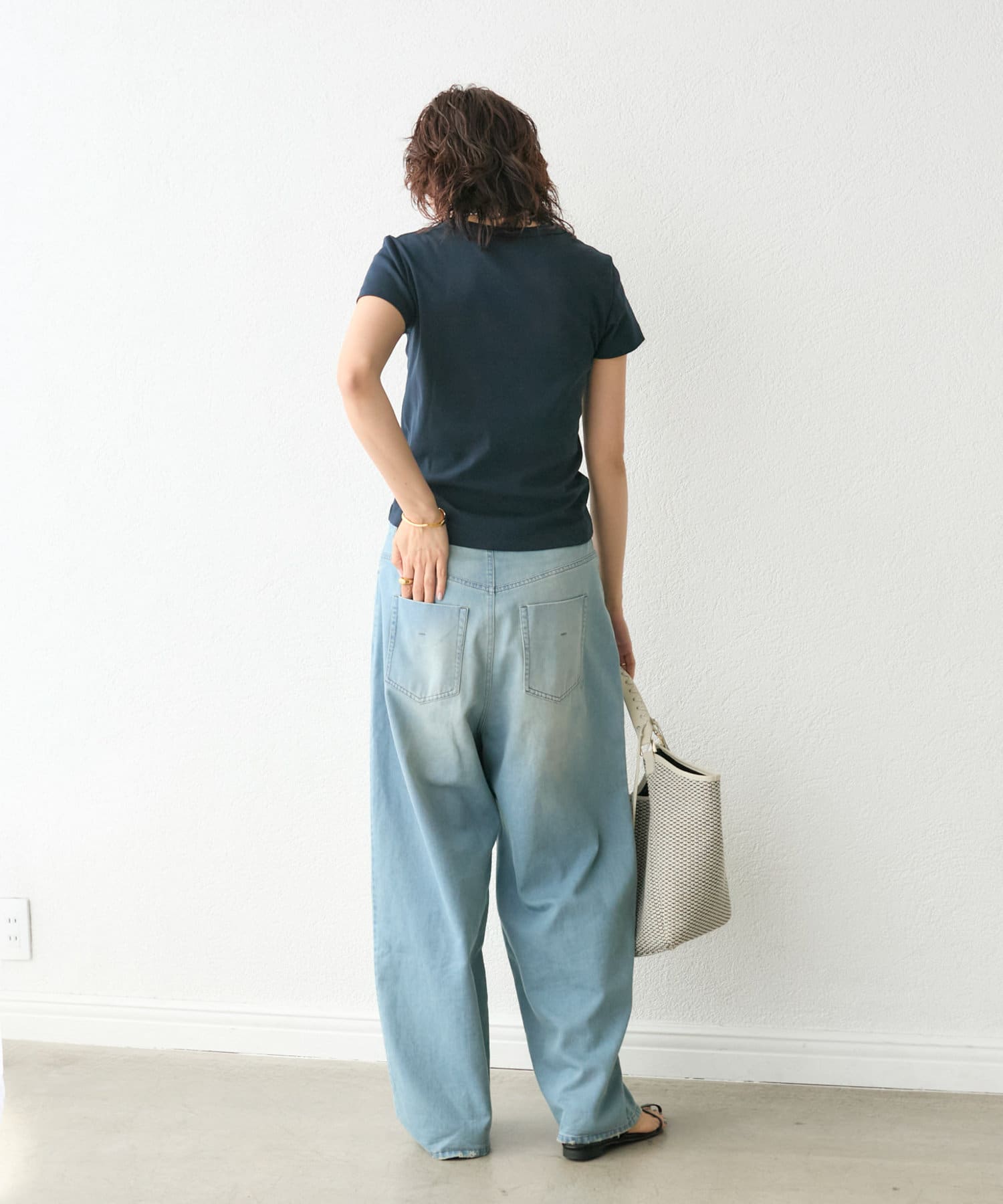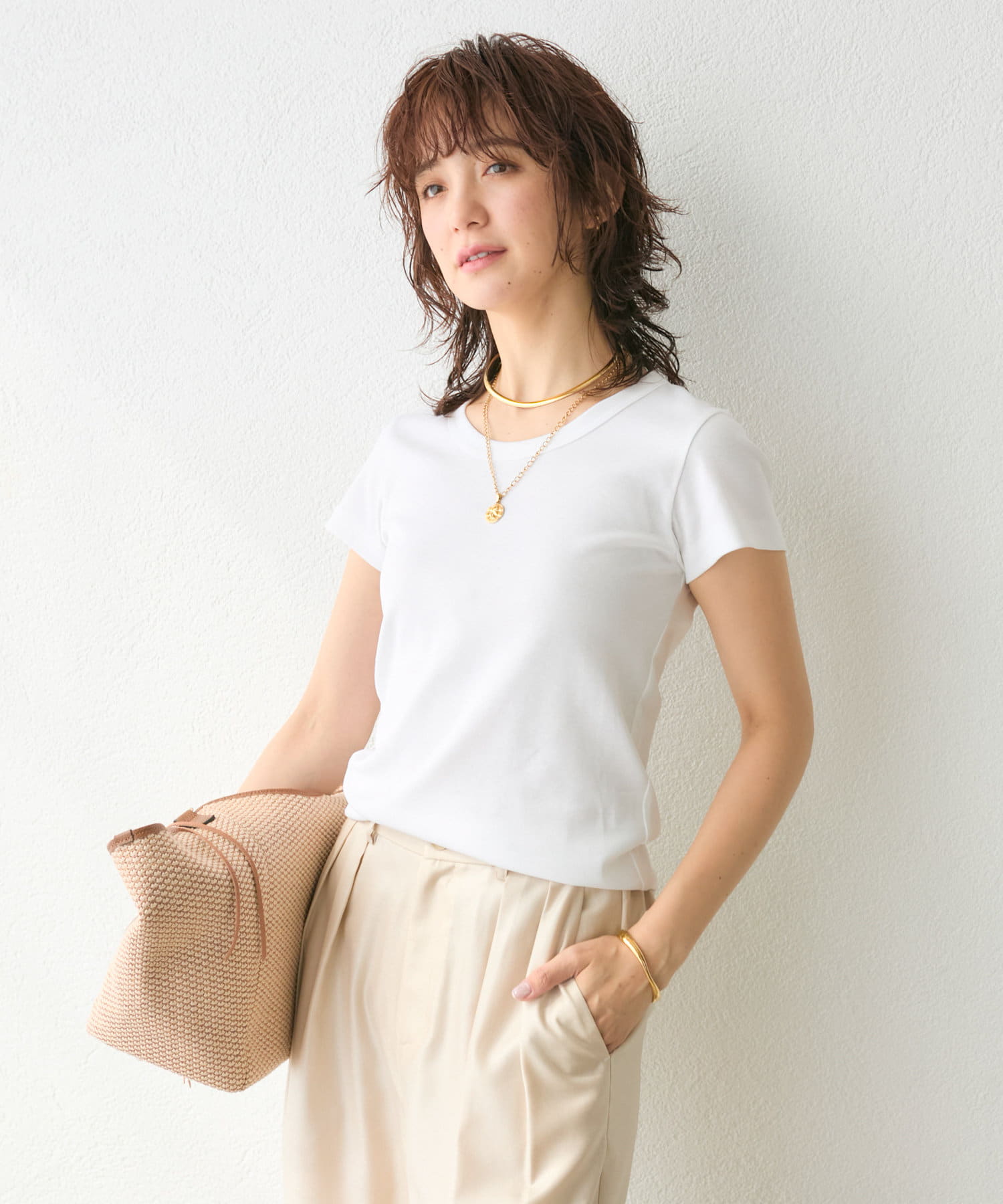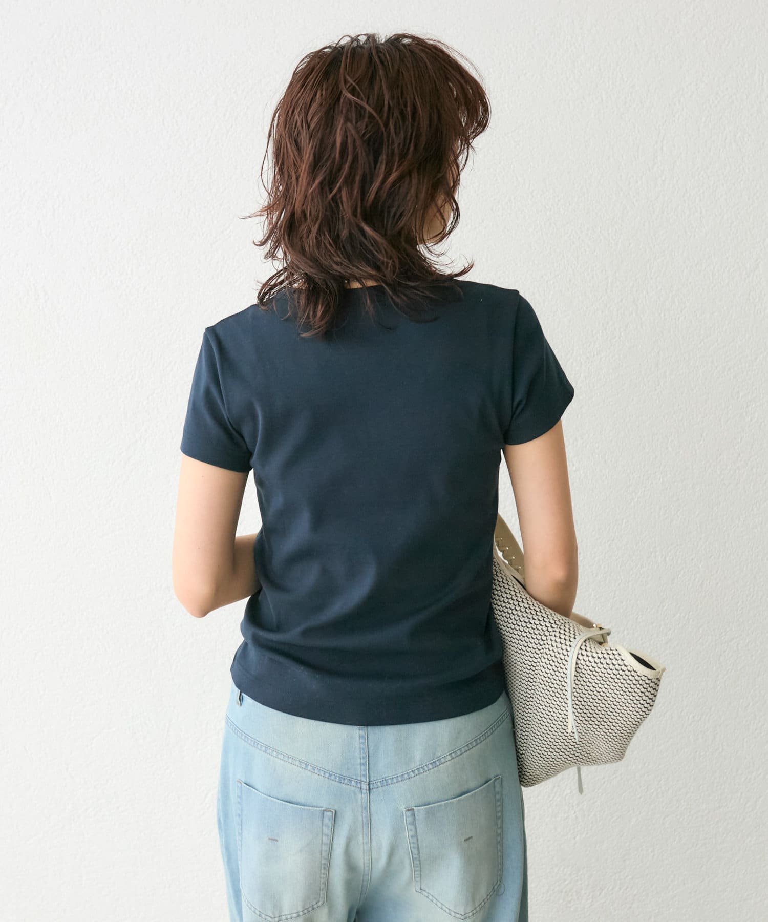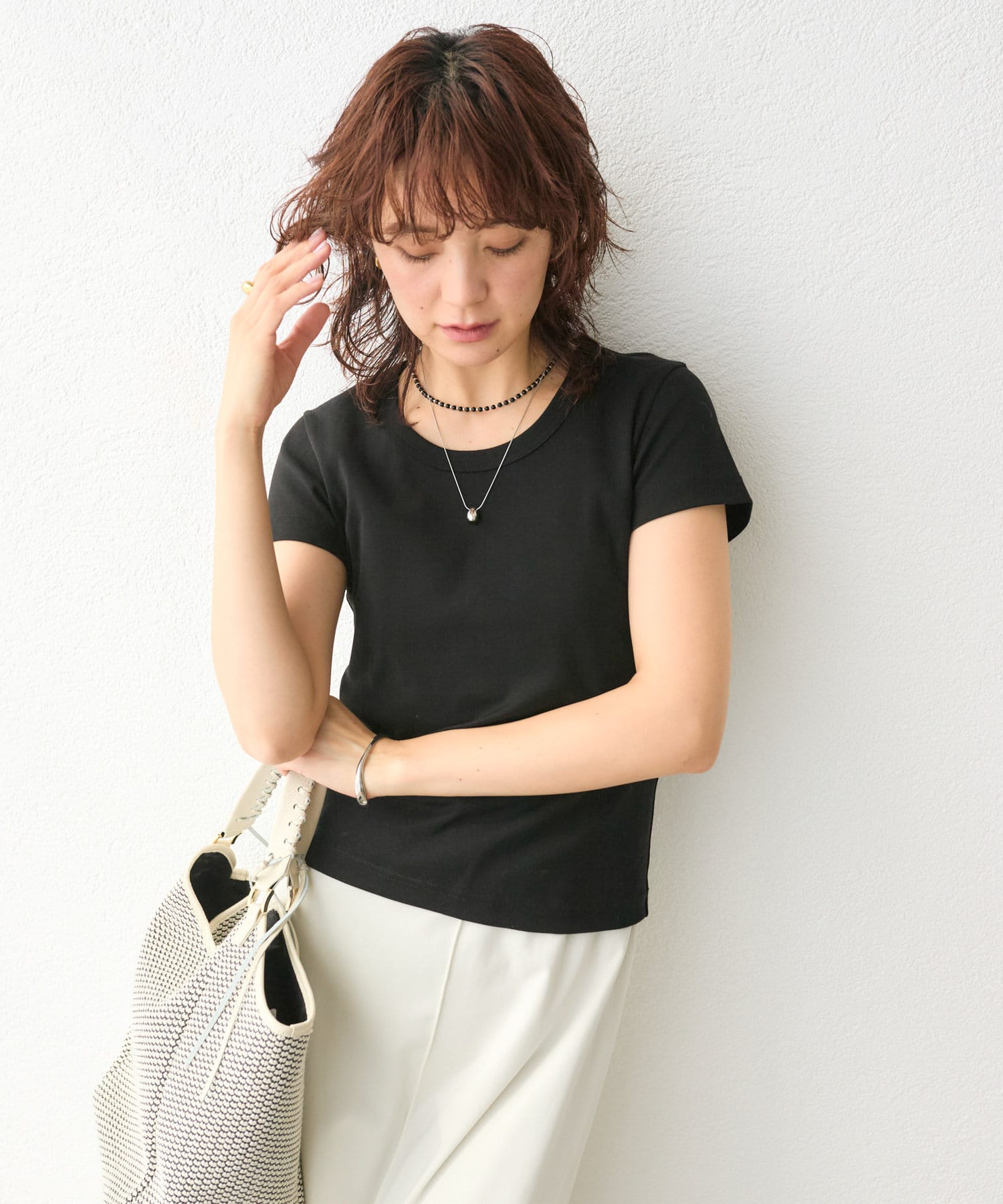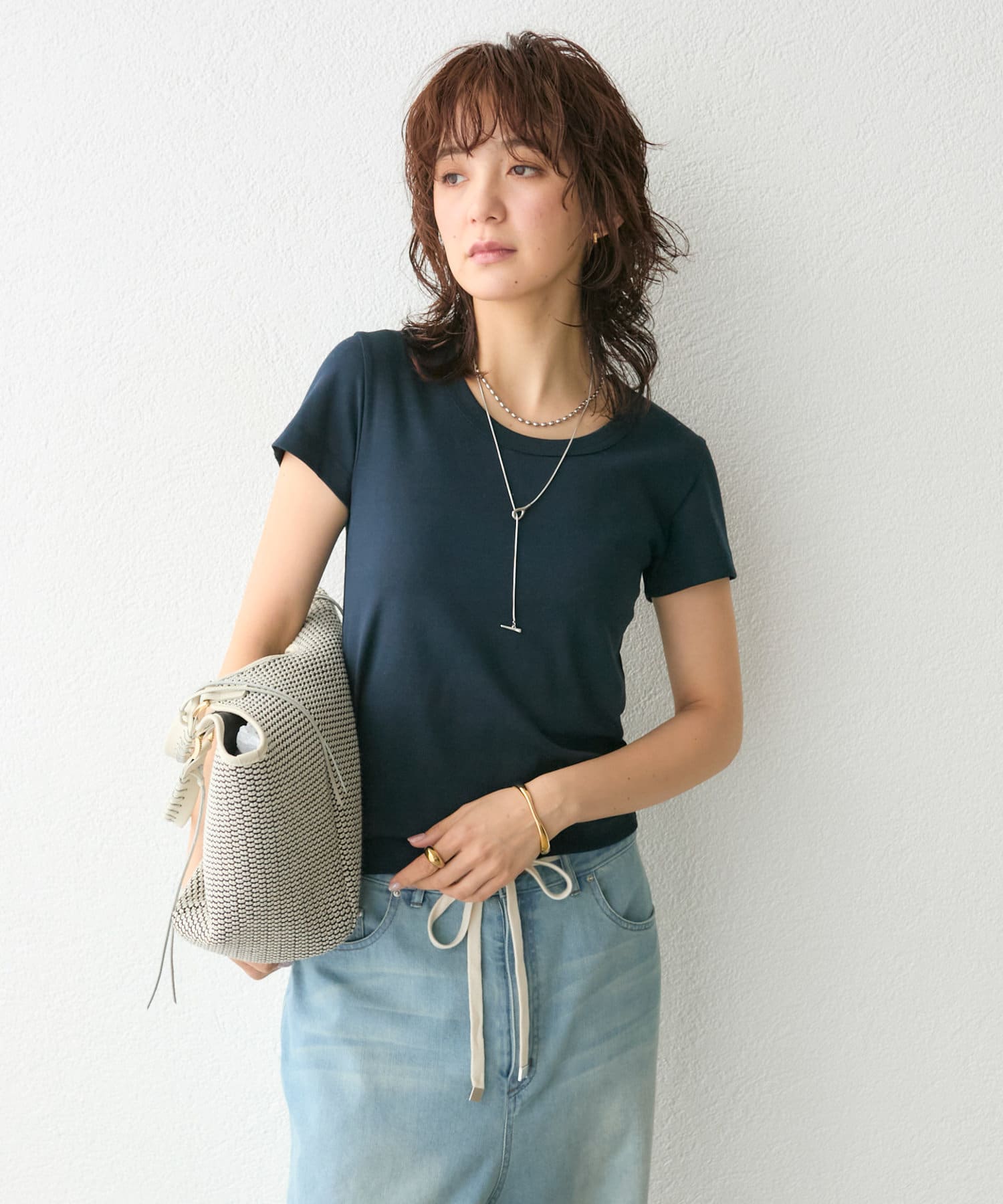 毛羽のないクリアな表面感の素材を使用したミニマルなTシャツ。