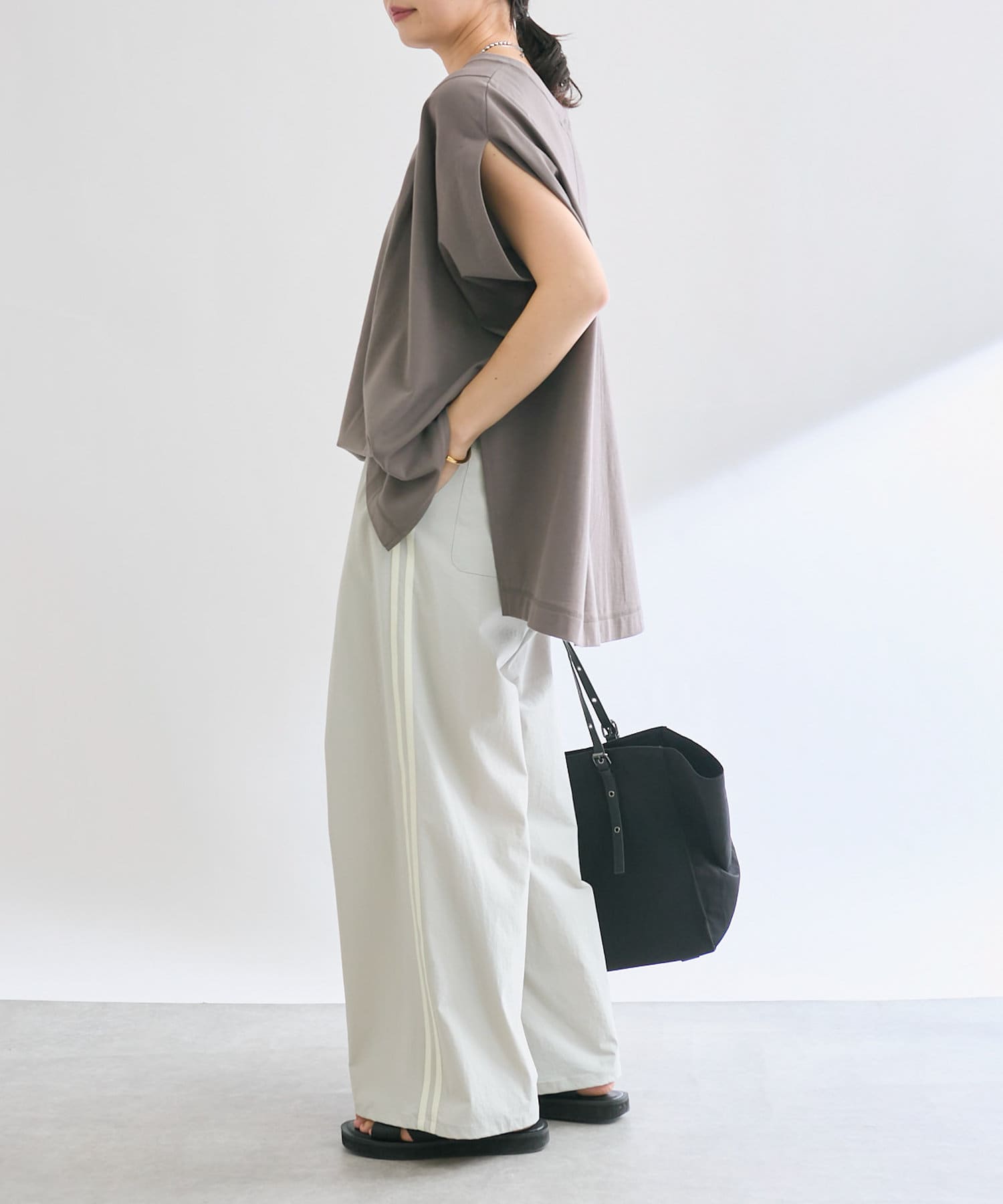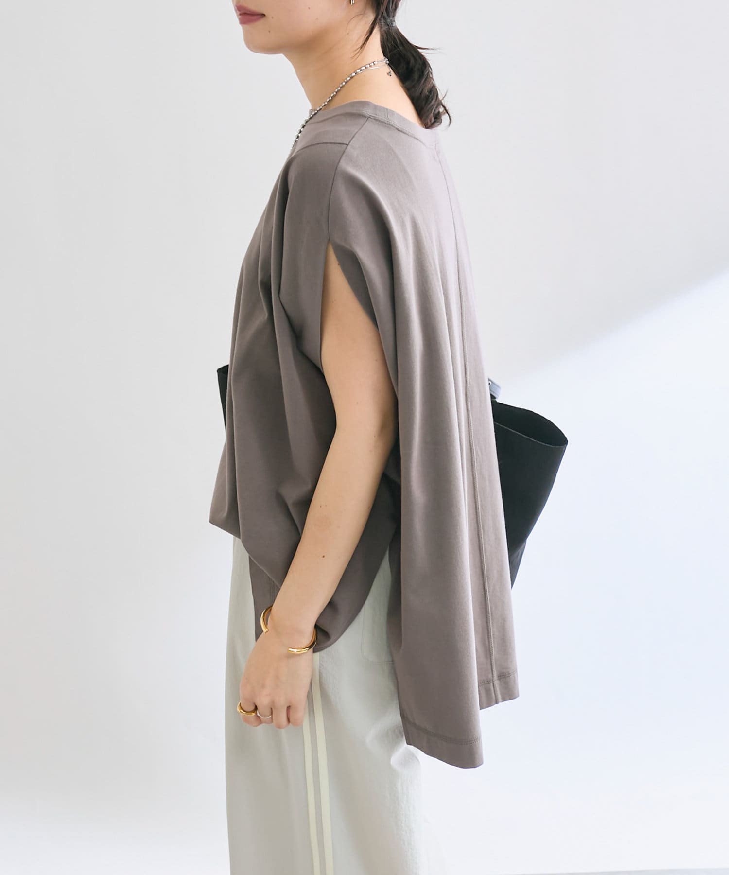 前身頃に入れたタックと、袖を通すと立体感が出るフォルムでこなれた印象に◎