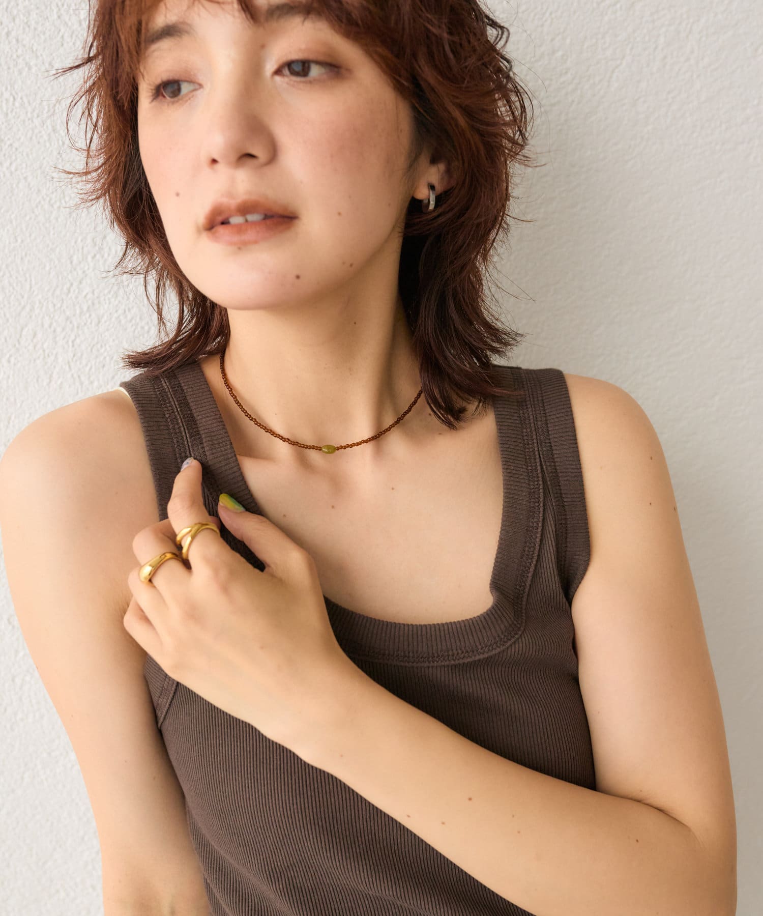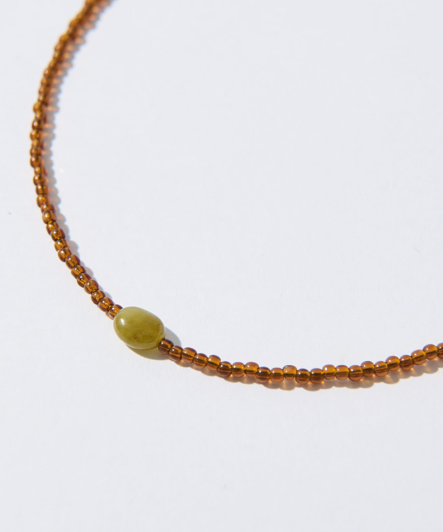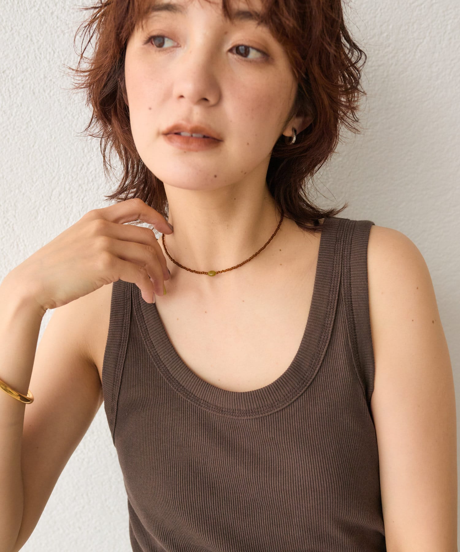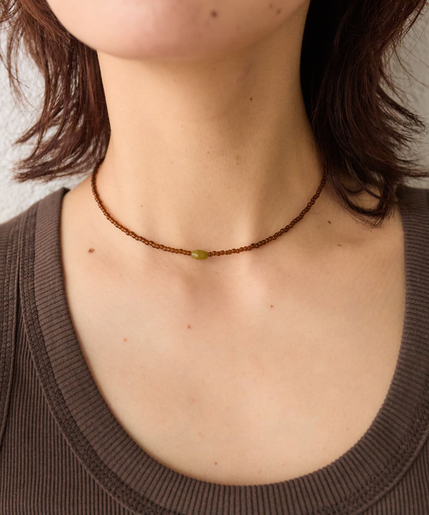 ブラウンのカラービーズが目を惹くショートネックレス。