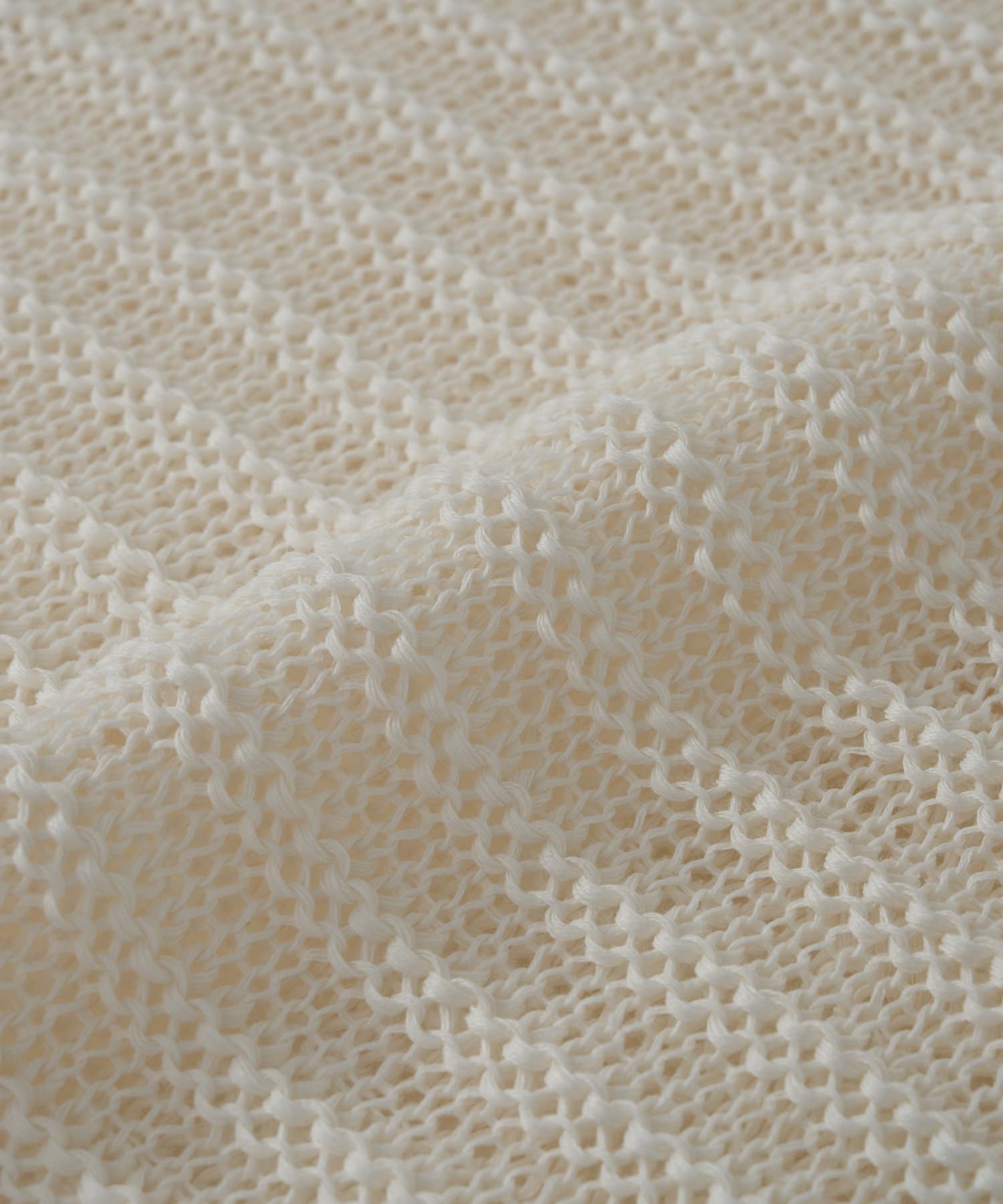 こちらの商品は編地の形状的に吊るしておくと伸びやすい為、畳みでの保管を推奨いたします。