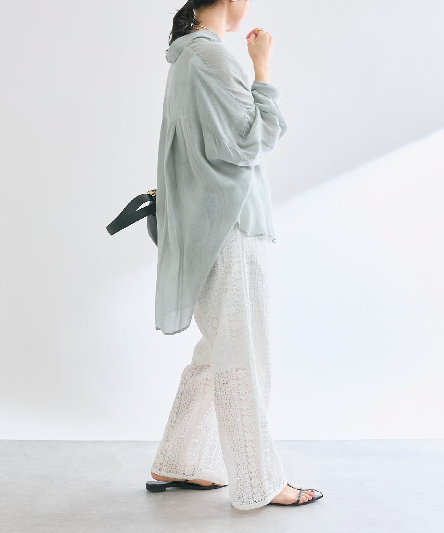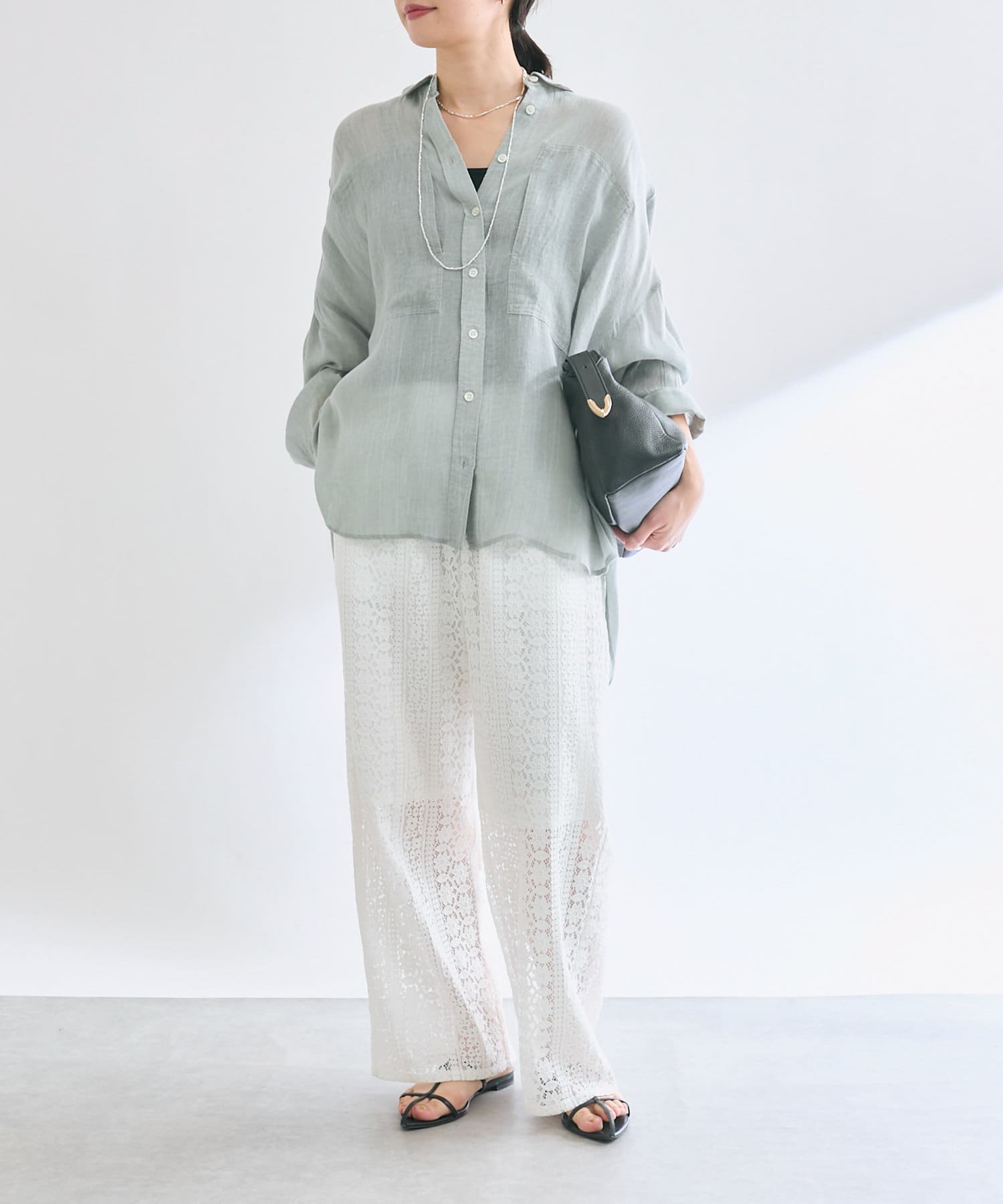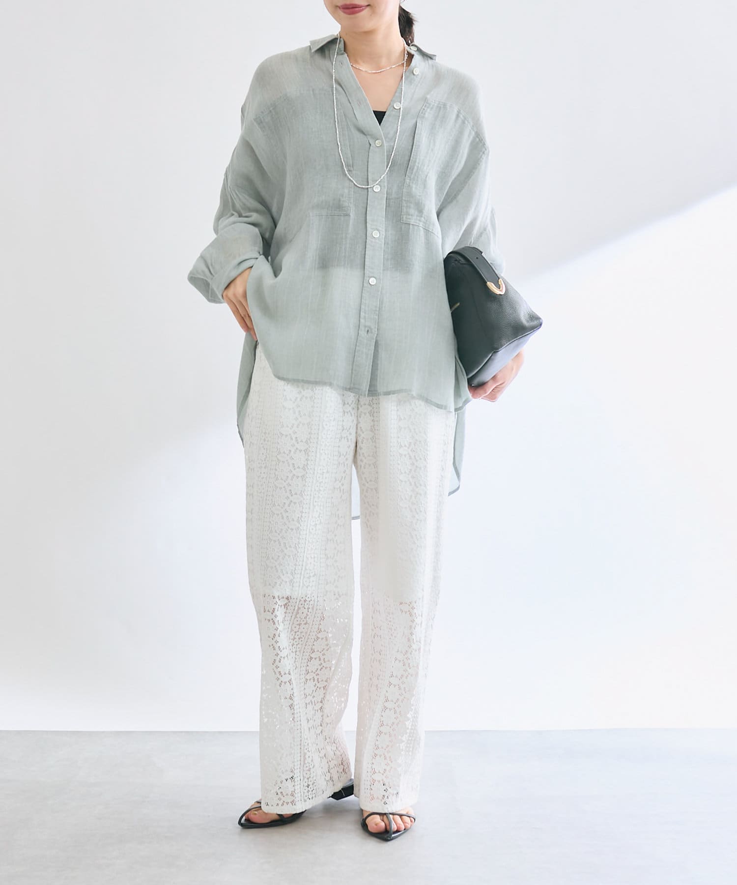膝下までの裏地も付いており、安心感もありつつ程よいシアー感を楽しめる一枚。