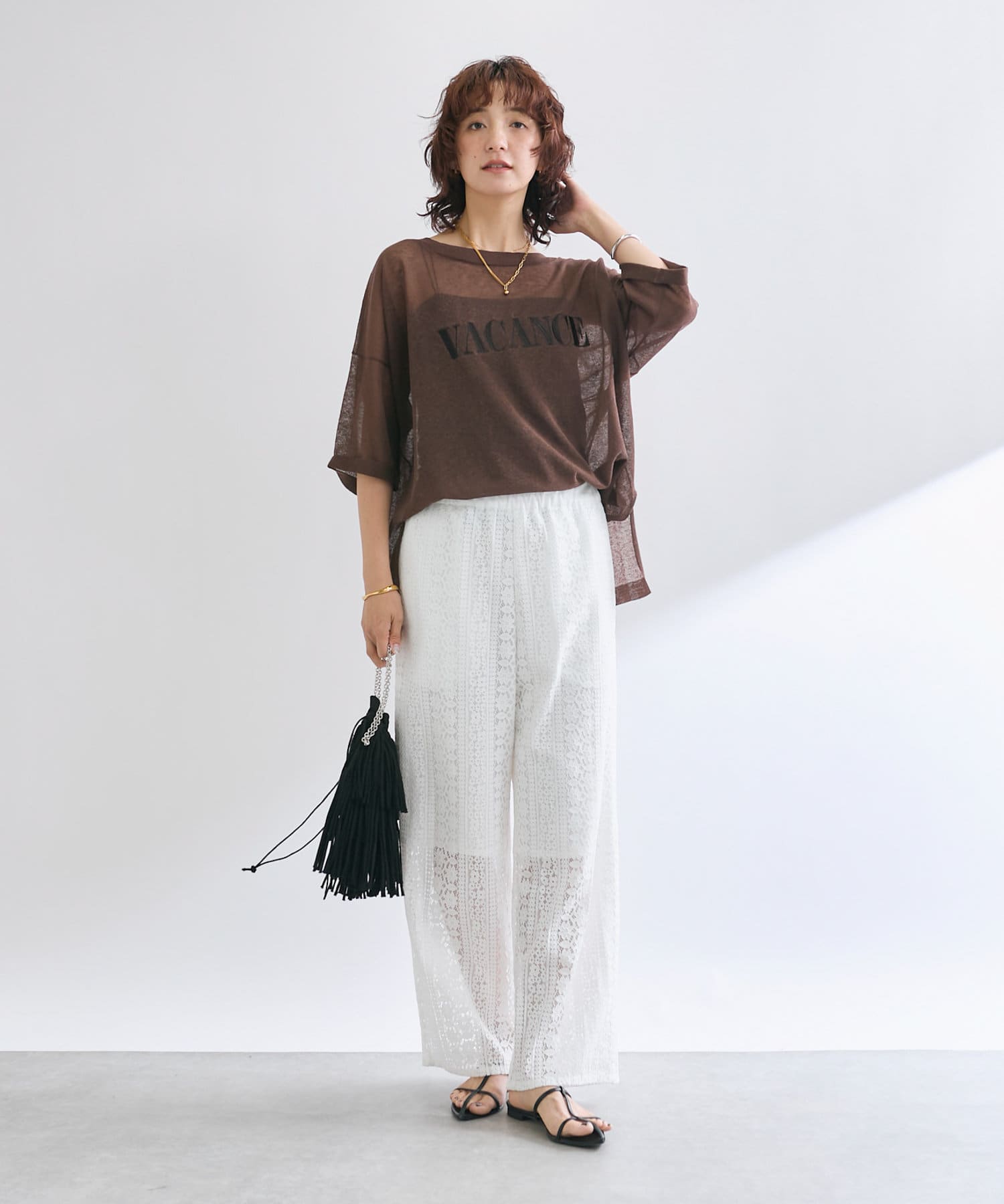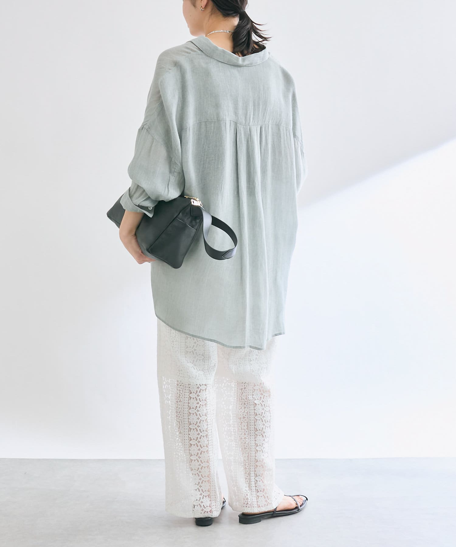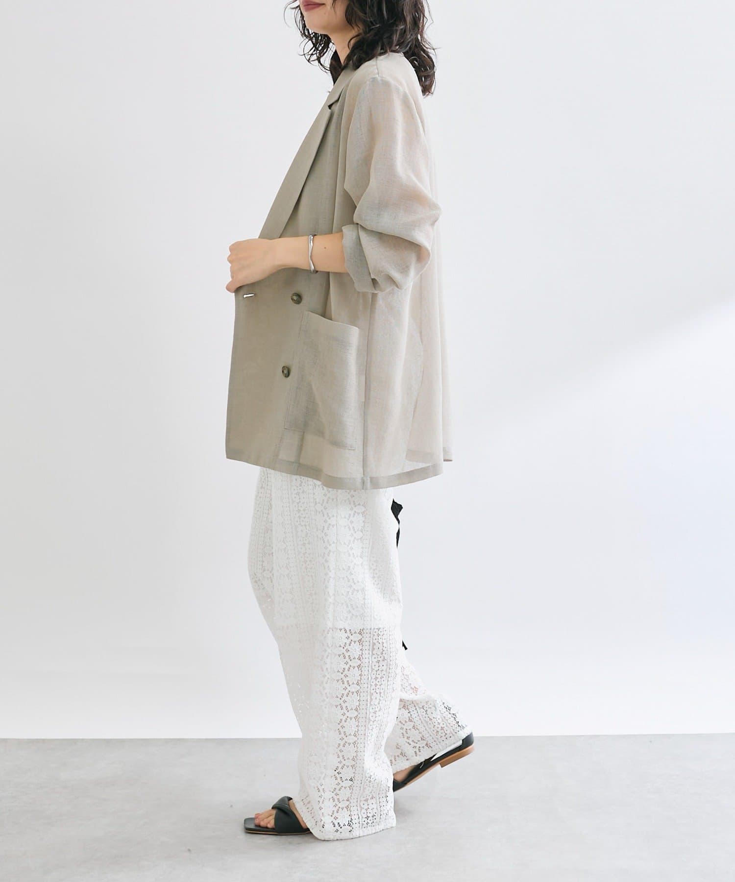 膝下までの裏地も付いており、安心感もありつつ程よいシアー感を楽しめる一枚。