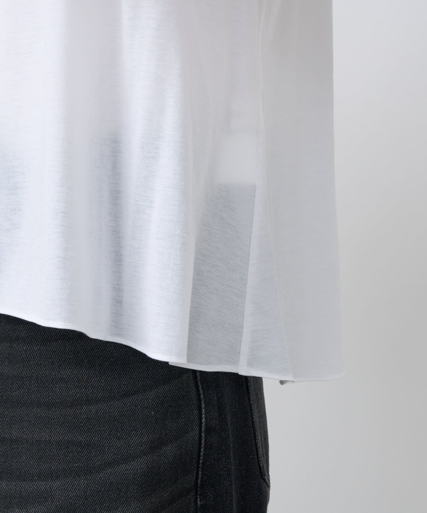 織物のような見え感の生地を使用した、ブラウス感覚で着れるカットソー。