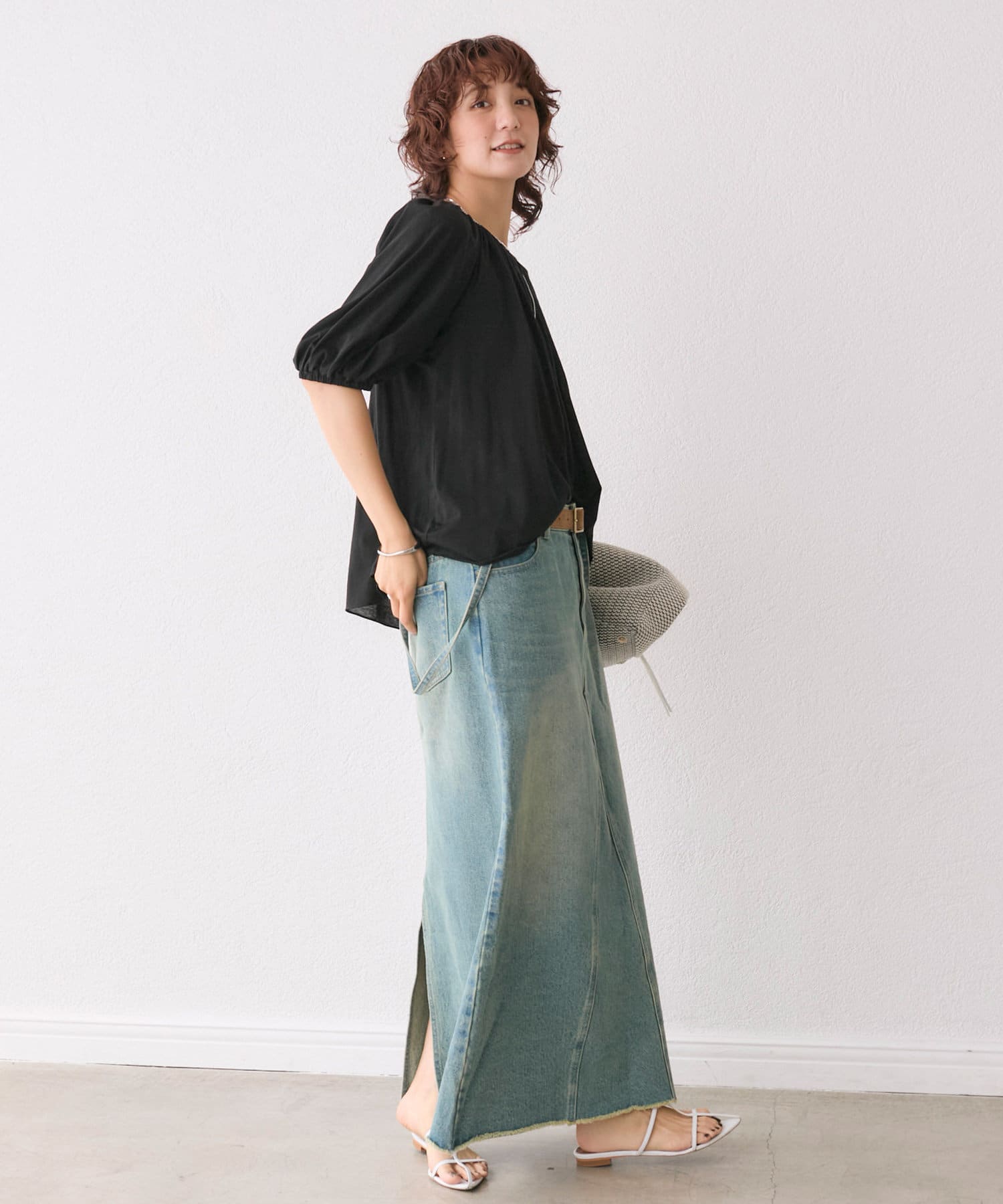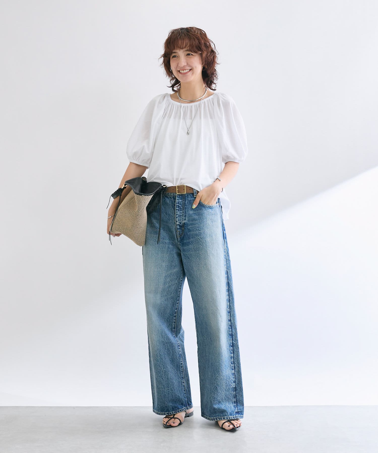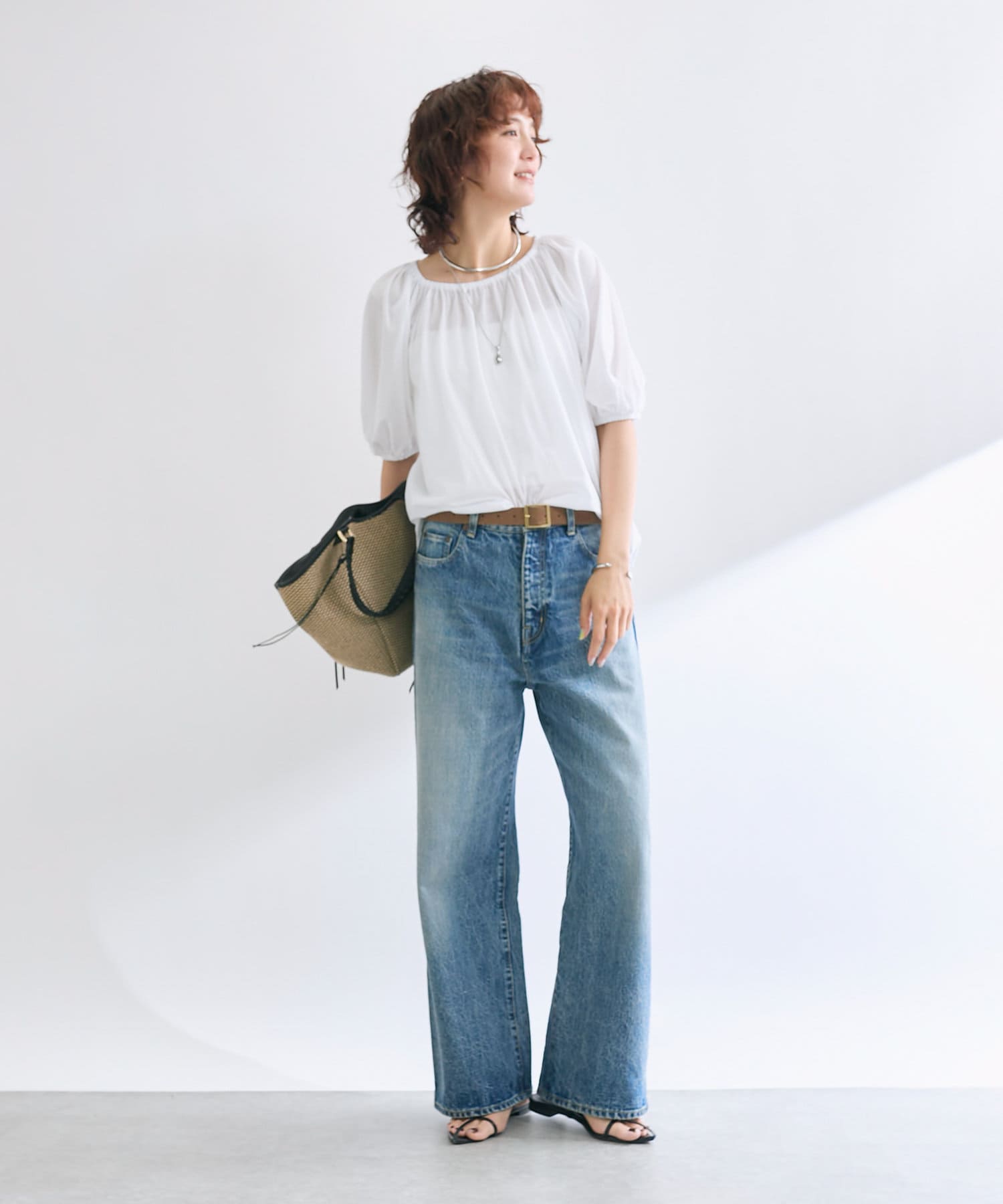 少し後ろ下がりのシルエットが、インしなくてもバランスよく着用いただけます。