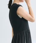 ニットのトップスと、ポリエステルのティアードスカートをドッキングしたワンピース。