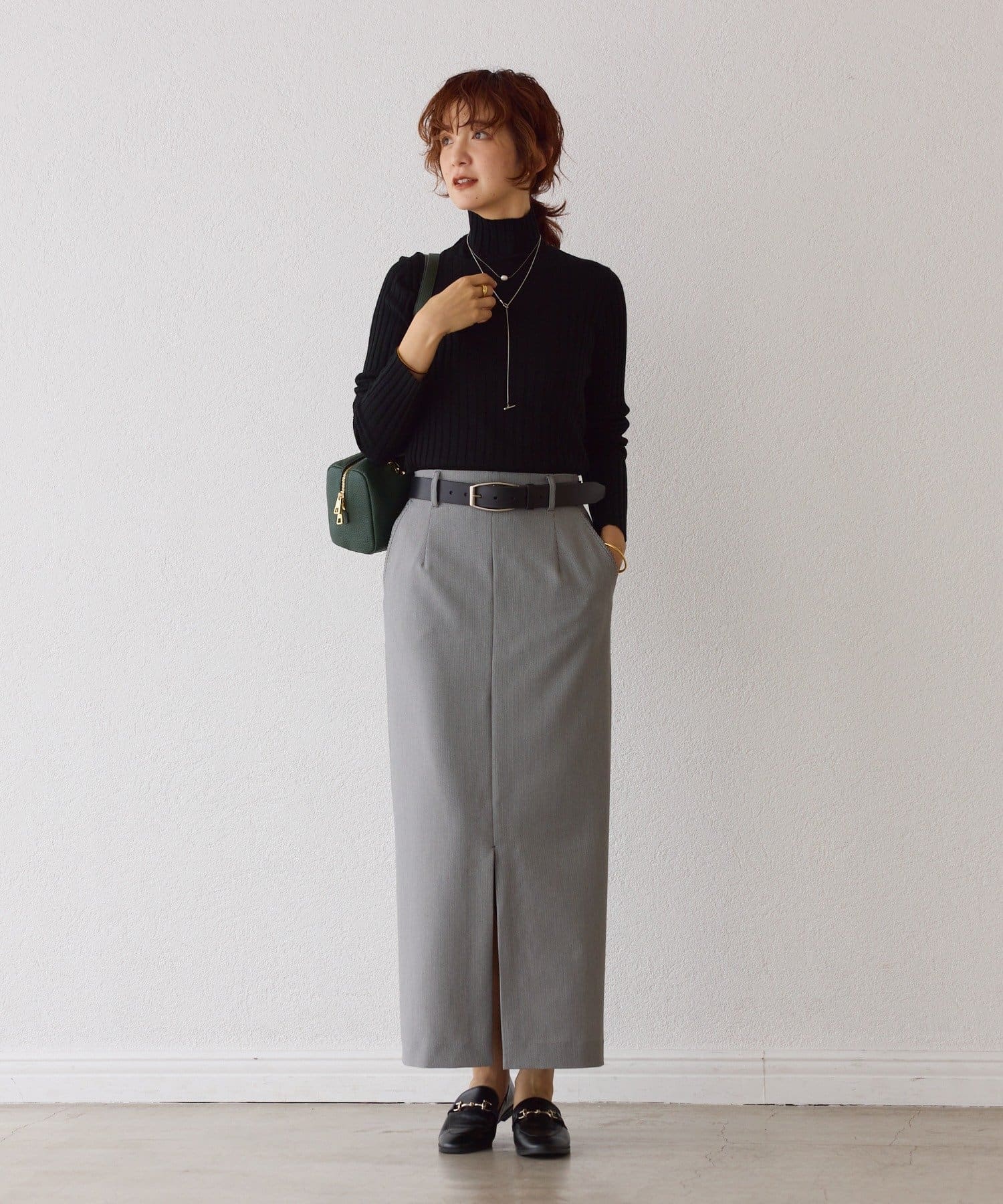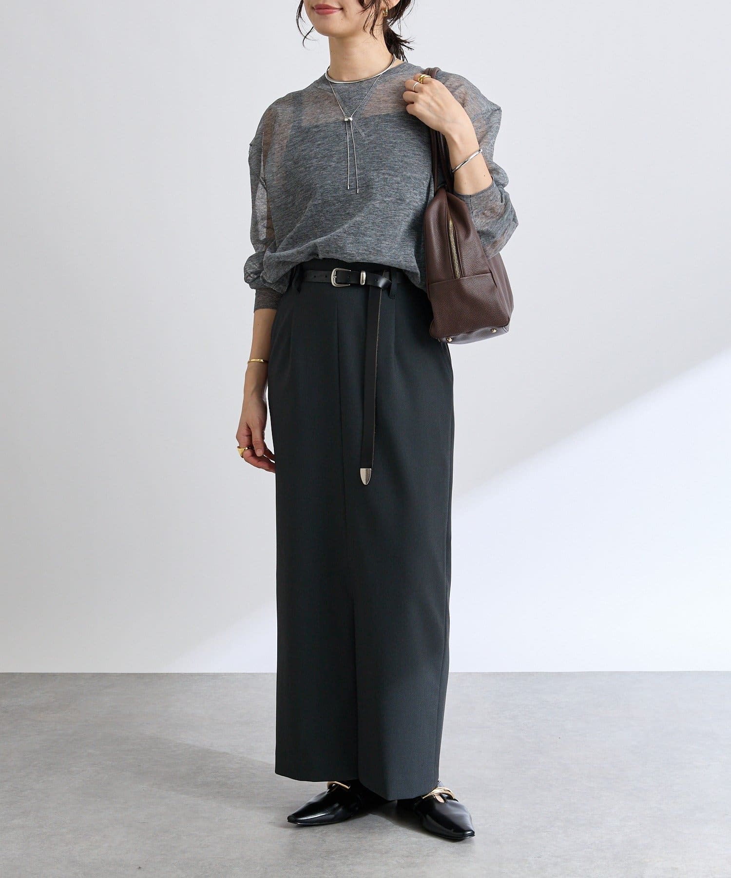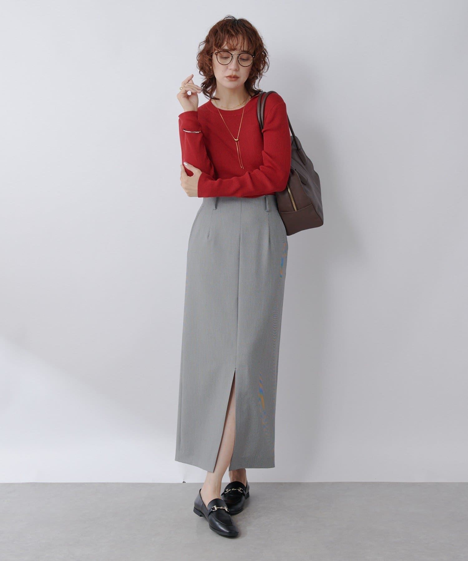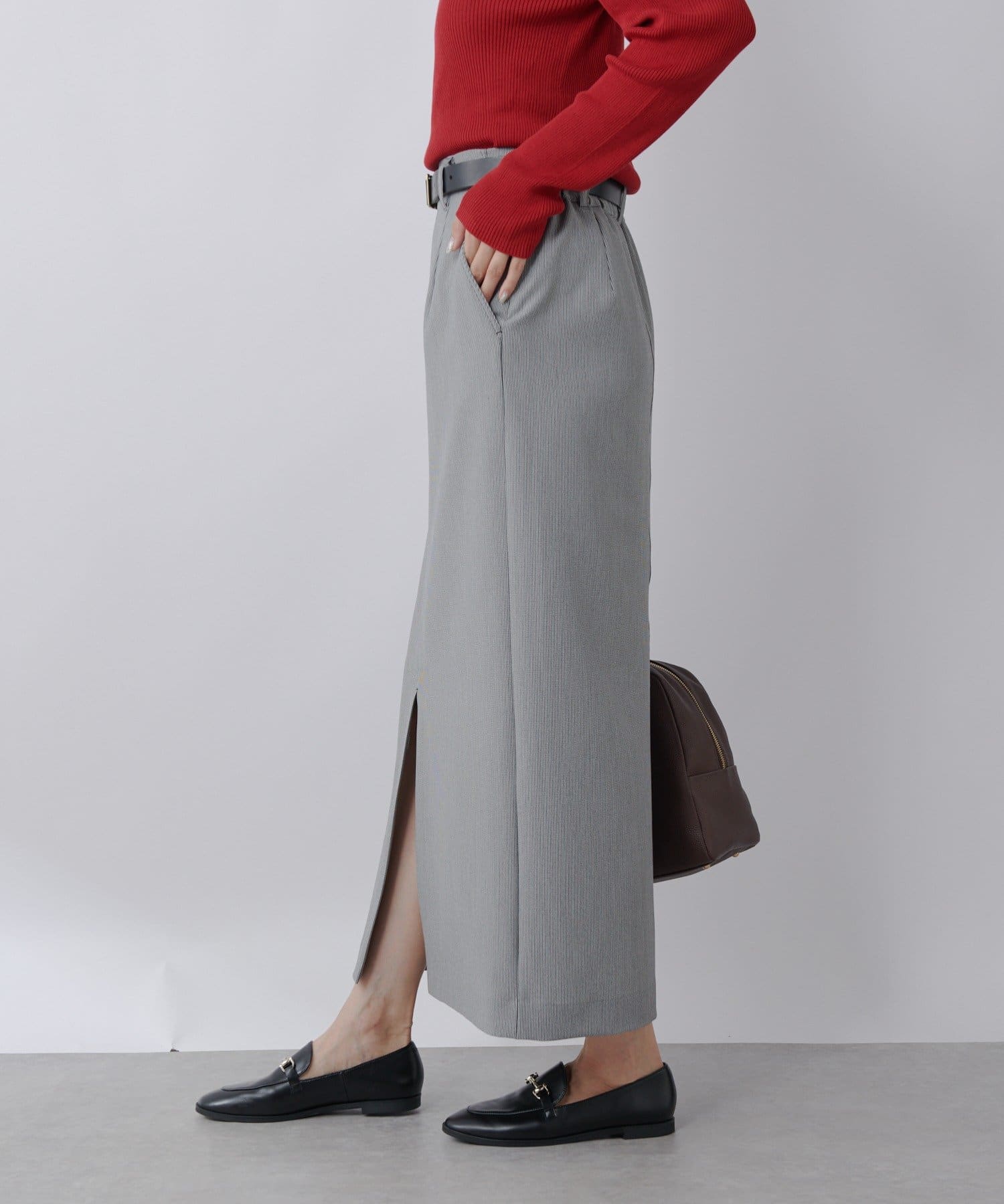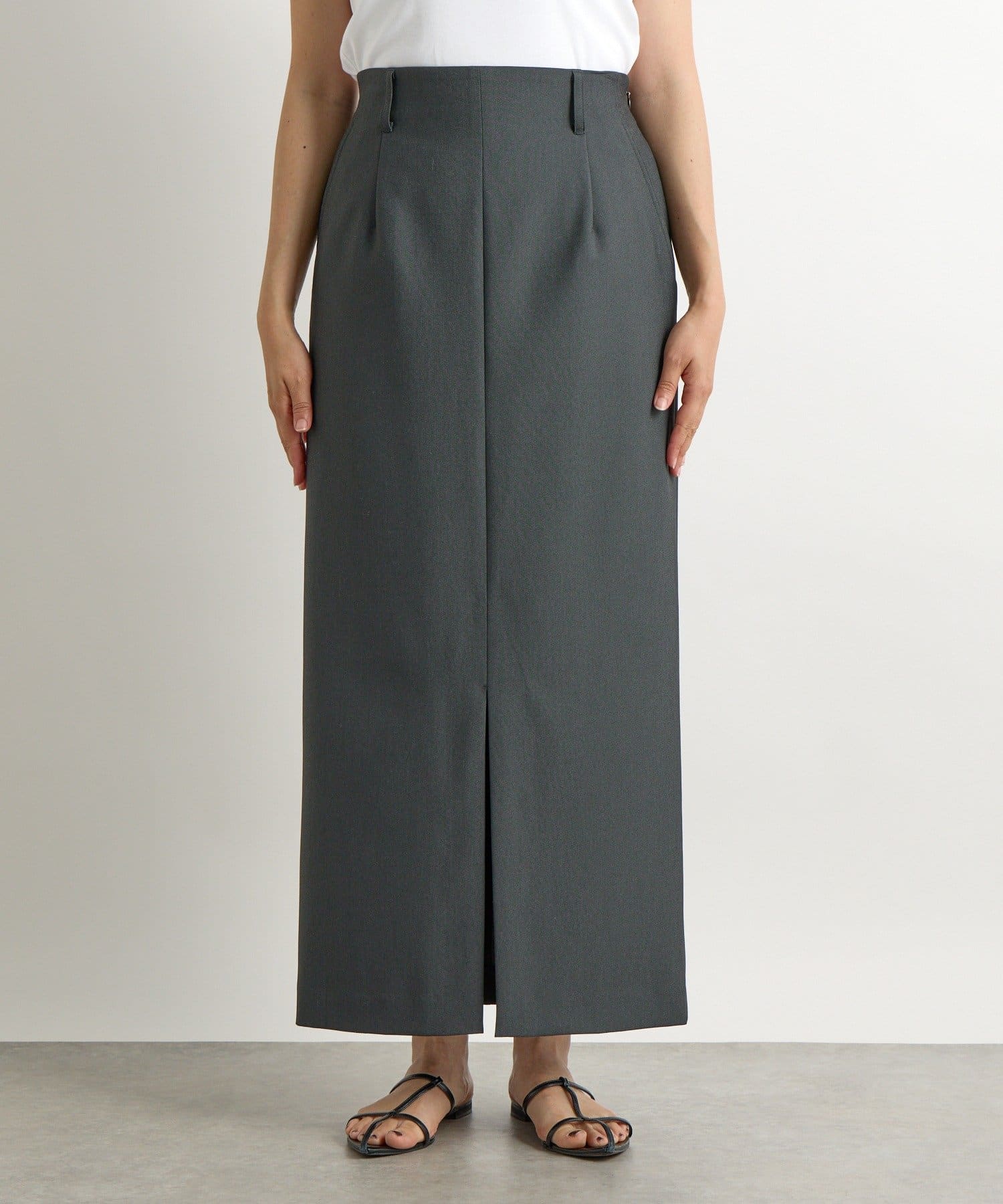 フロントスリット入りでシンプルながら抜け感のあるタイトスカート。