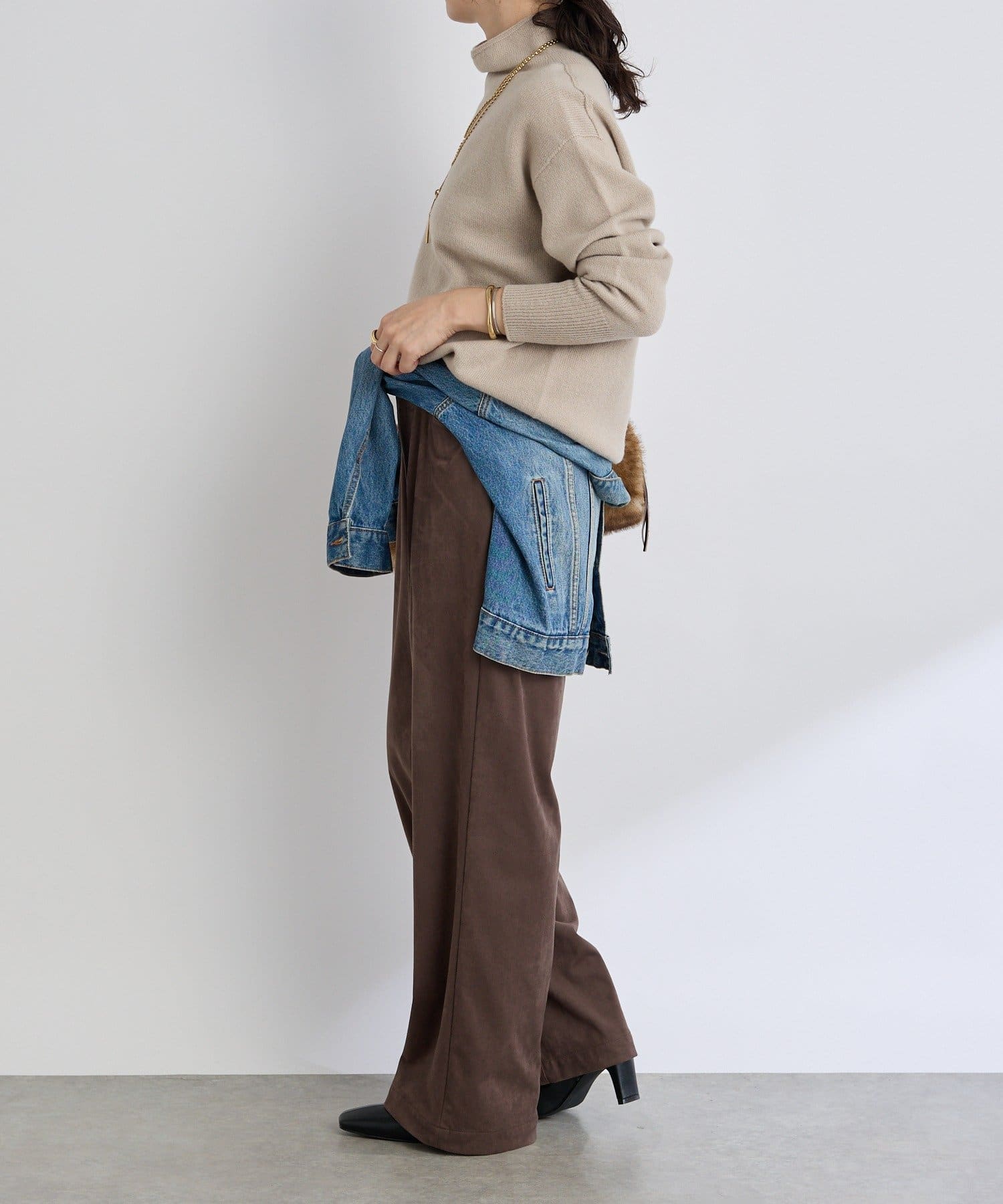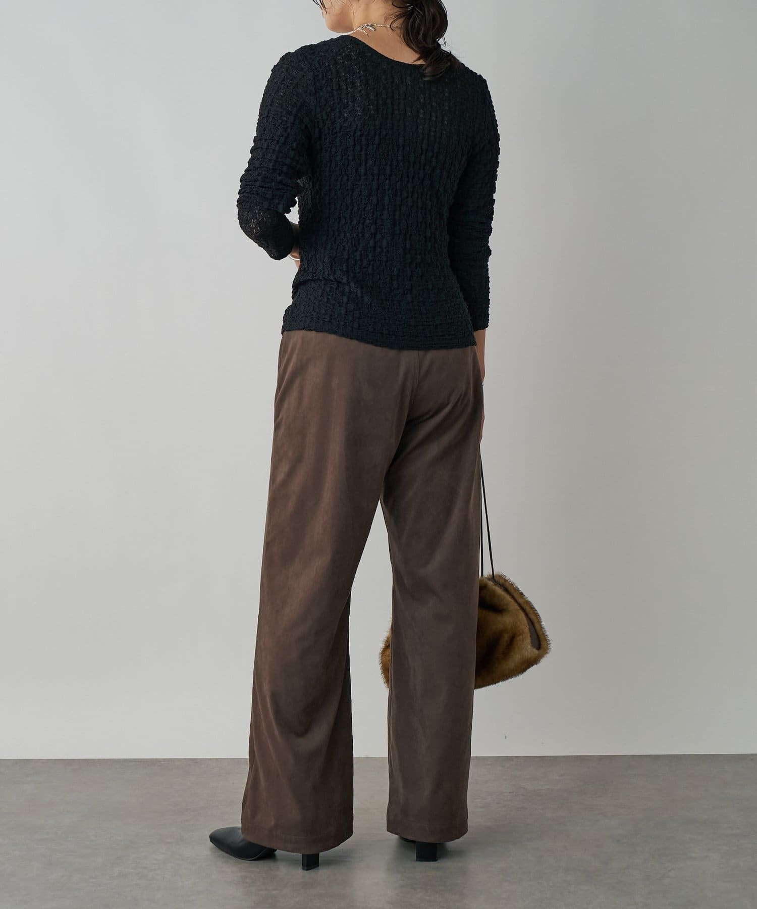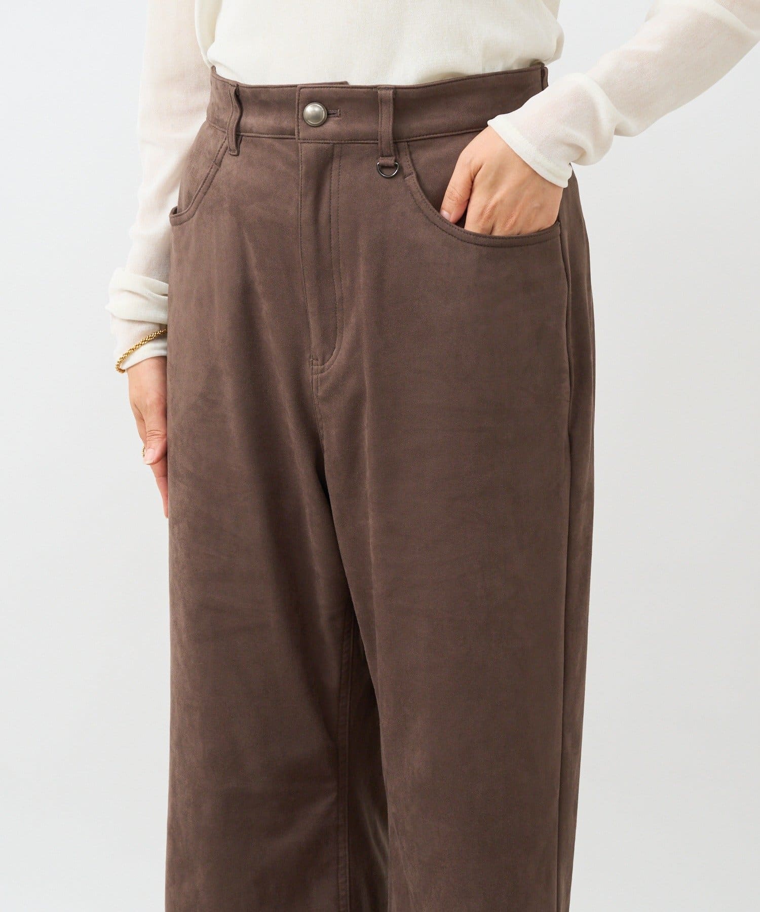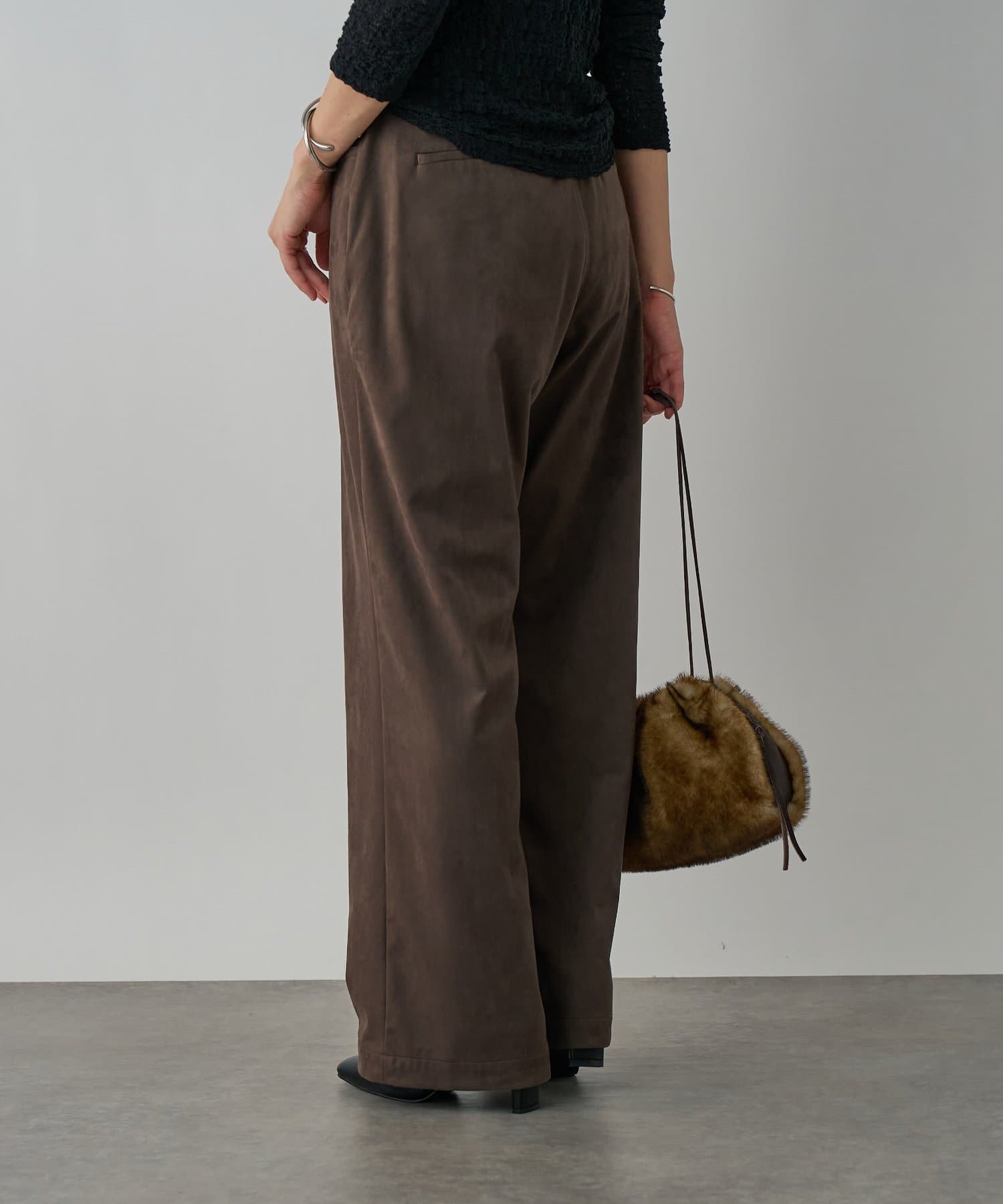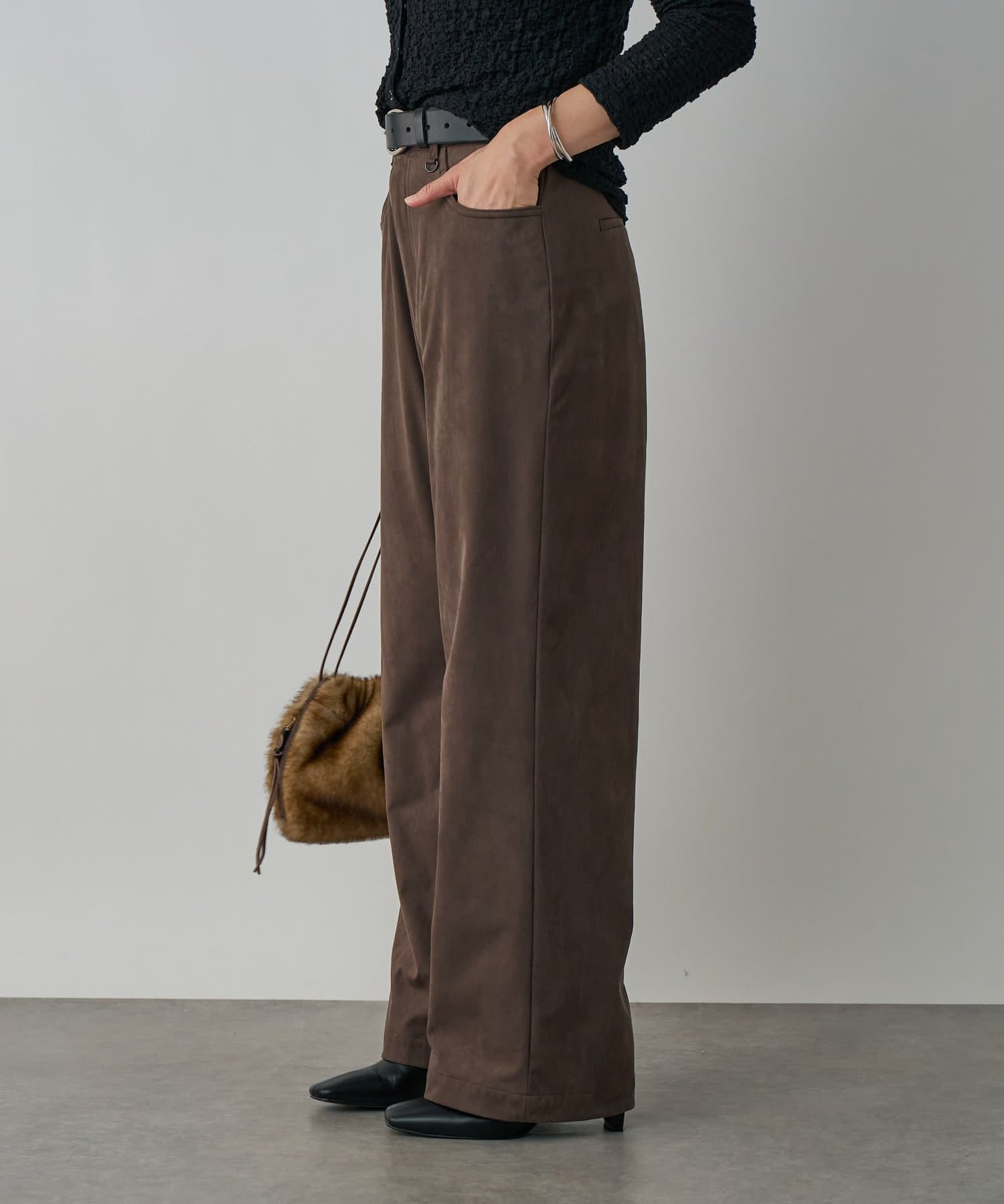 ・トレンドのスエードライクな素材を使用したルーズストレートパンツ