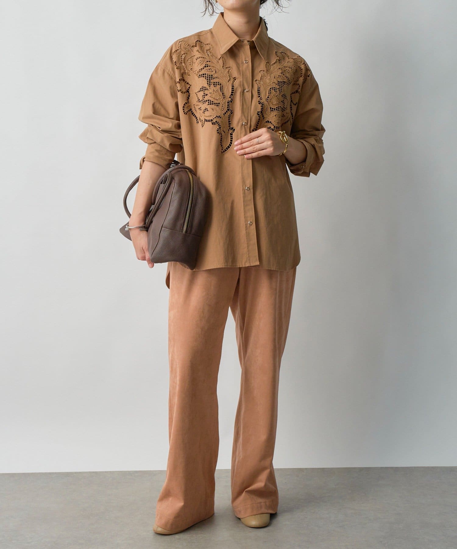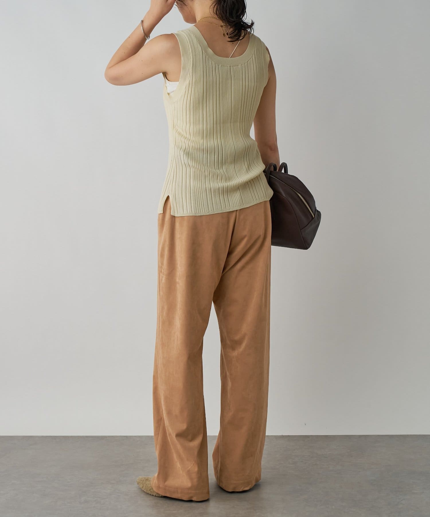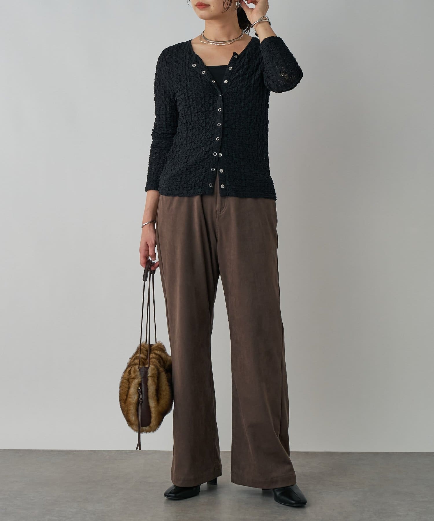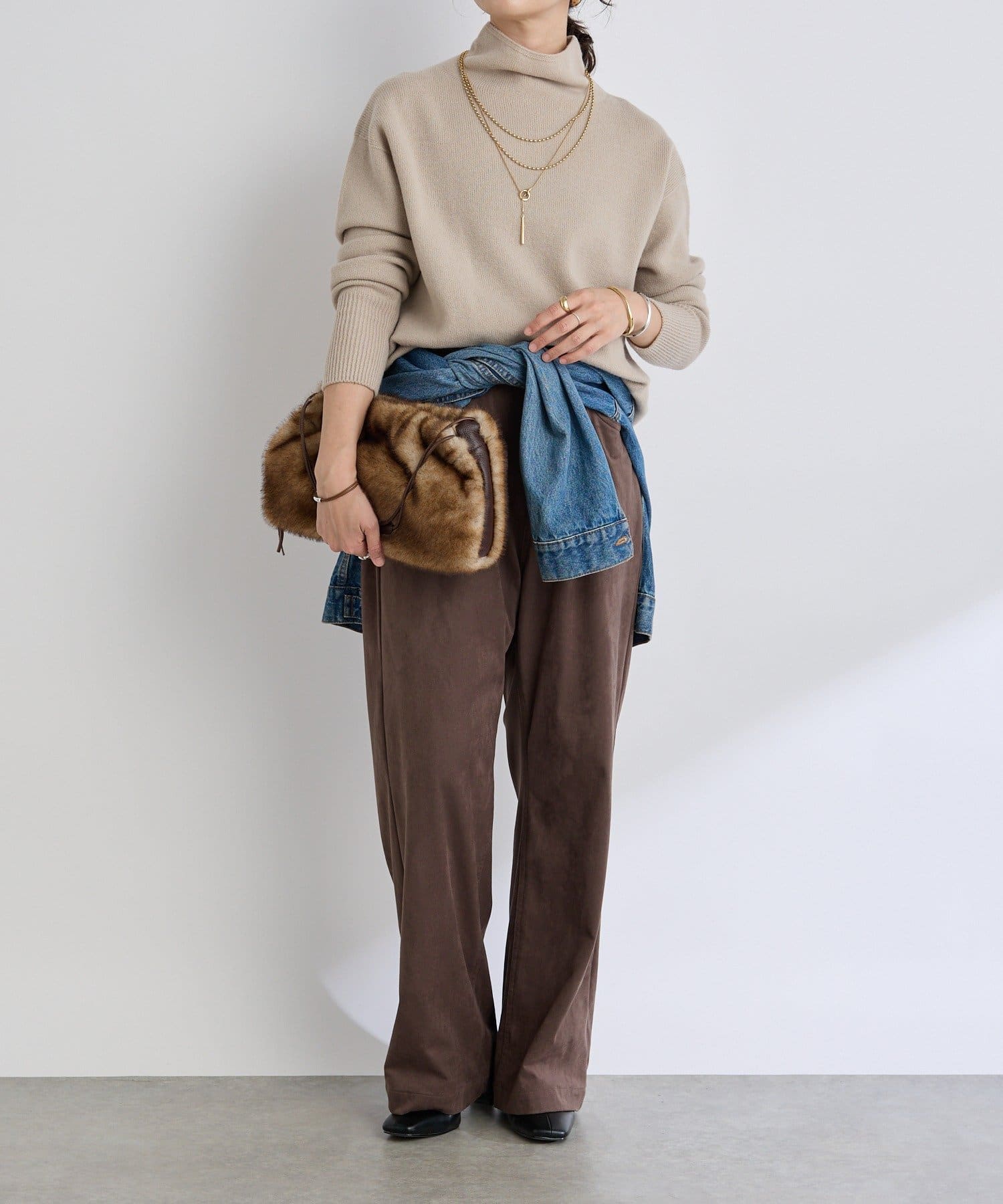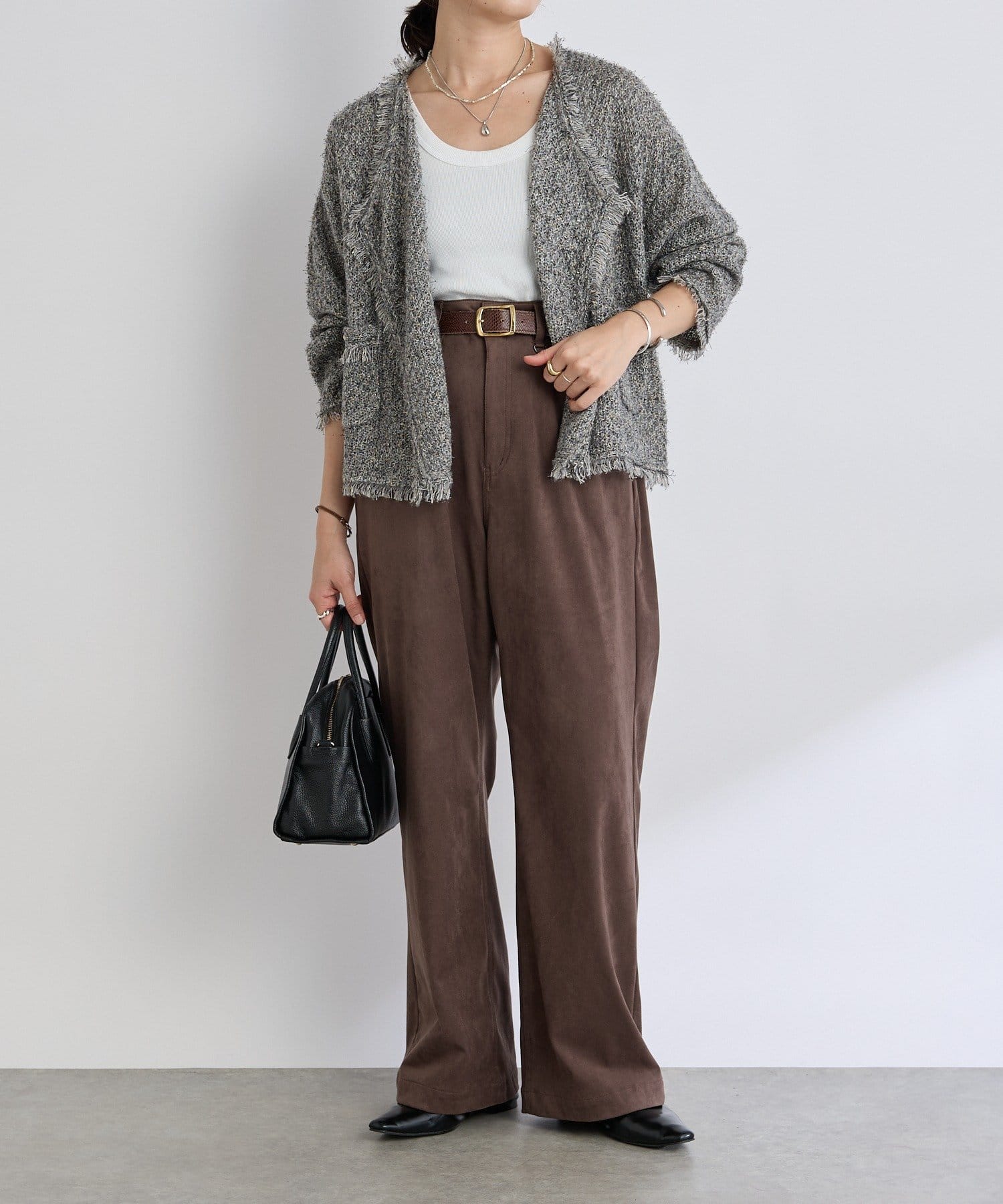 ・トレンドのスエードライクな素材を使用したルーズストレートパンツ