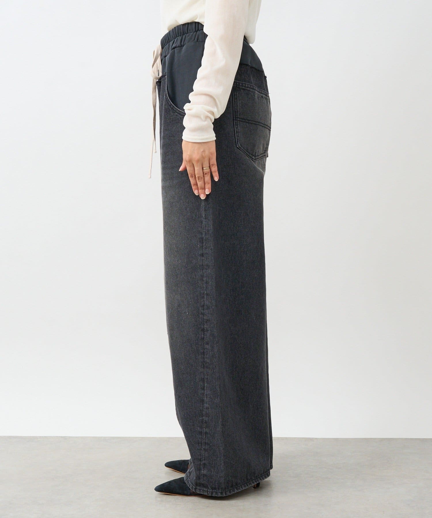 ・スウェットパンツとデニムパンツをドッキングさせたようなキャッチーなデザイン