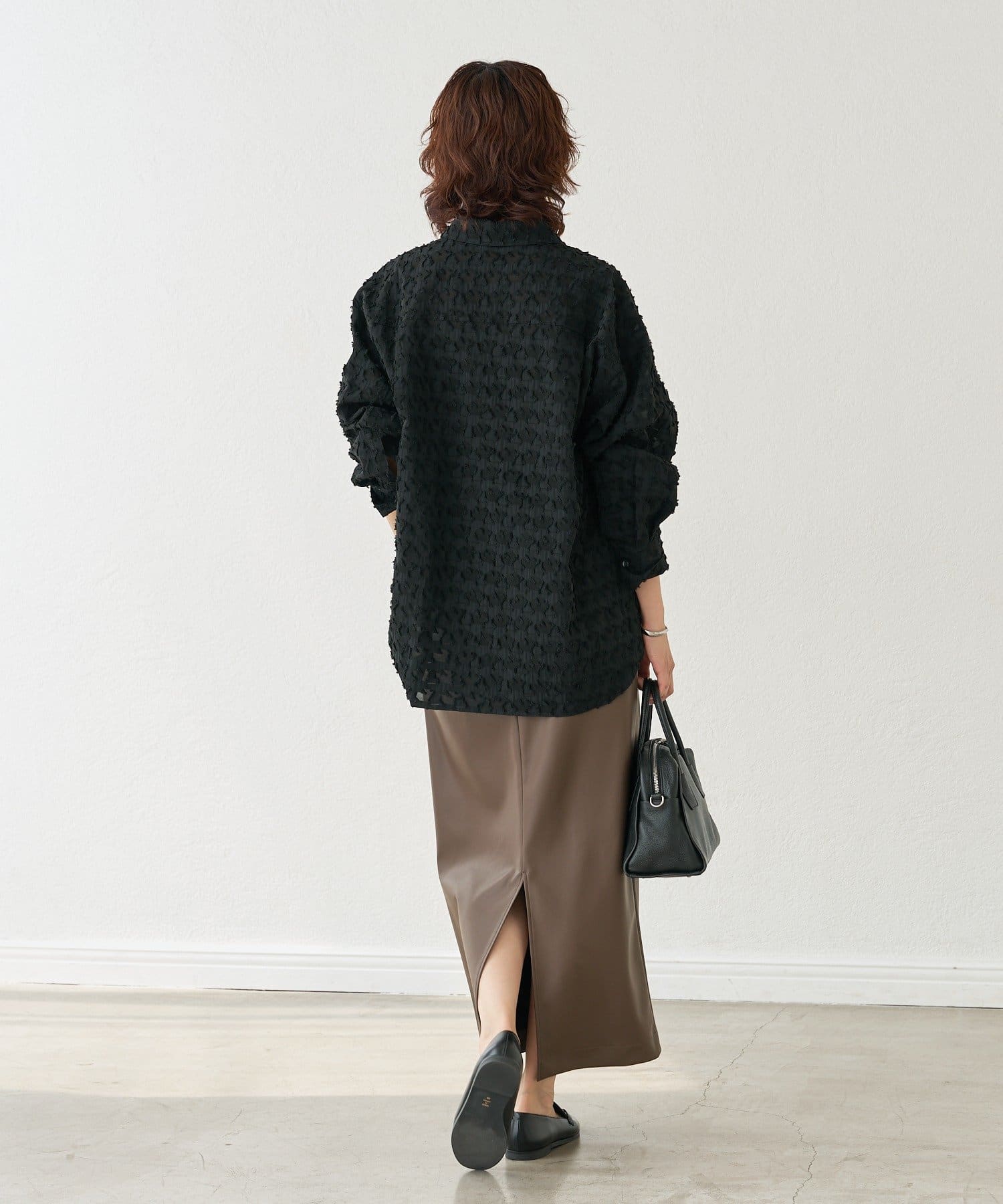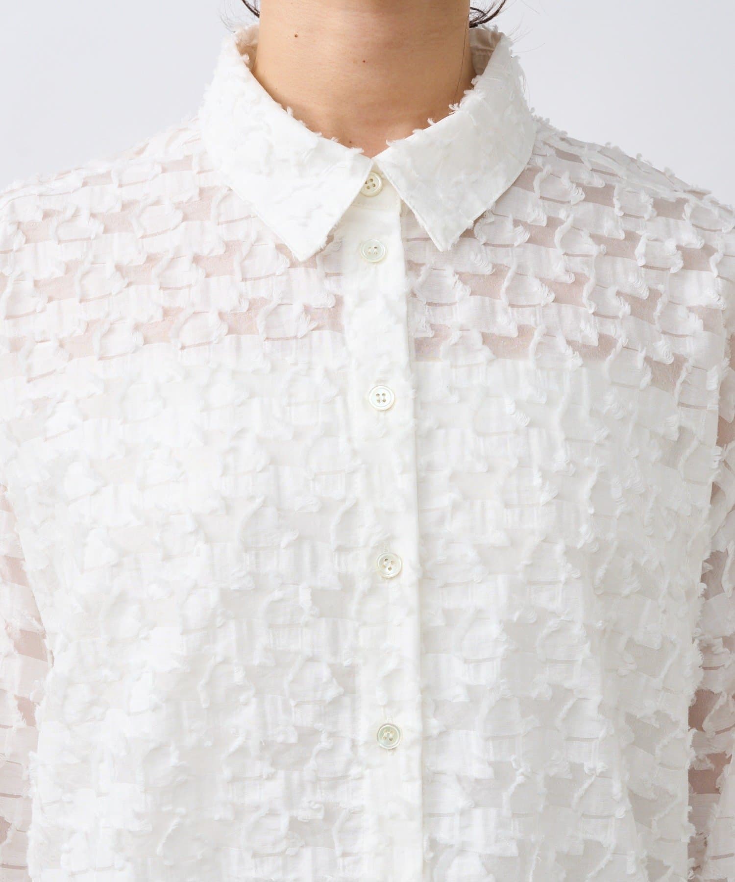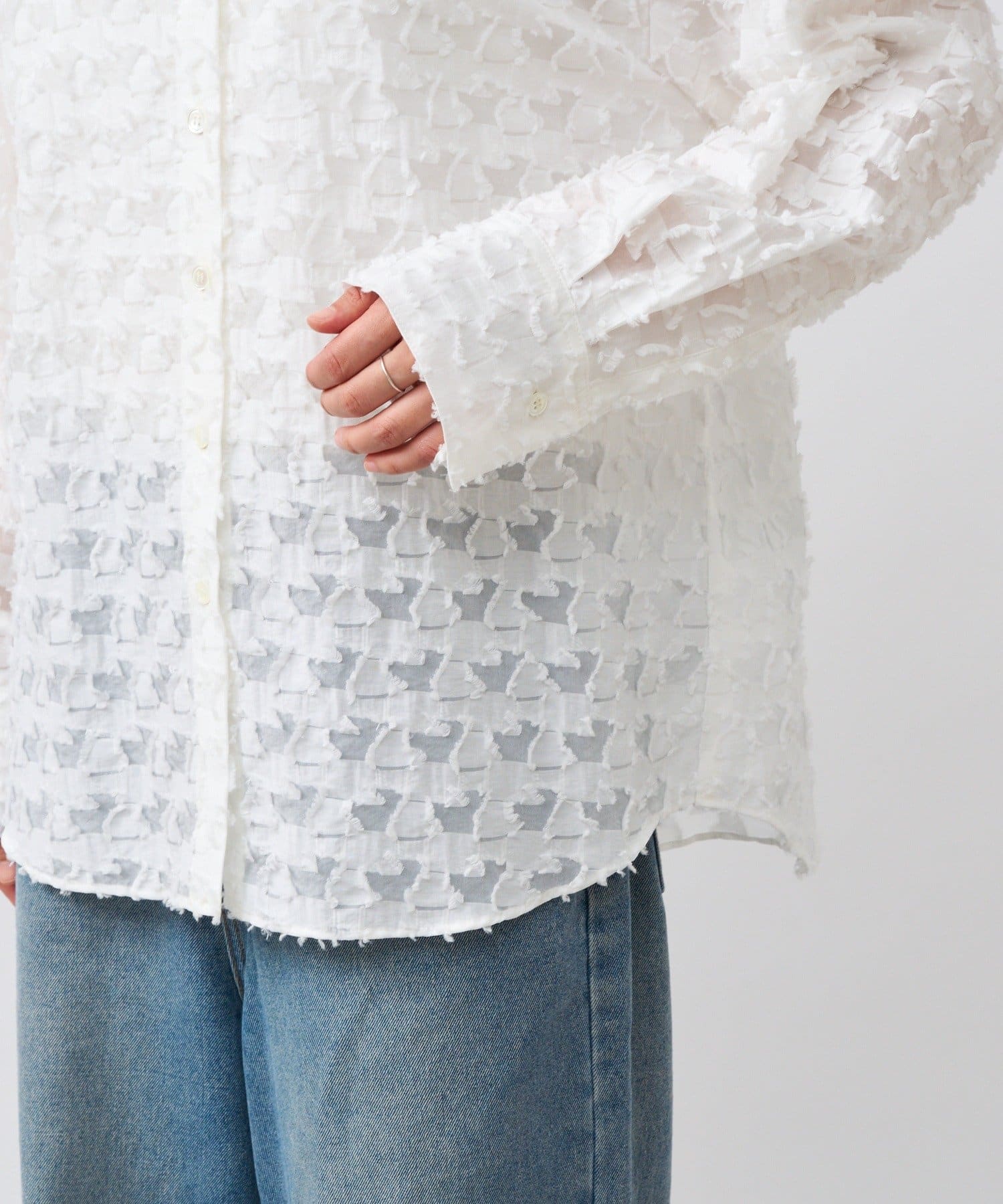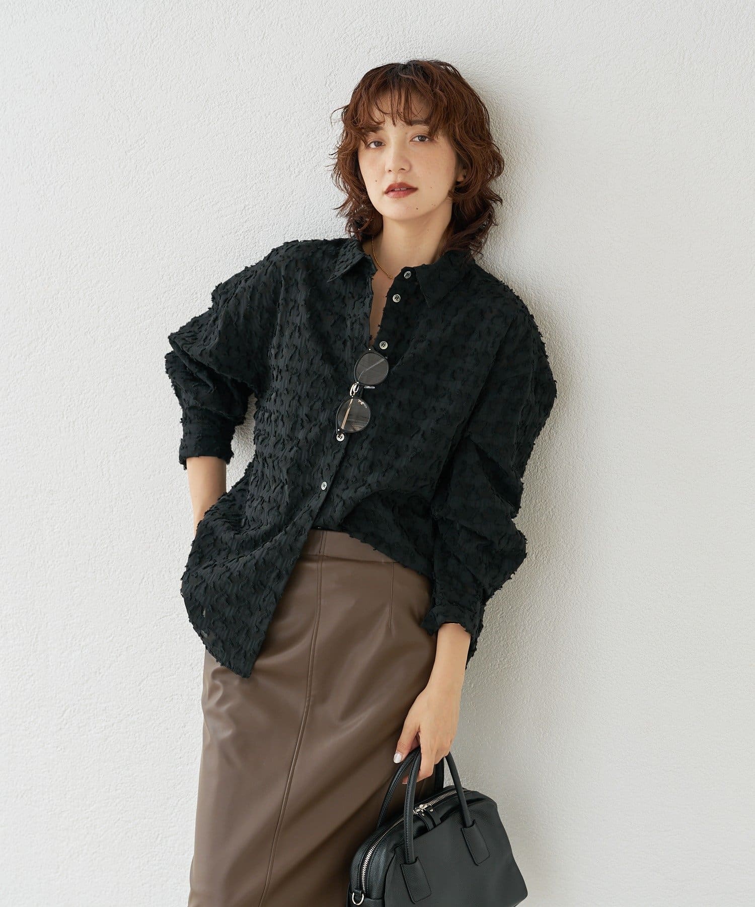 立体的なカットジャカードが目を引くシンプルなデザインのシャツ。