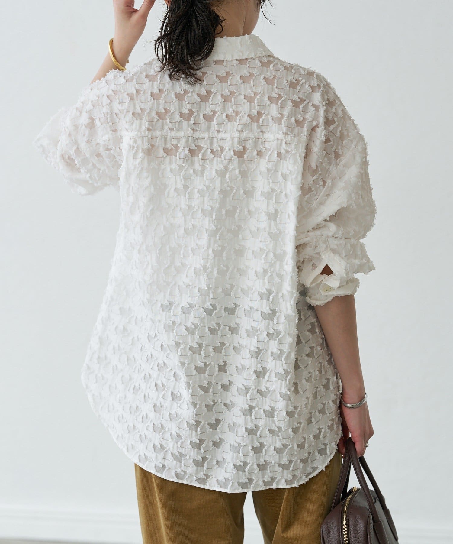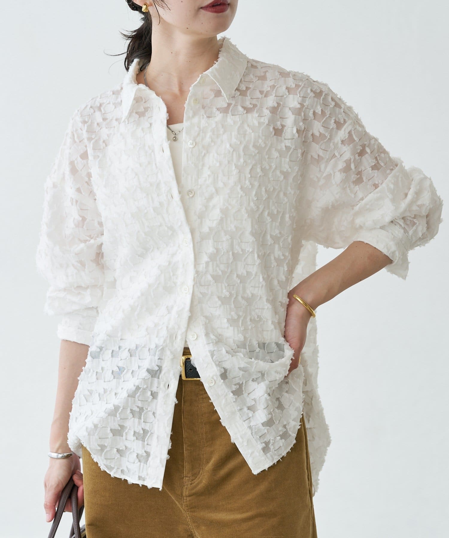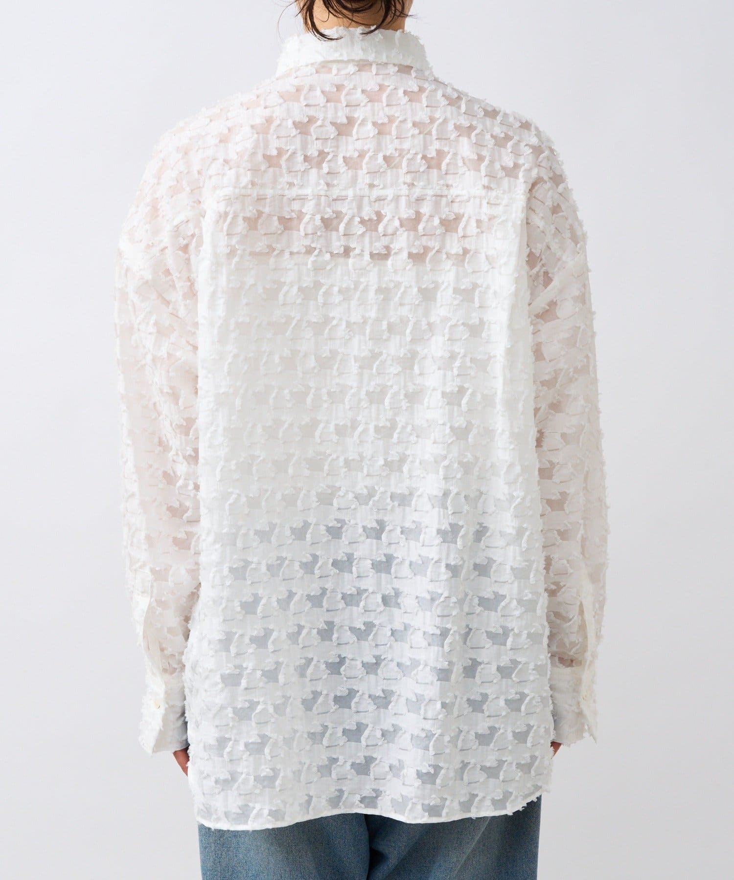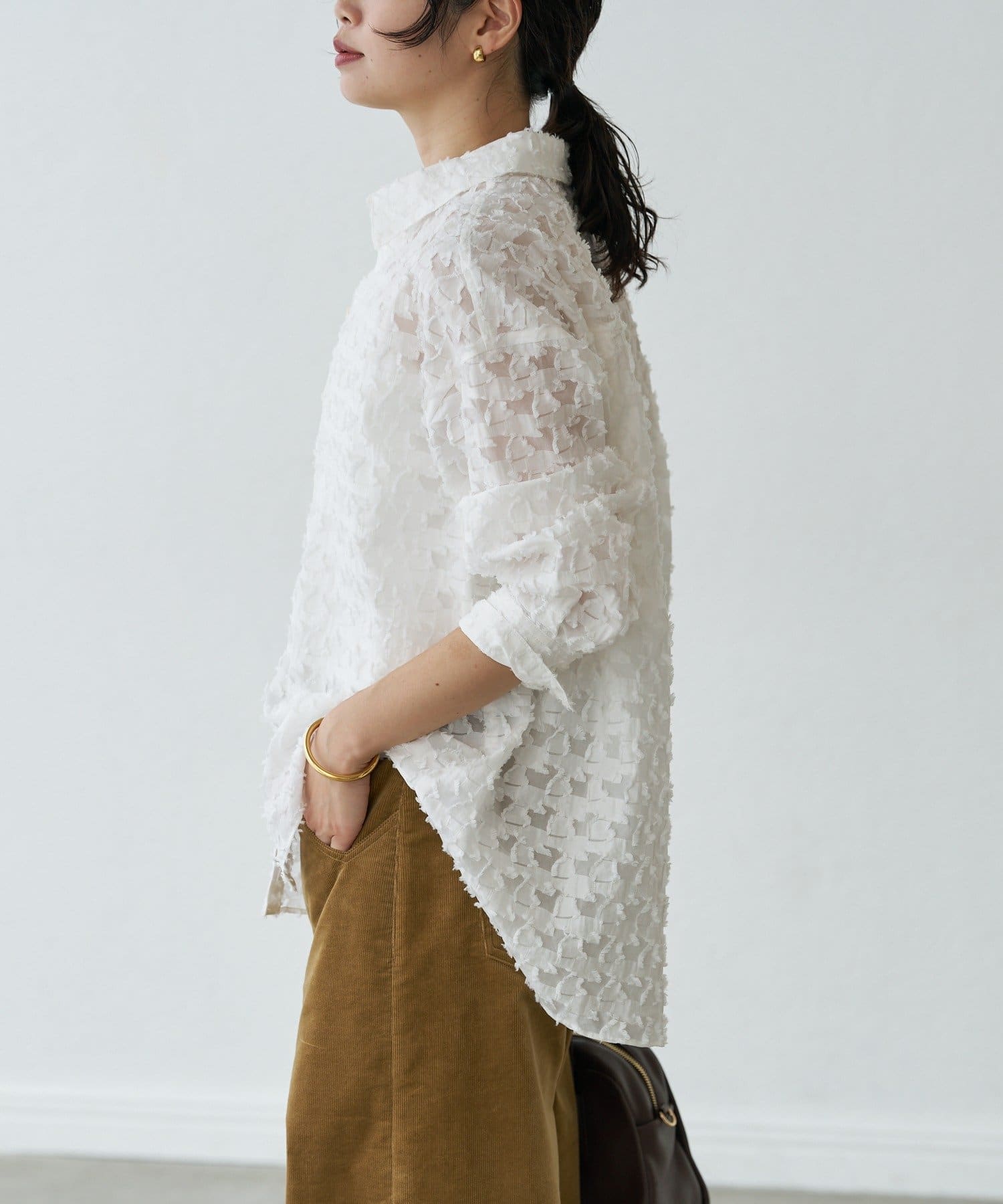 立体的なカットジャカードが目を引くシンプルなデザインのシャツ。