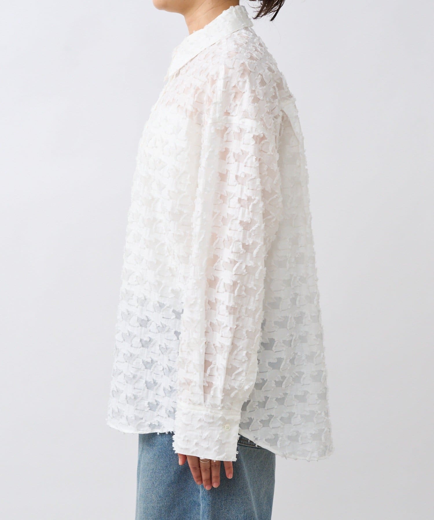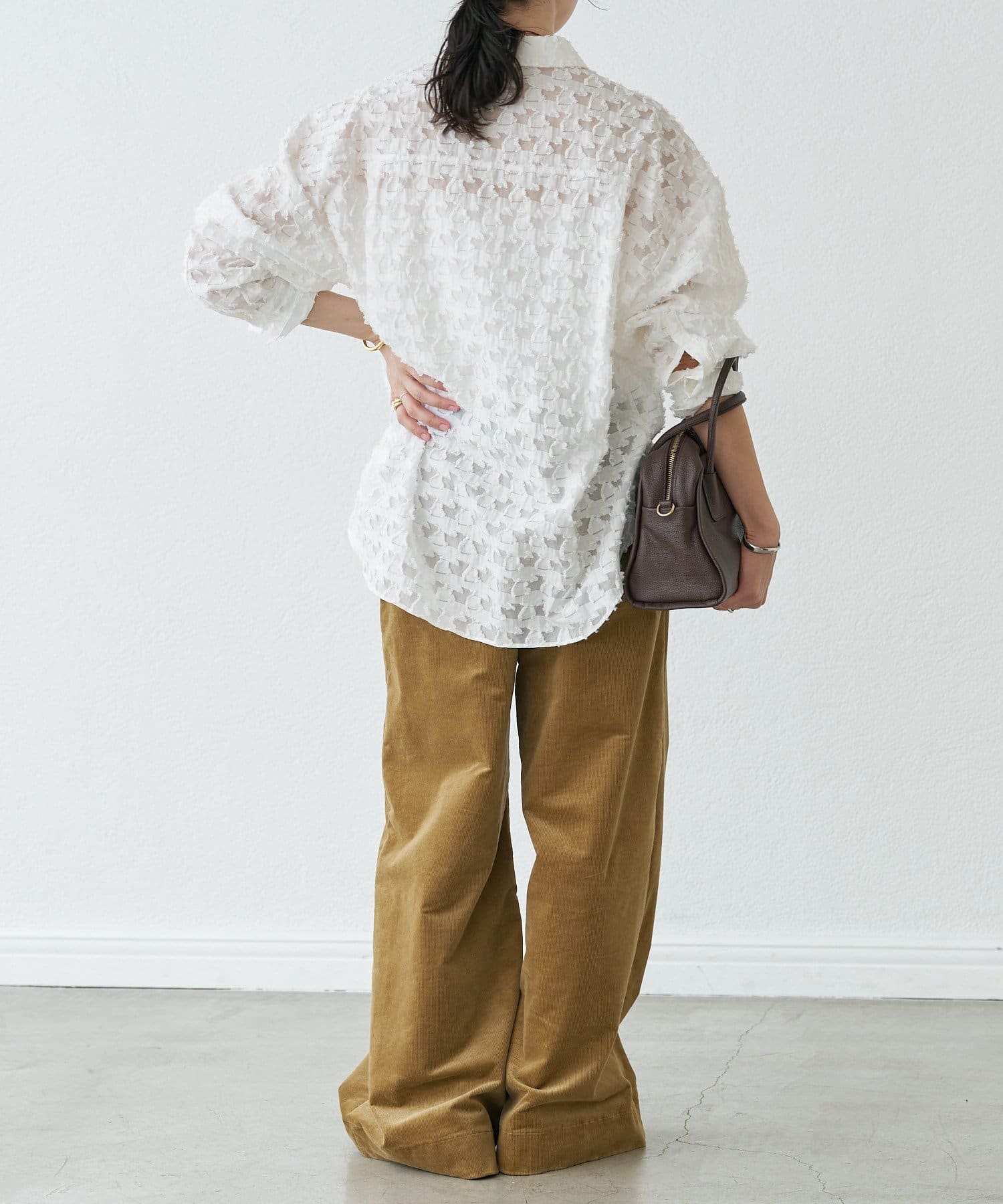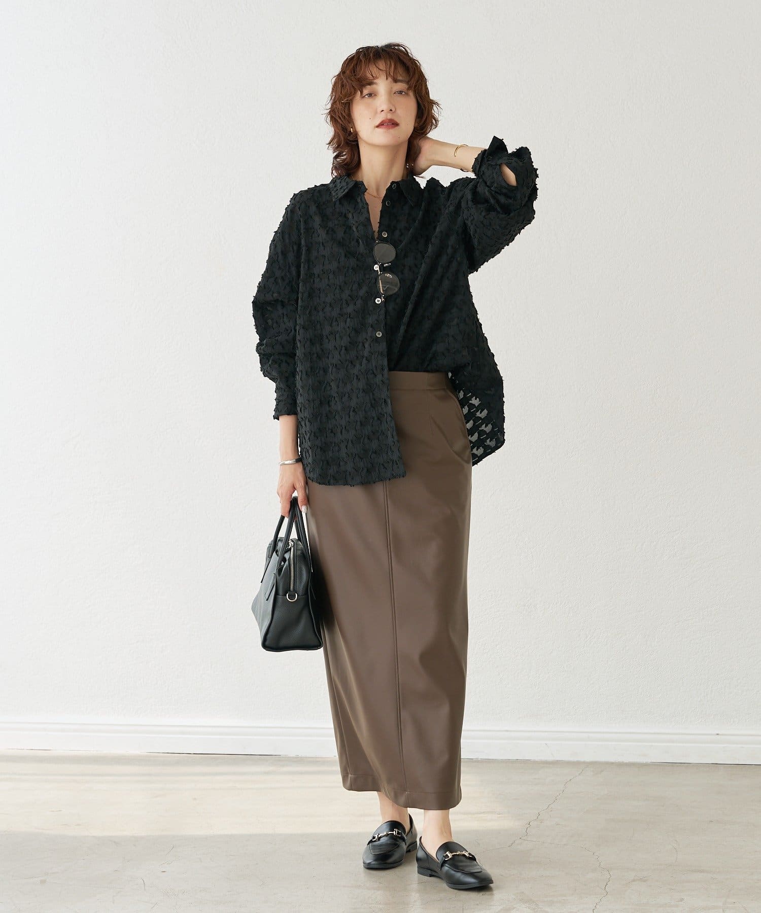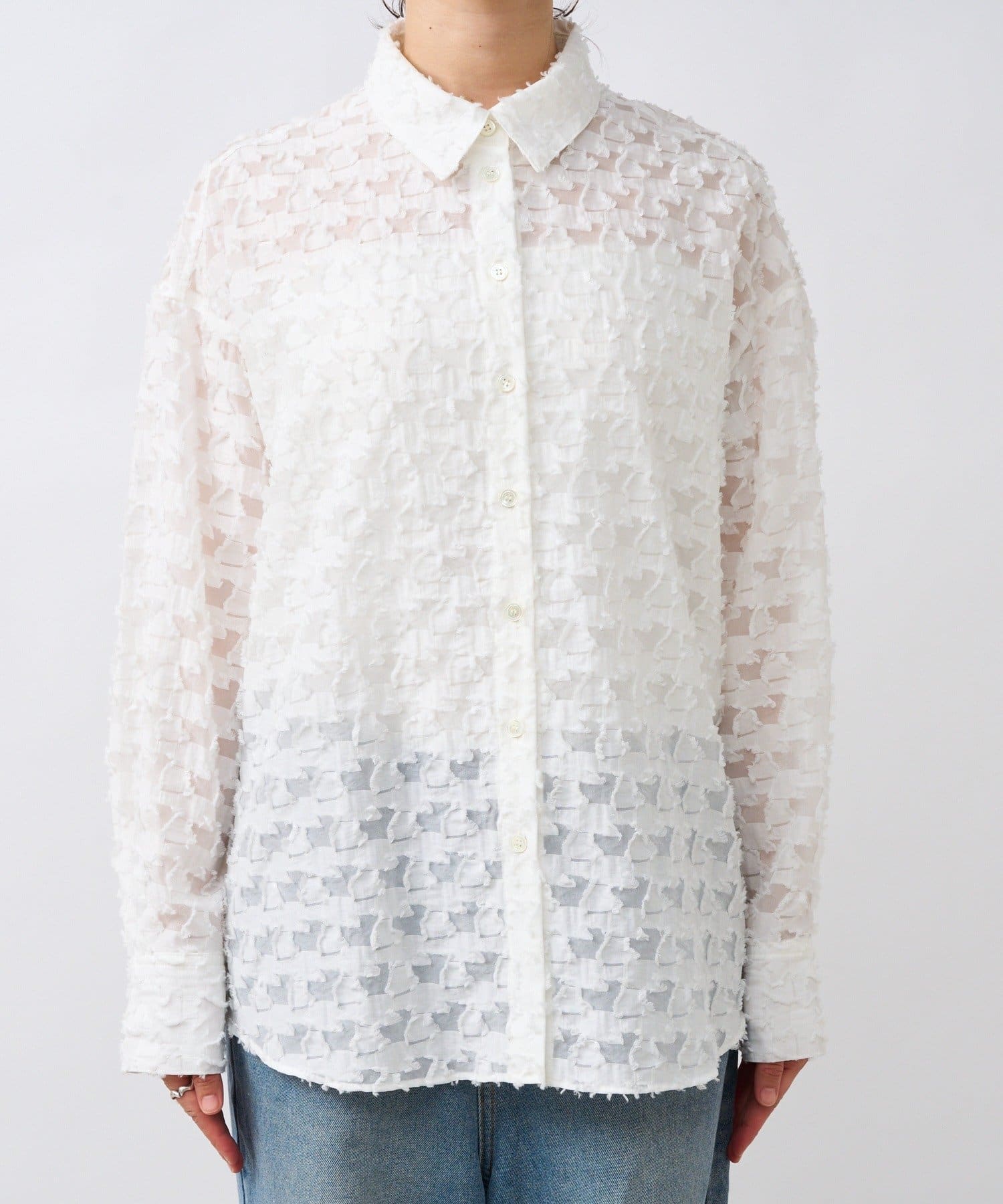 立体的なカットジャカードが目を引くシンプルなデザインのシャツ。