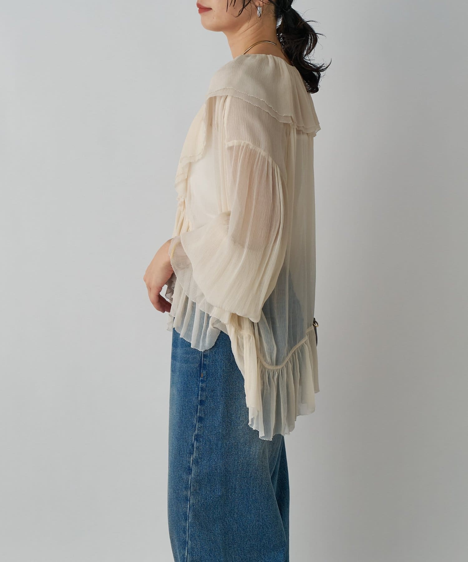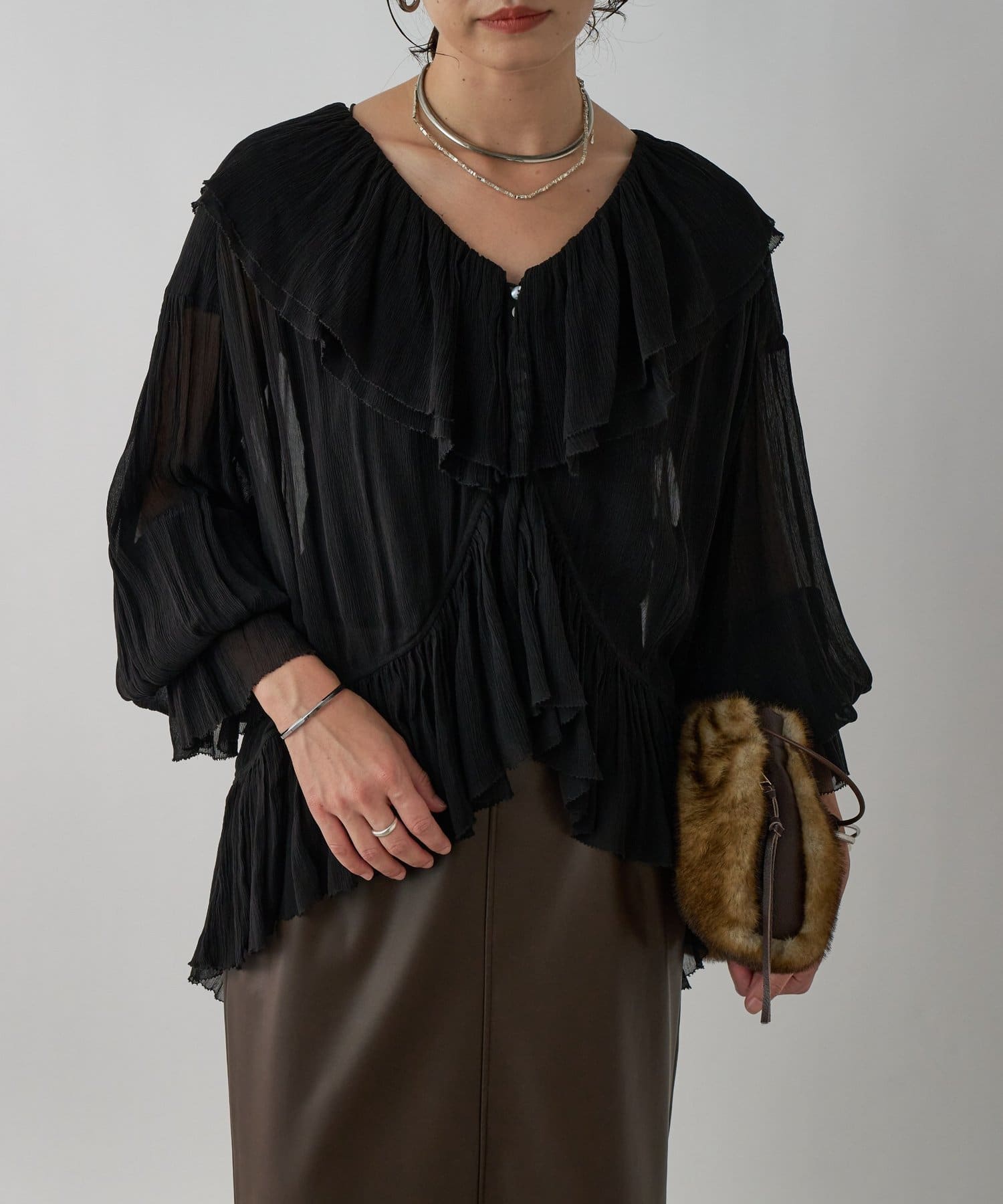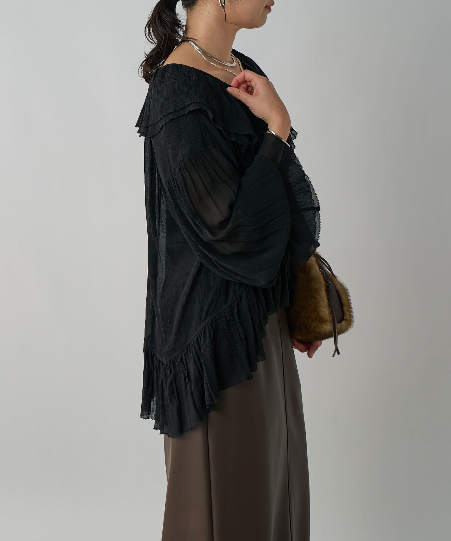 ・袖口やフリル端をピコ始末にして繊細な印象に