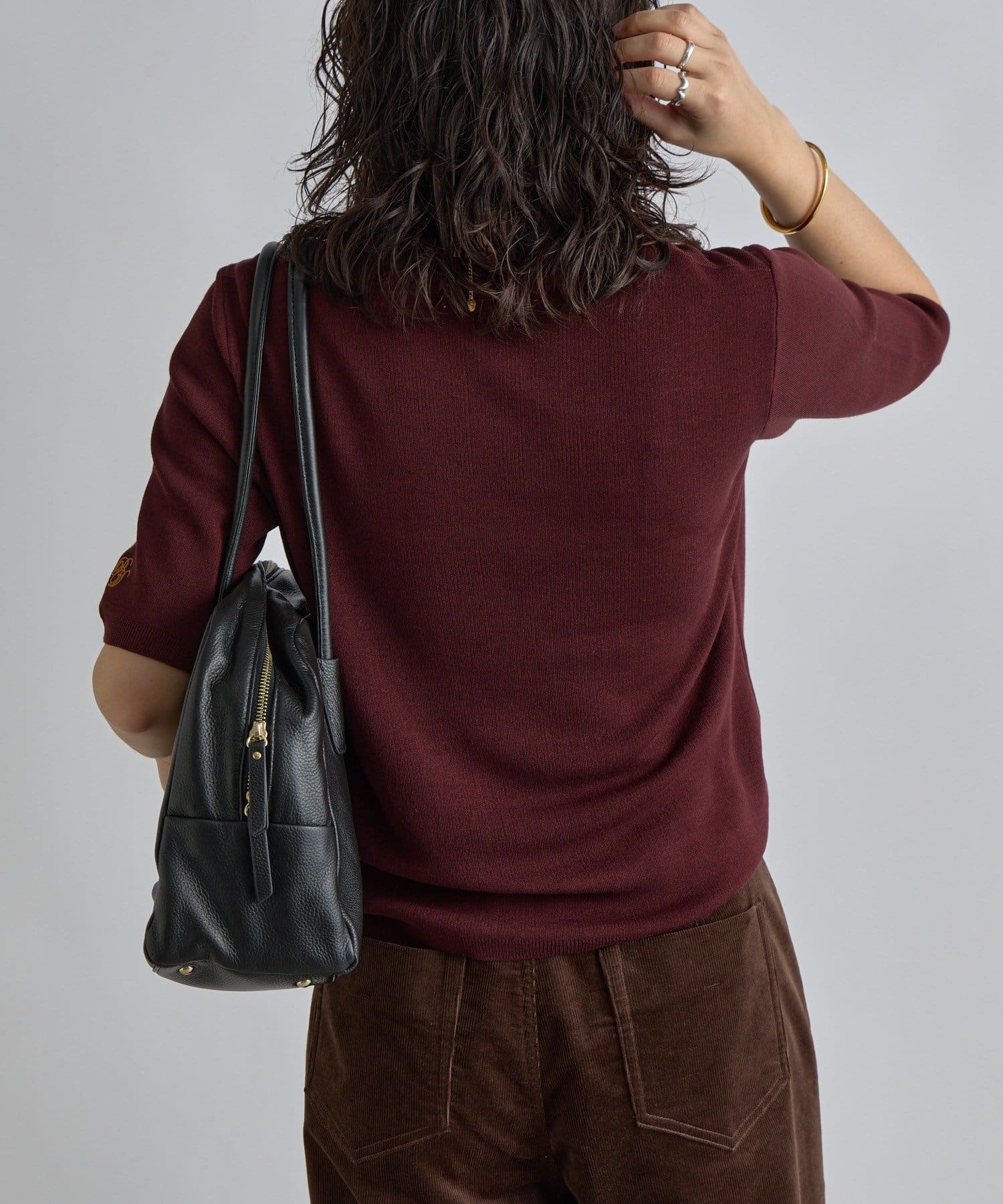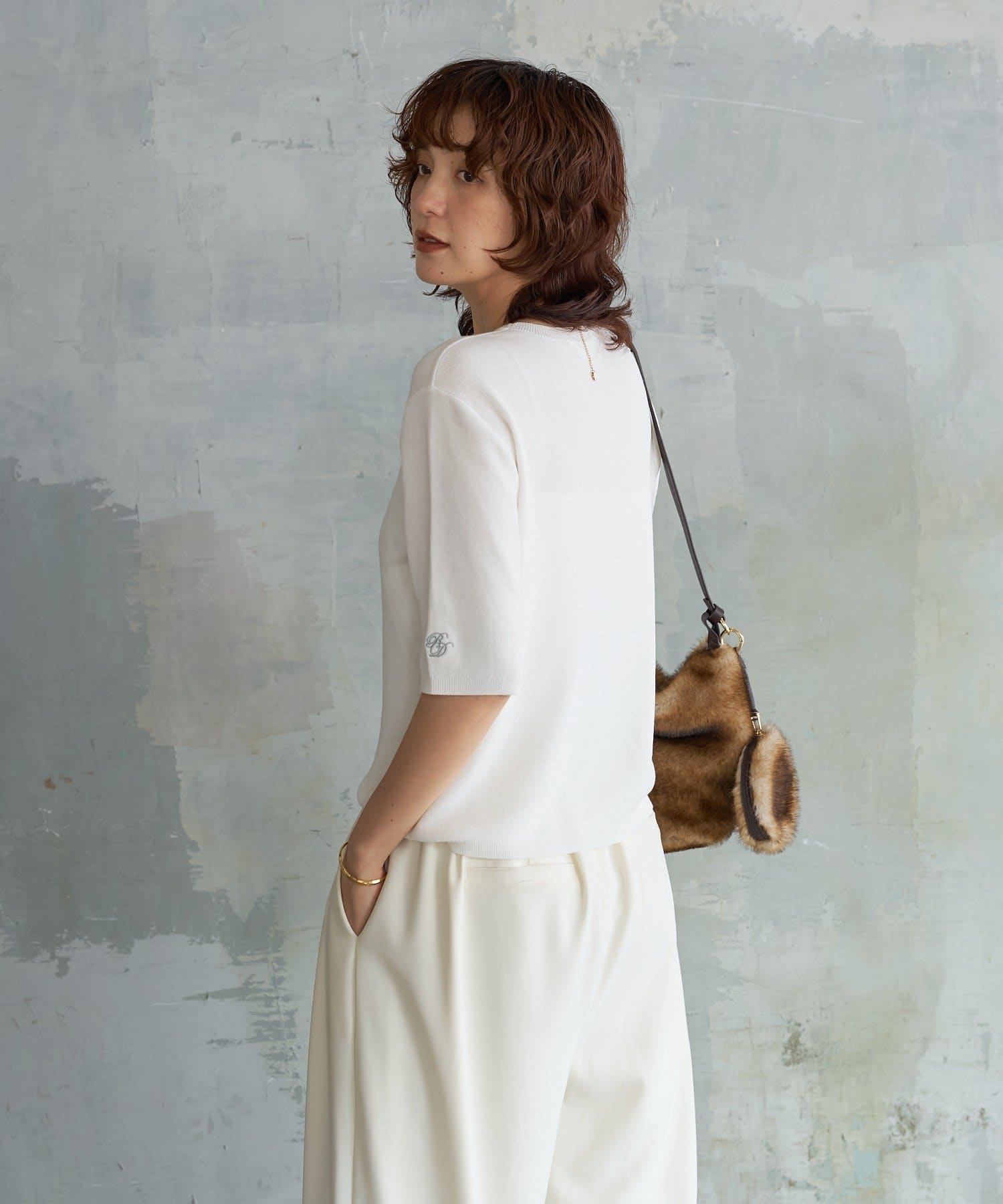 イニシャル刺繍のシックな配色が着こなしにさりげないアクセントをプラスしてくれます。
