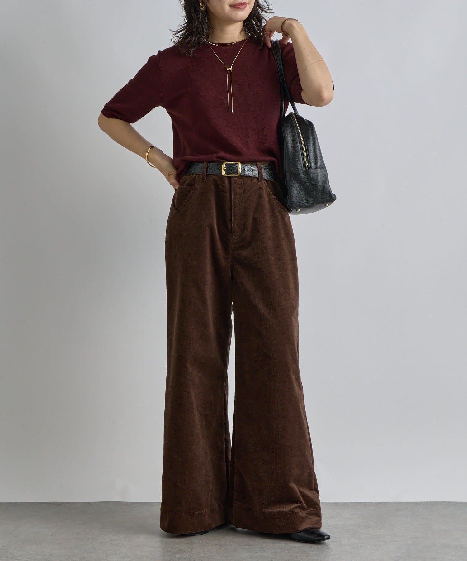 ボディにつかず離れずのフィット感でジャケットやシャツinにも使いやすく、1枚でも洒落たムードに。