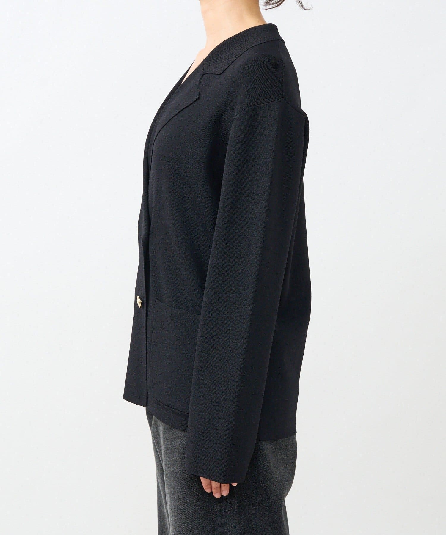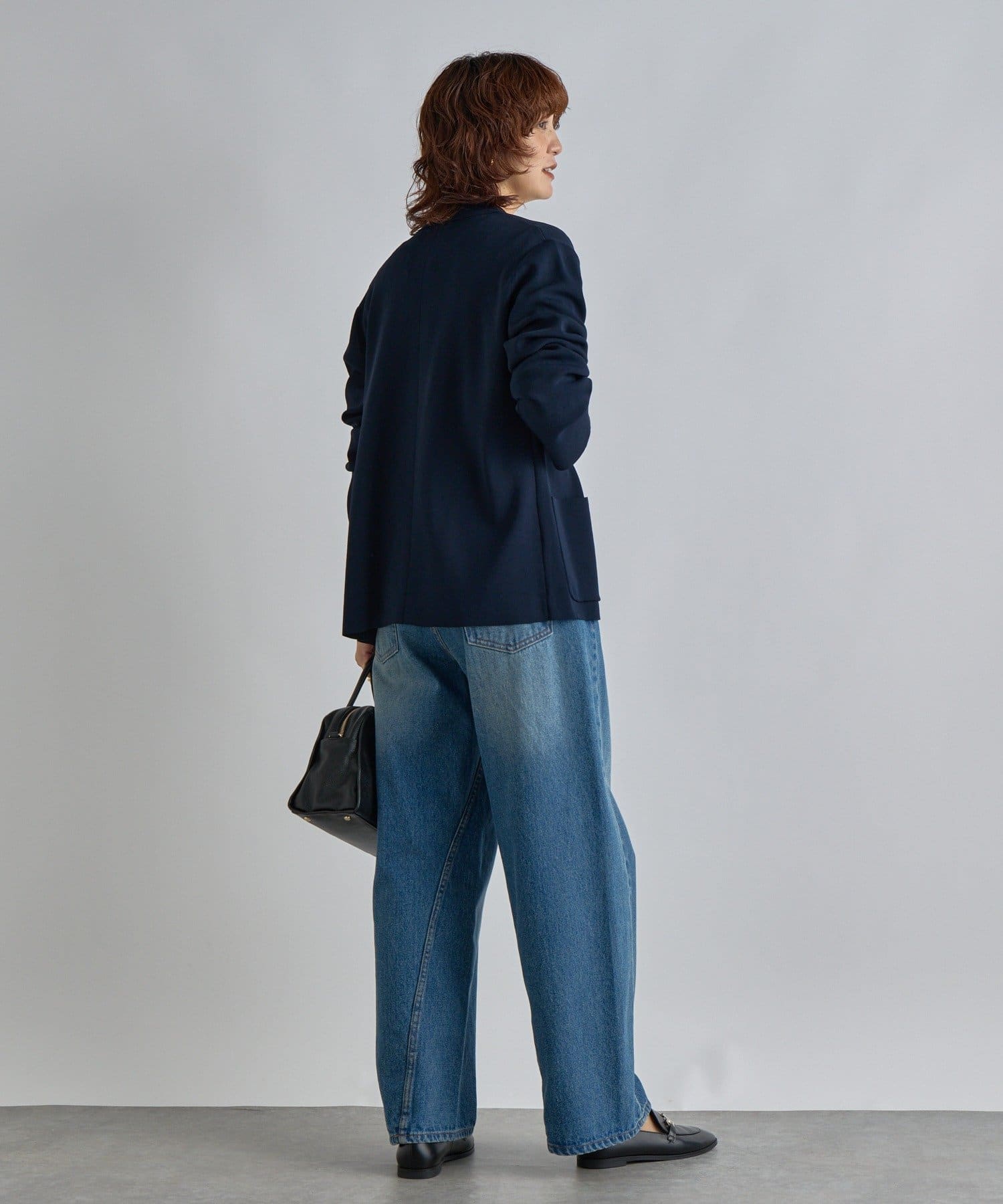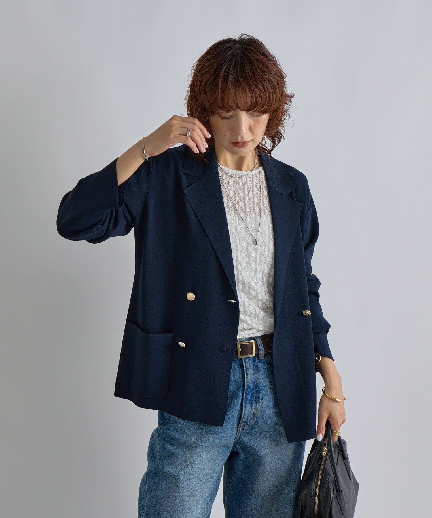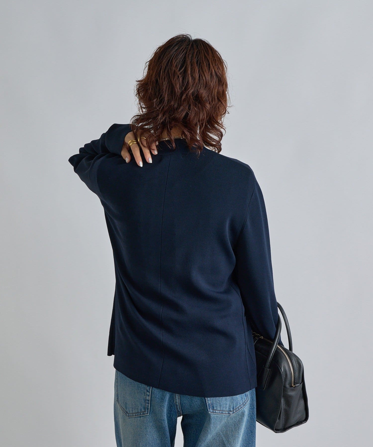 ニットならではの伸縮性と落ち感があり、布帛のジャケットよりも 気負わず着用できます。
