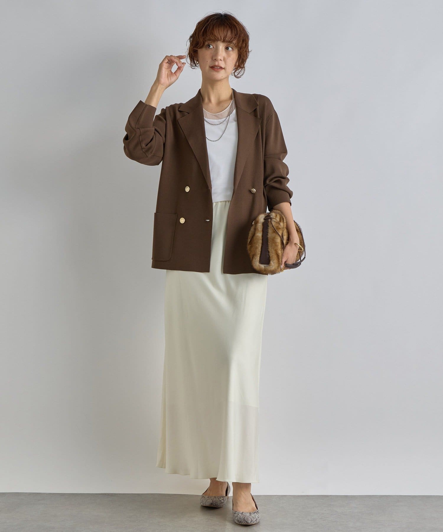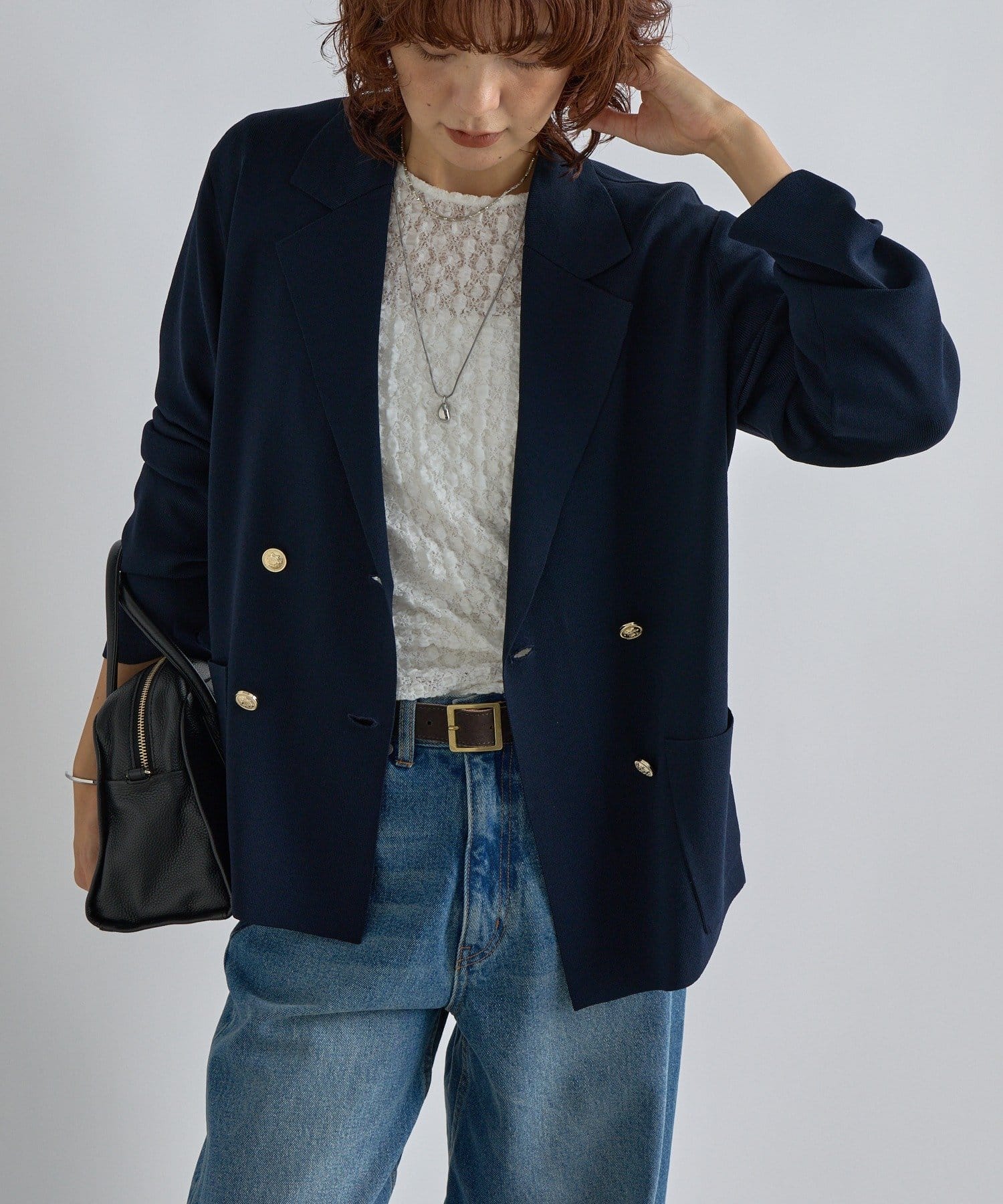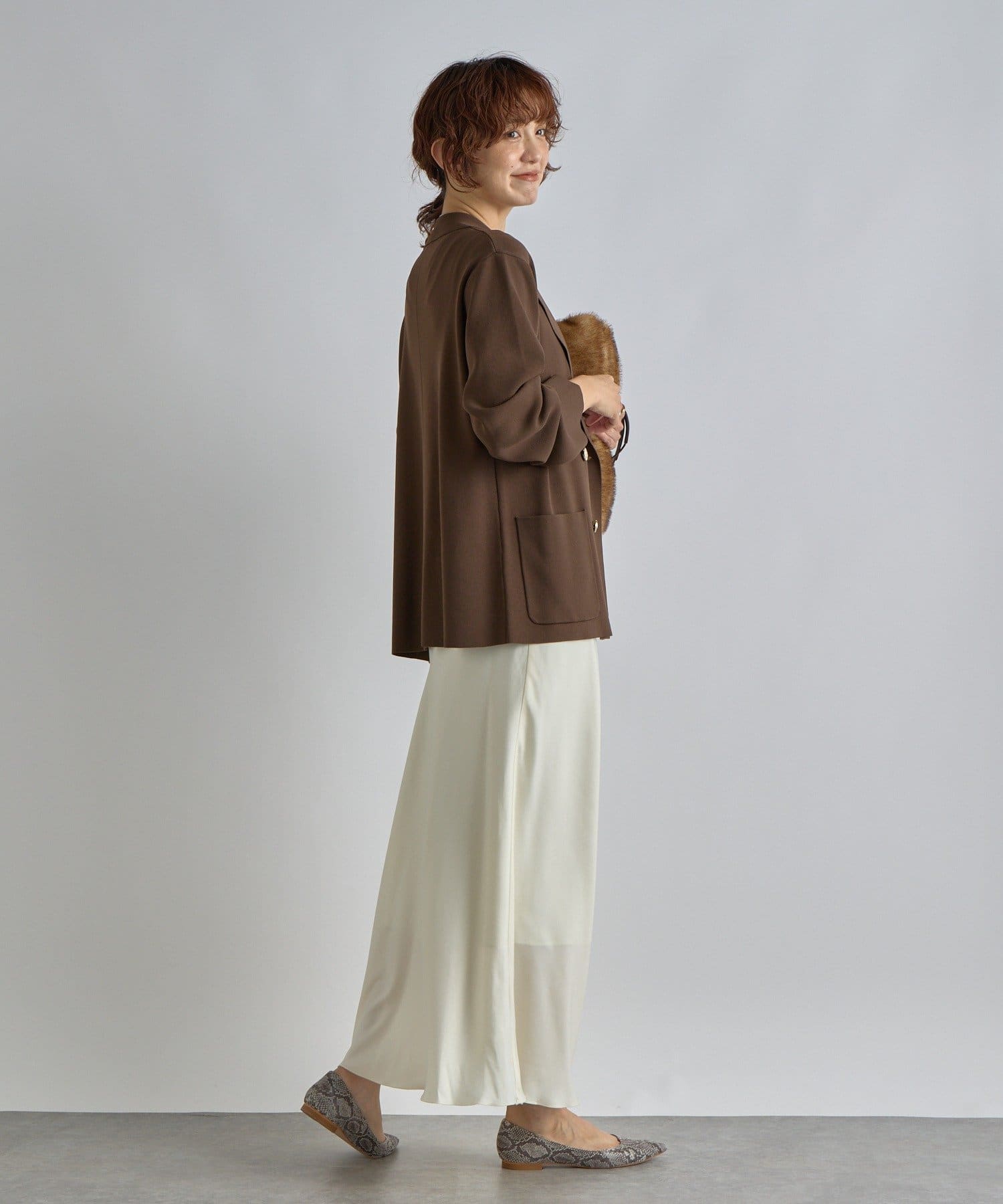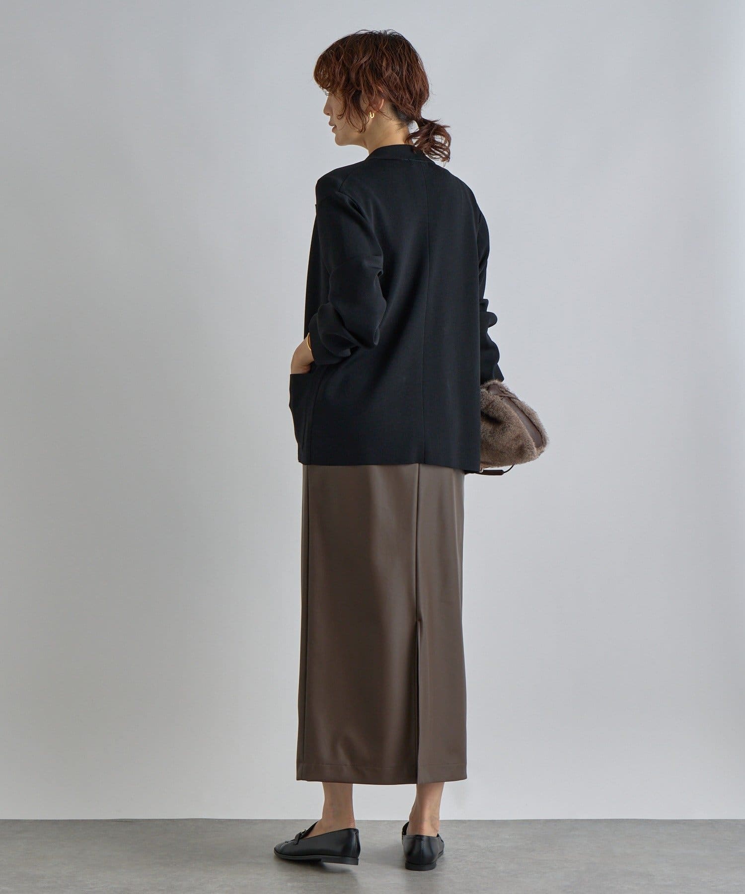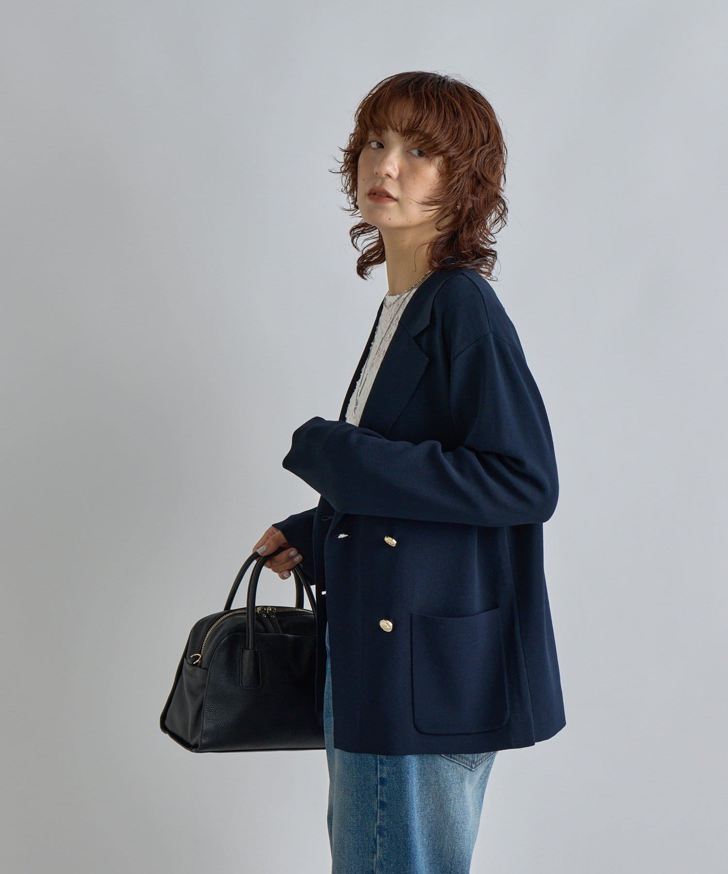 ニットならではの伸縮性と落ち感があり、布帛のジャケットよりも 気負わず着用できます。