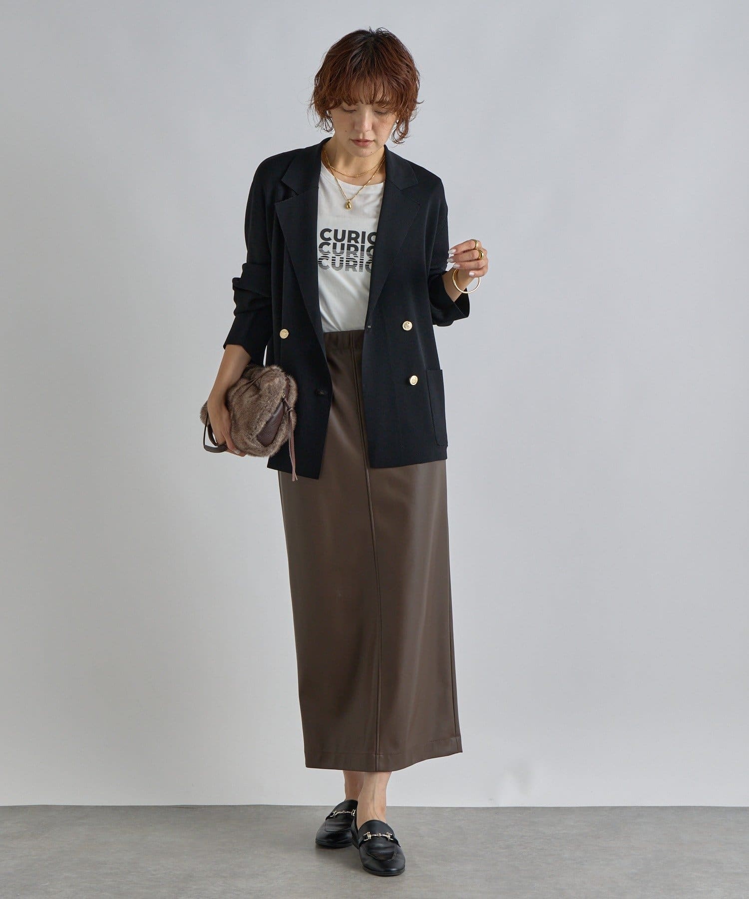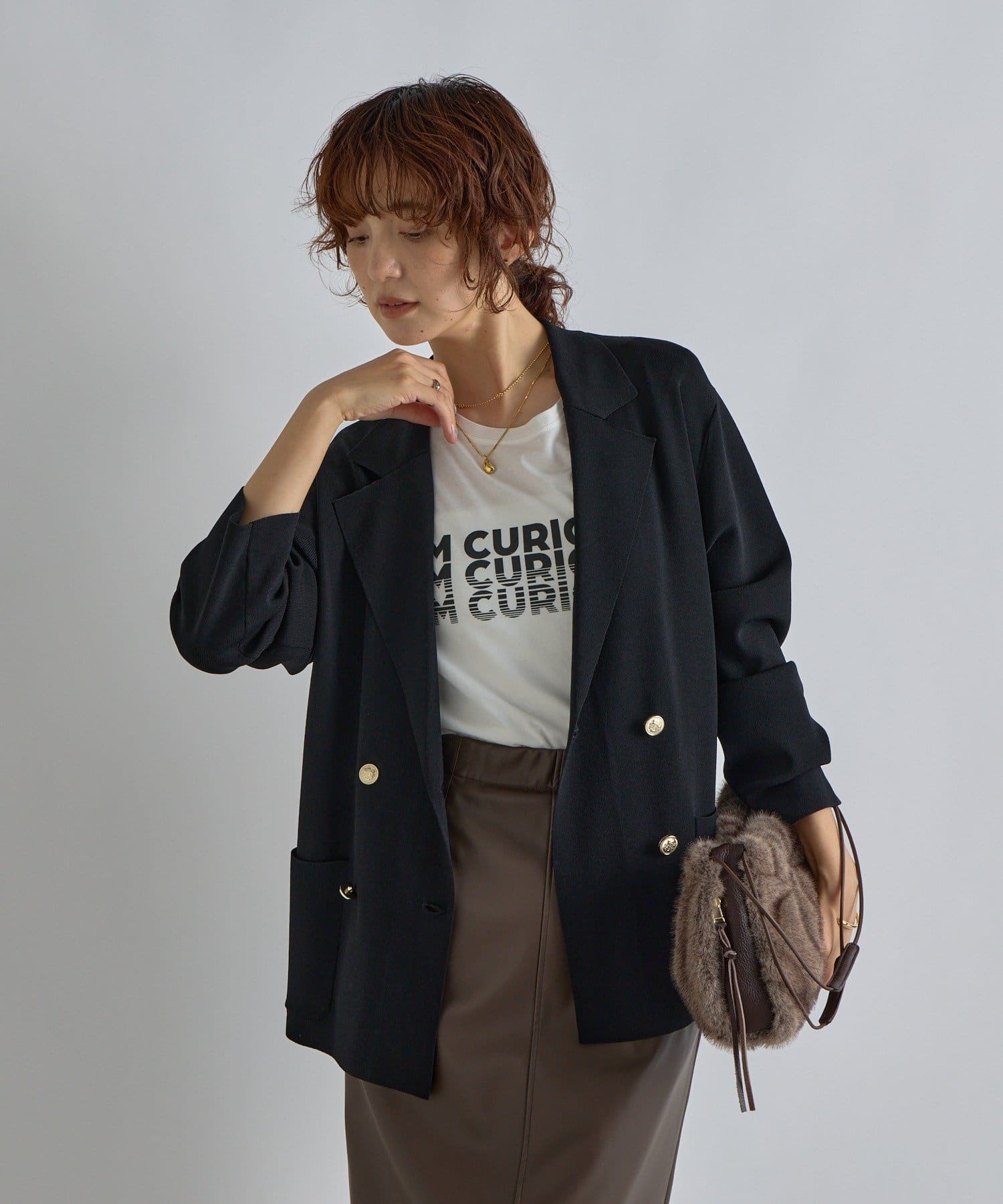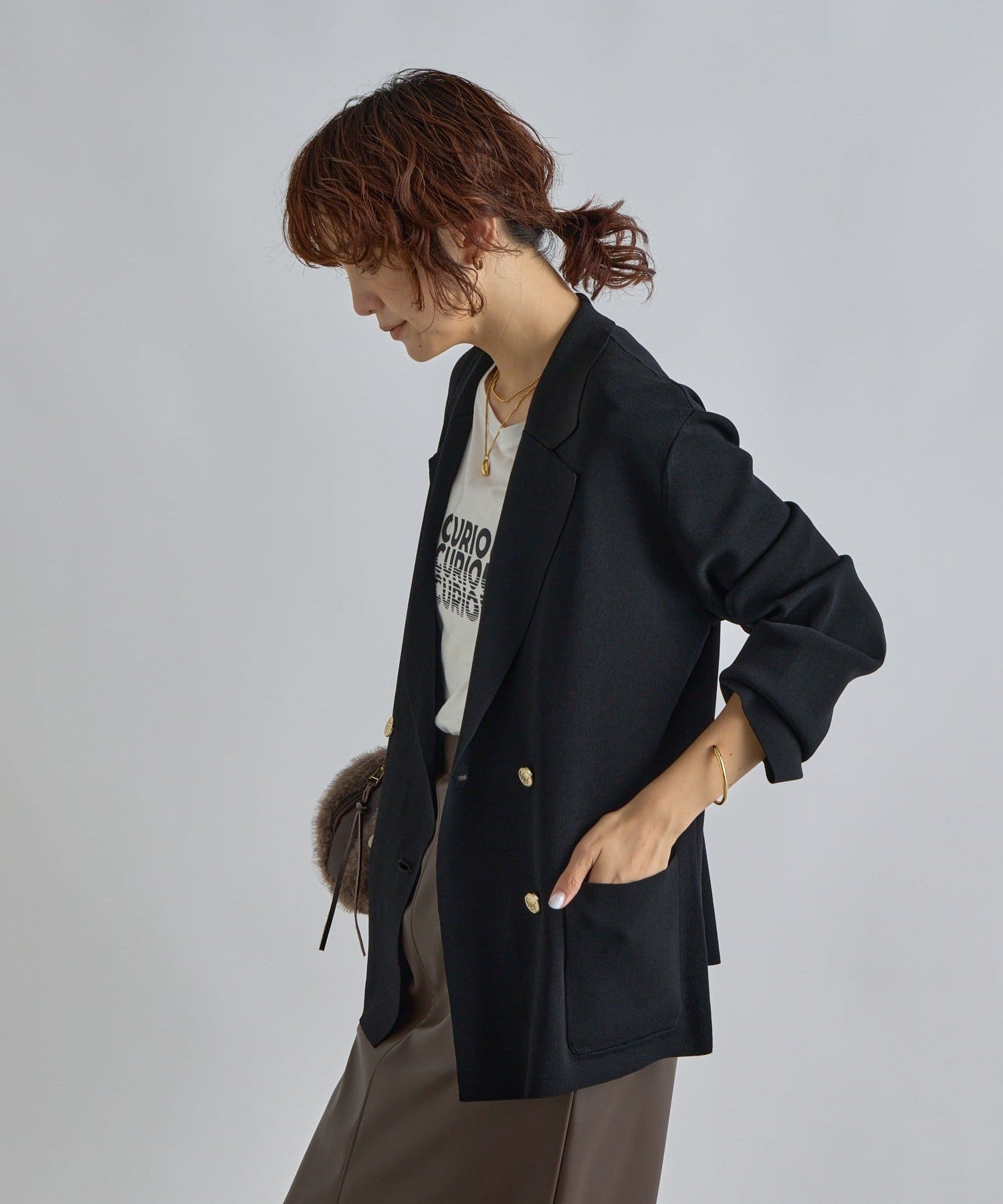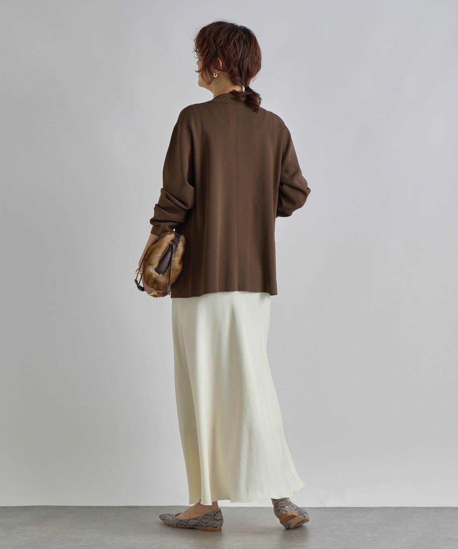 ニットならではの伸縮性と落ち感があり、布帛のジャケットよりも 気負わず着用できます。