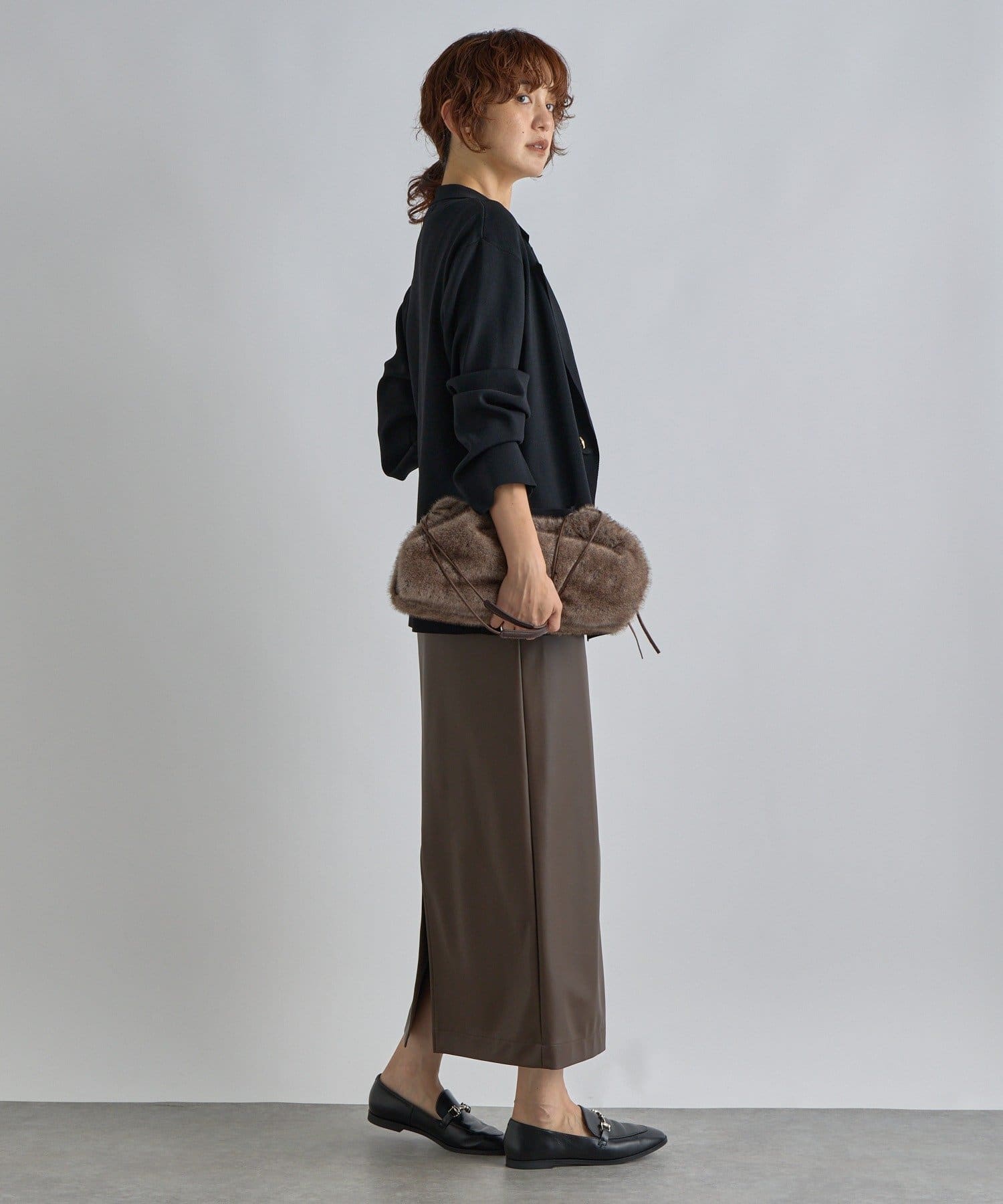 ライブで見て可愛いなと思い試着しました。ブラウンと悩みましたがブラウンが秋って感じの色だったので春先にも着れるように定番の黒を買いました。
