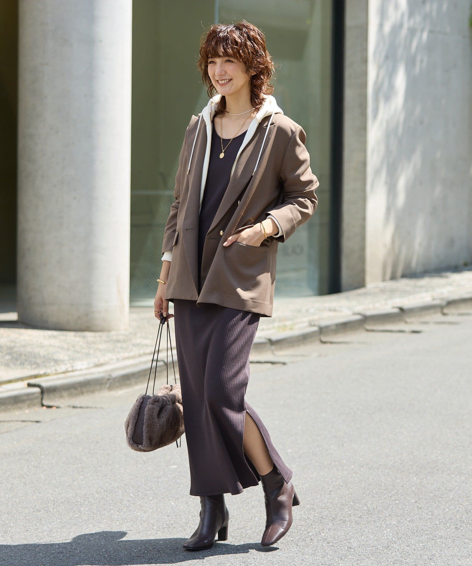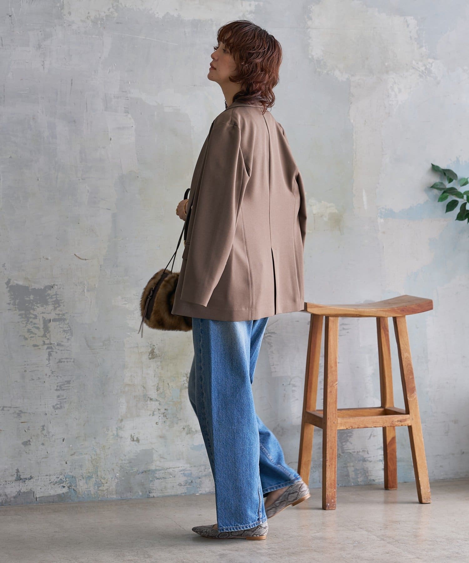 ・背裏のみの軽い仕立てでカーデの様に気負わず着用でき、且つサマになるリブドロワを代表するアイテム。