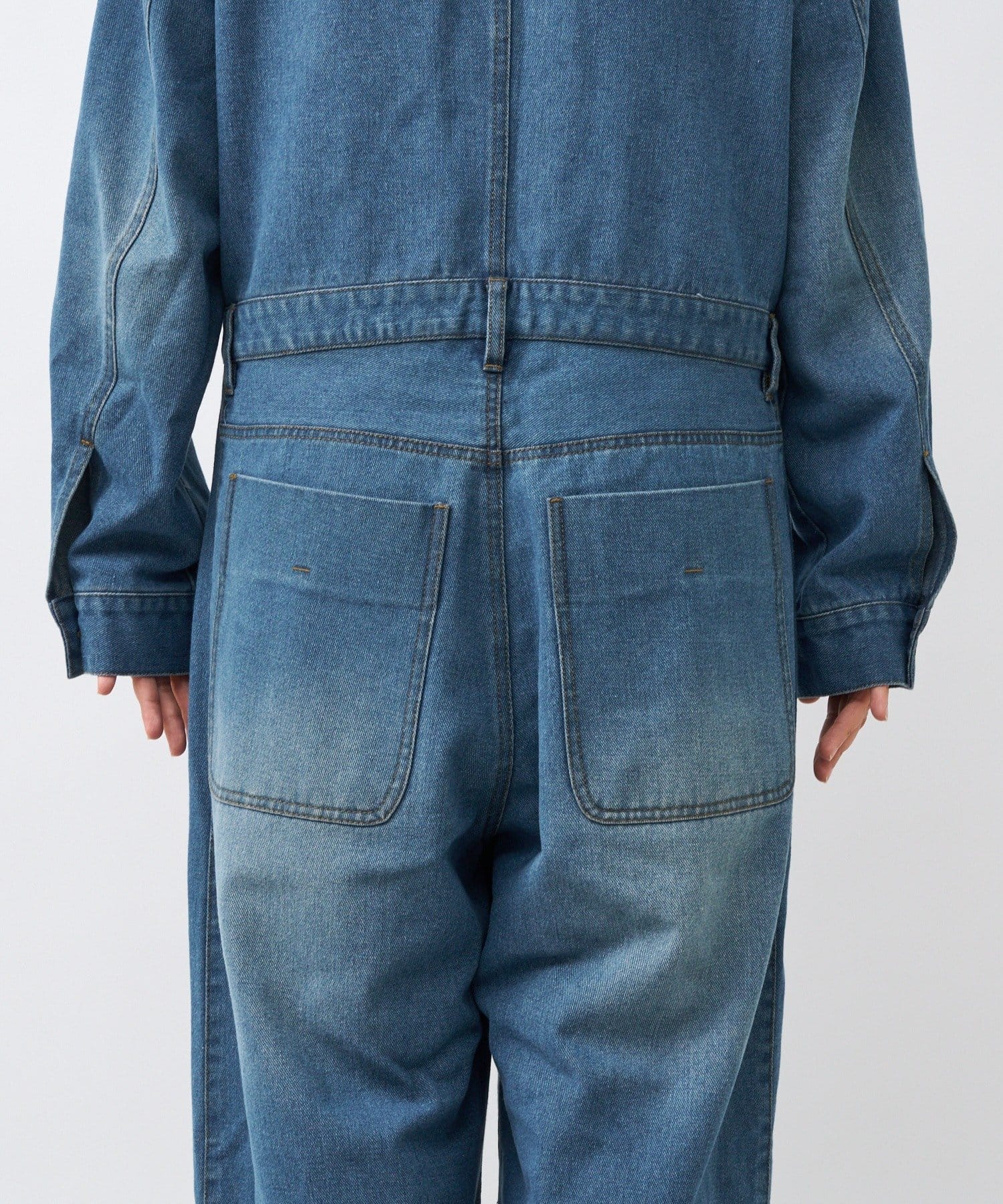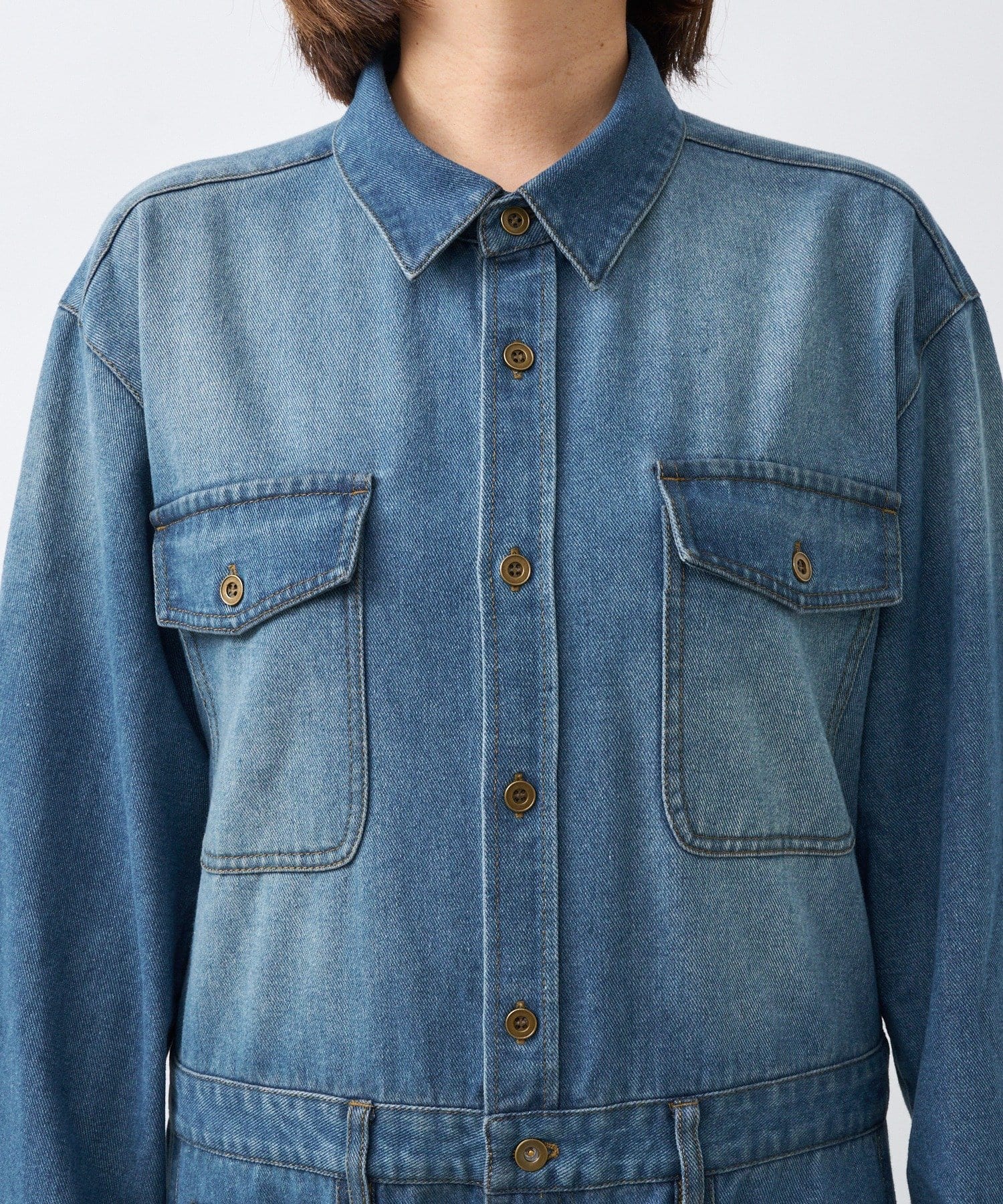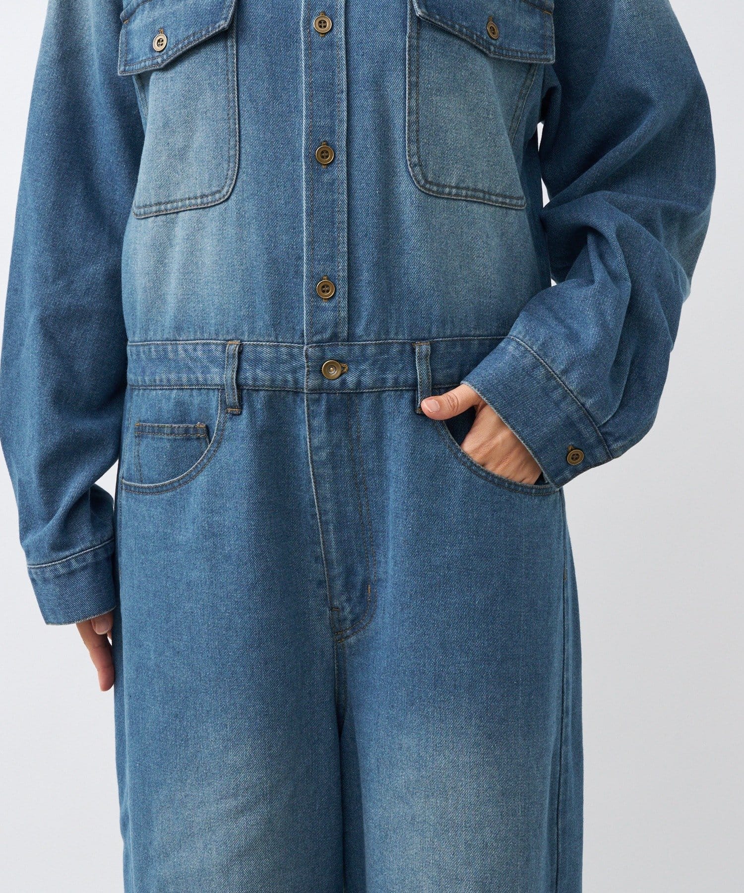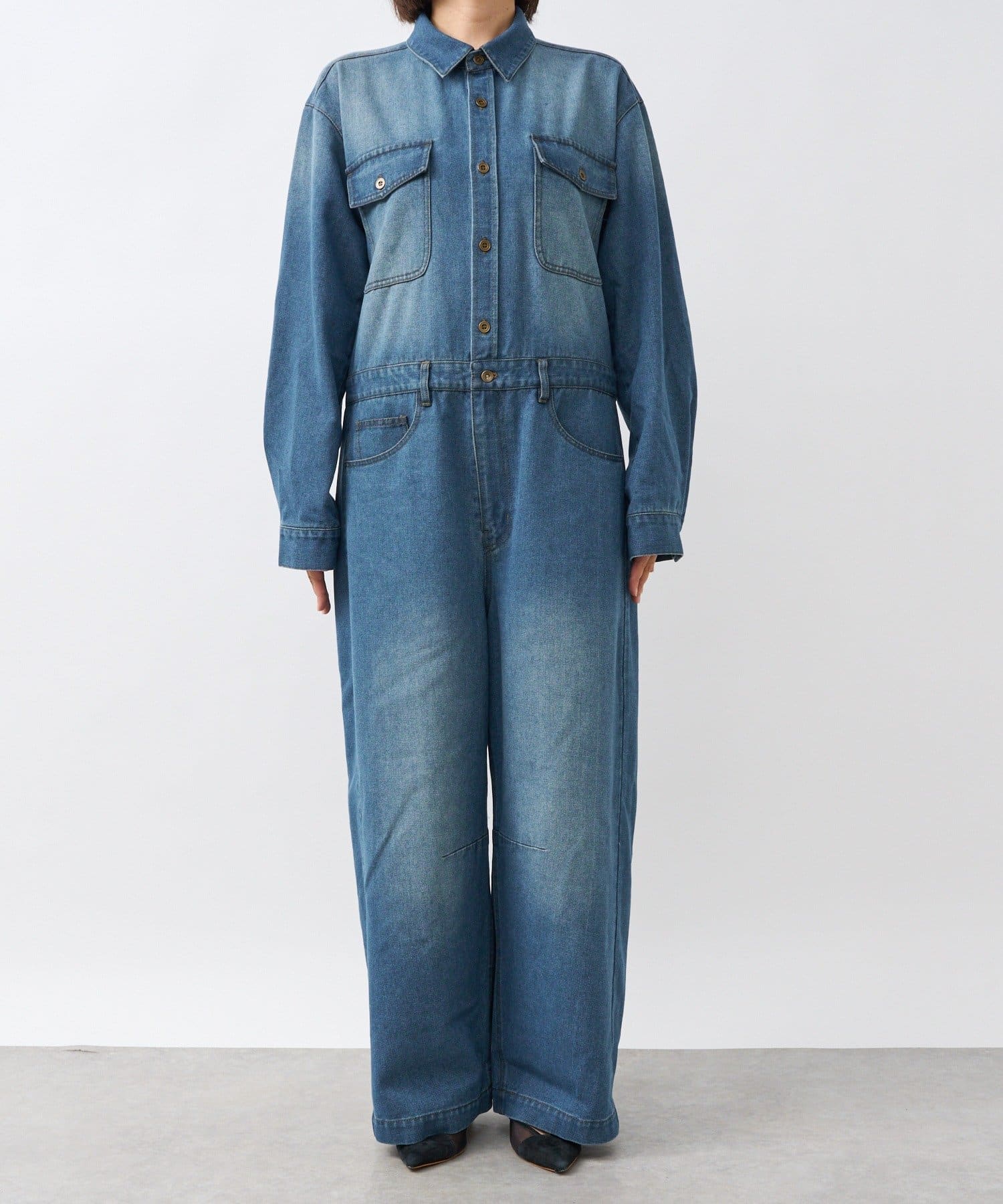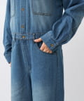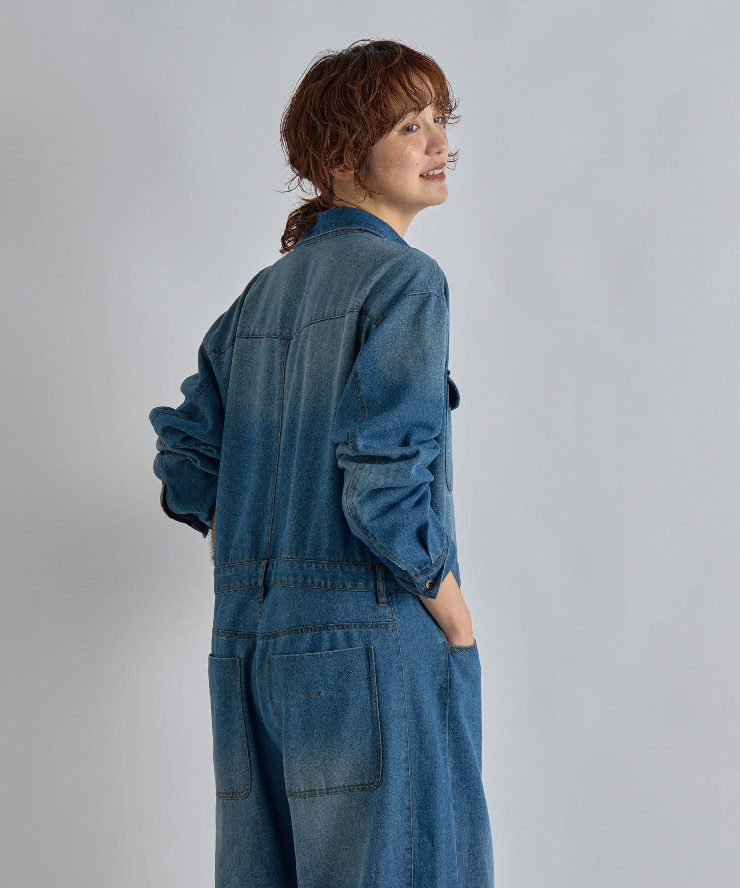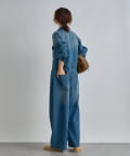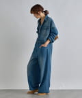 自然体でくだけたムードを漂わせたデニムジャンプスーツです。