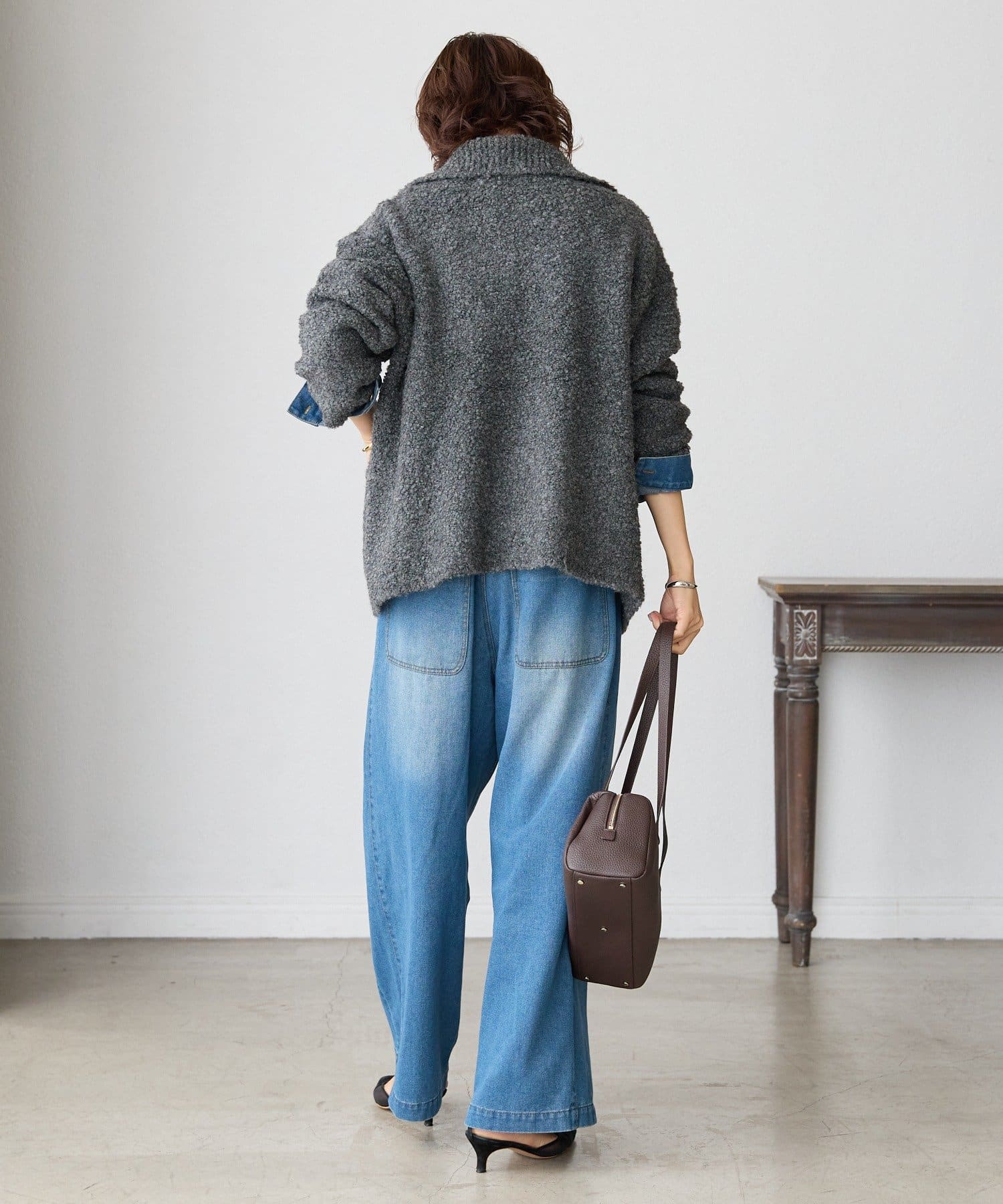 • ドロップショルダーの抜け感とパンツのルーズなシルエットが特徴