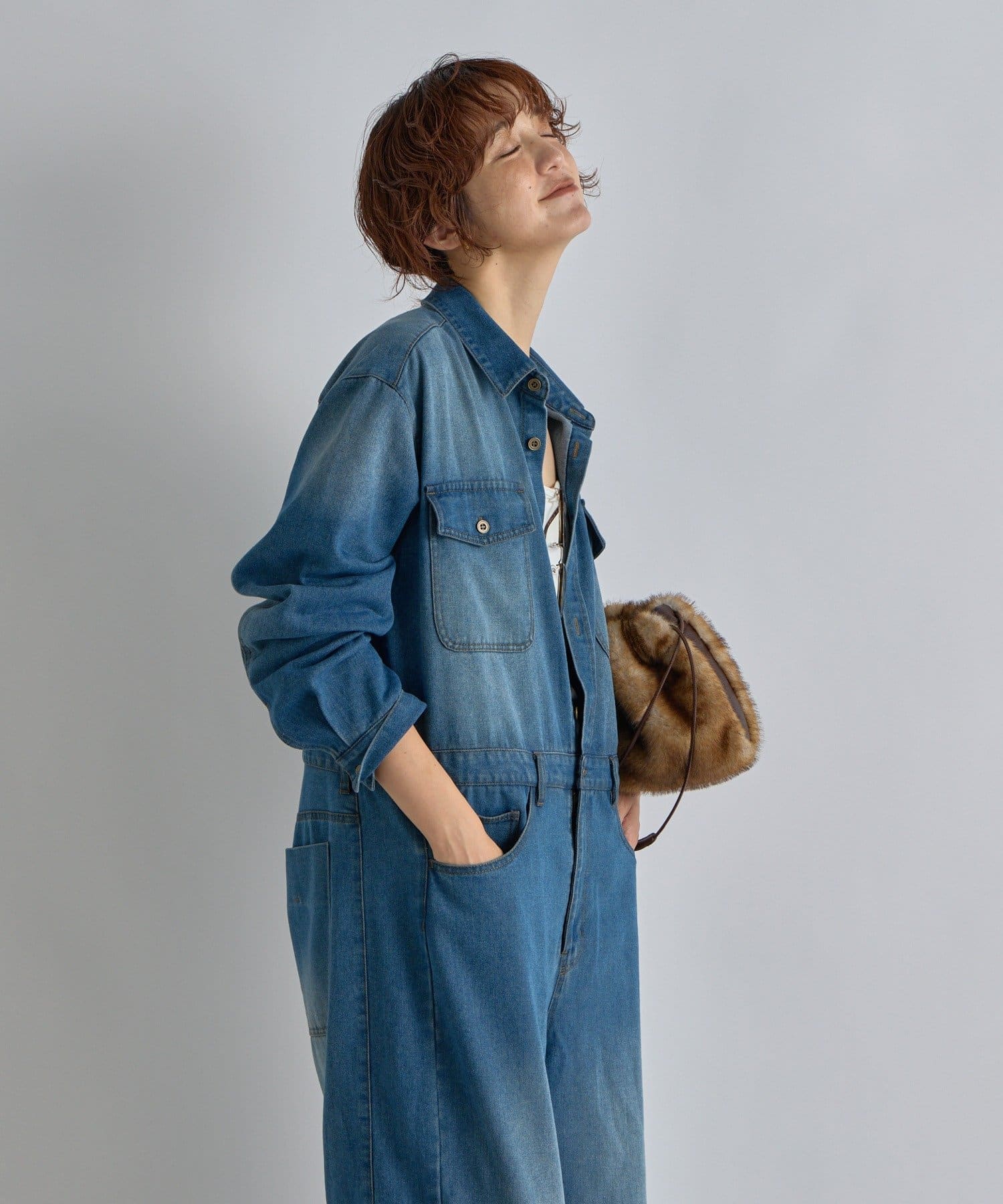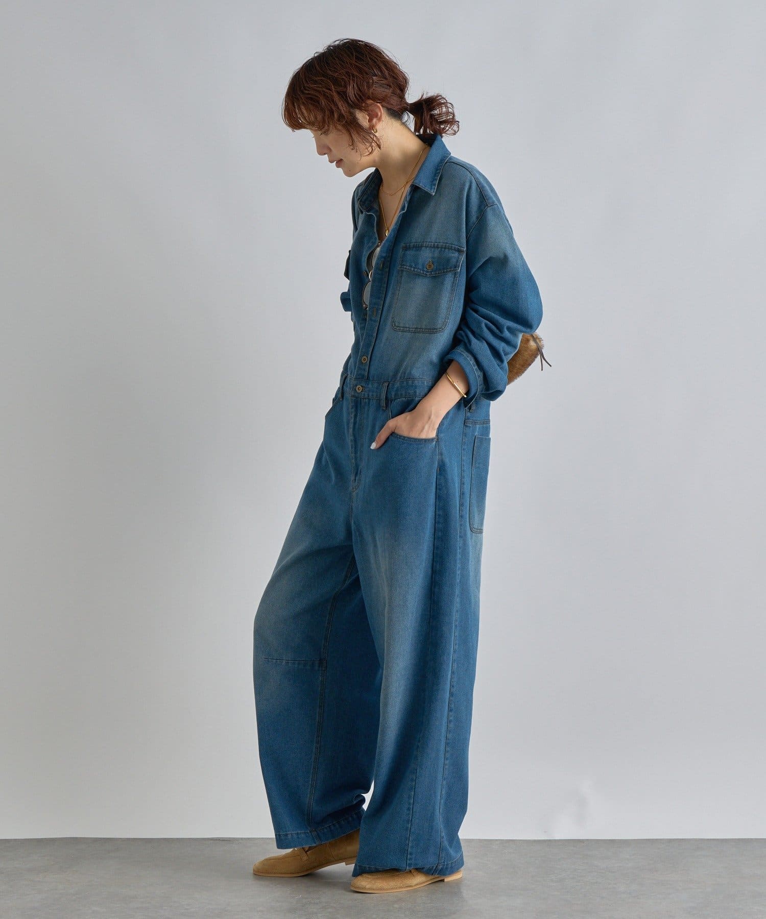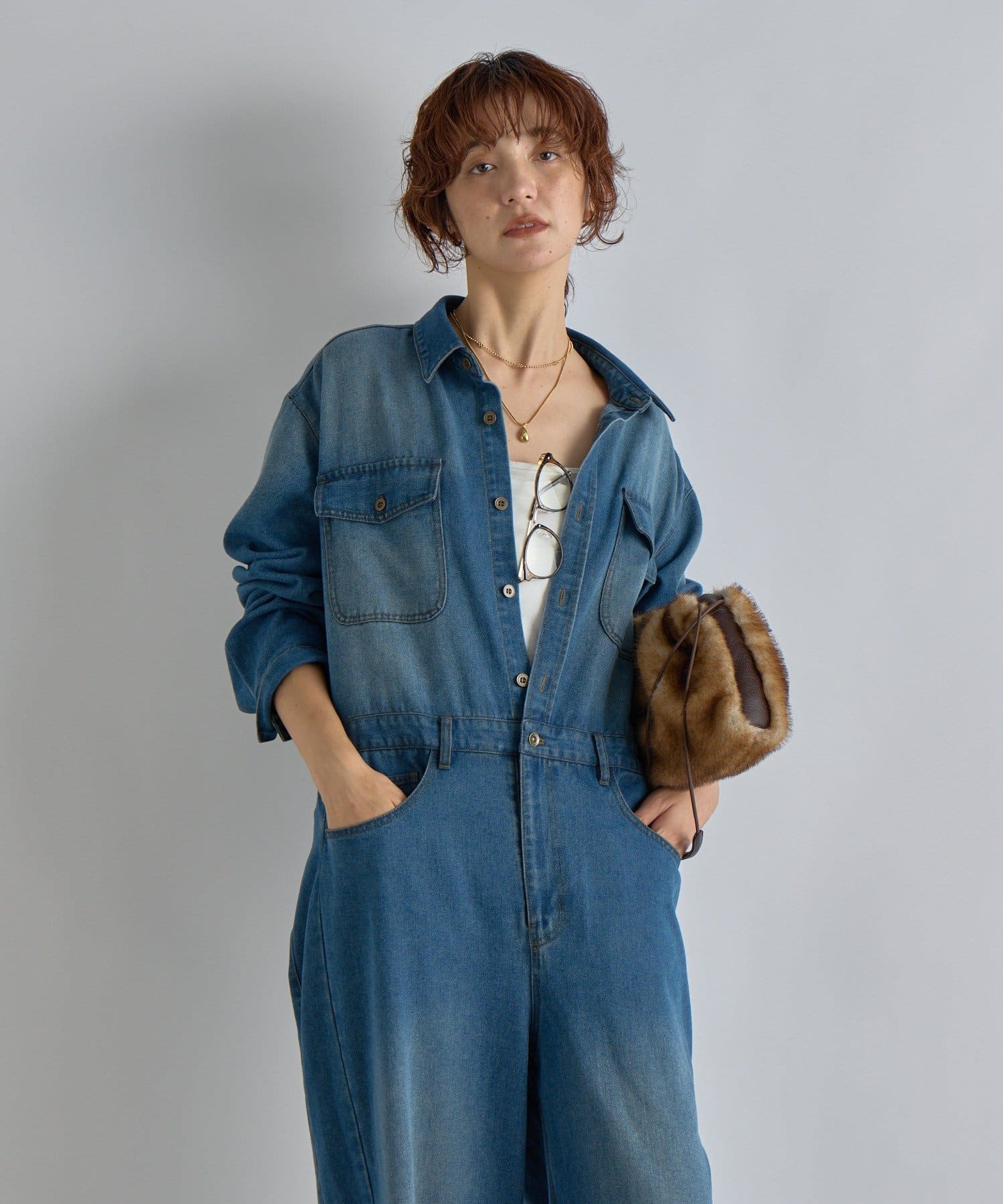 • 自然体でくだけたムードを漂わせたデニムジャンプスーツ