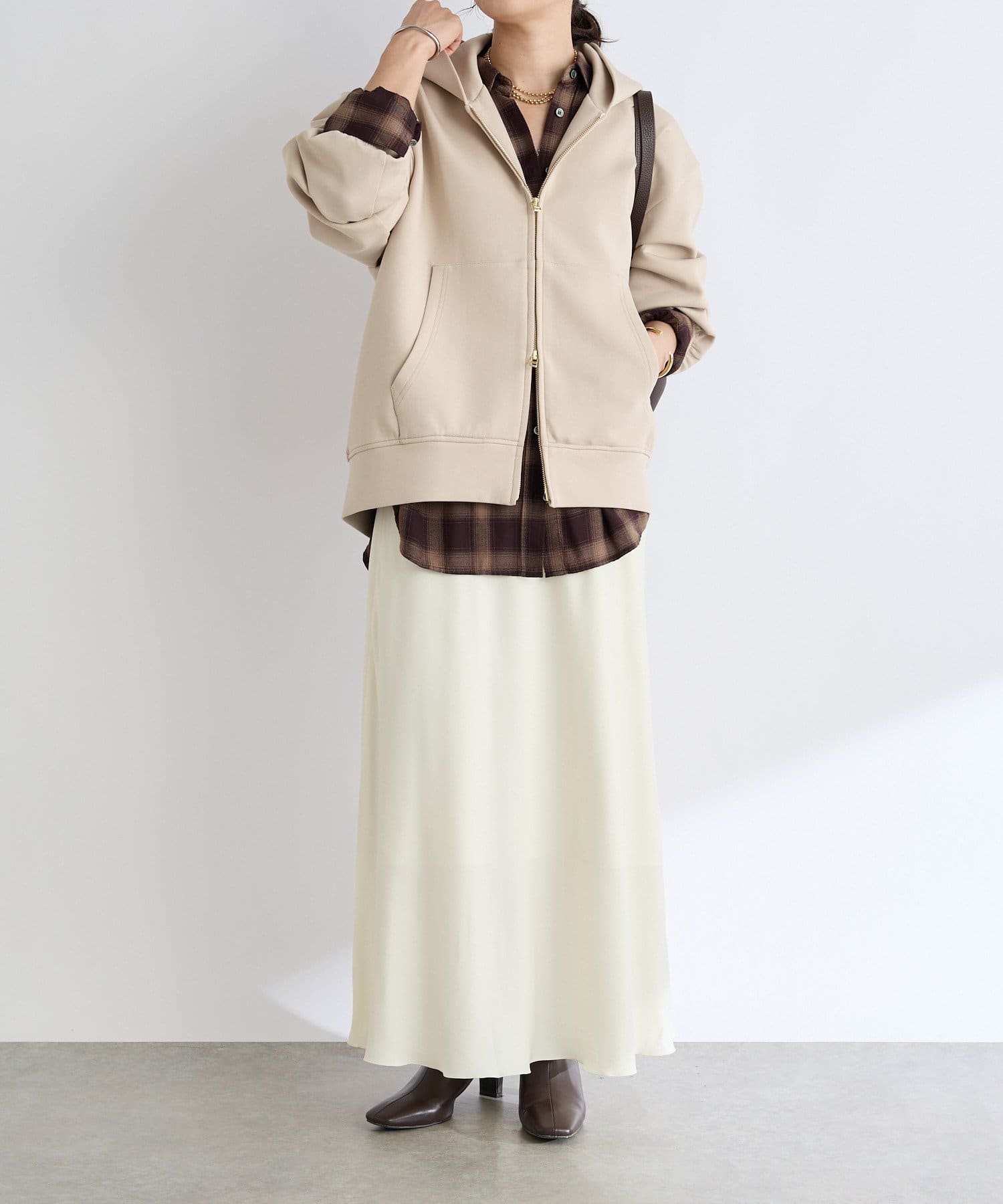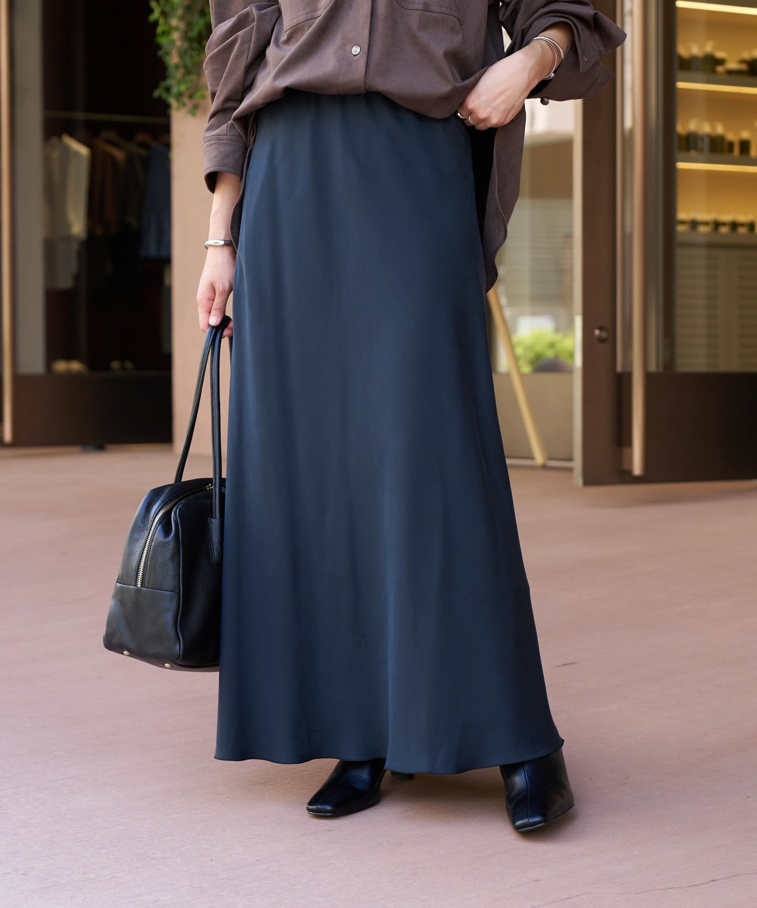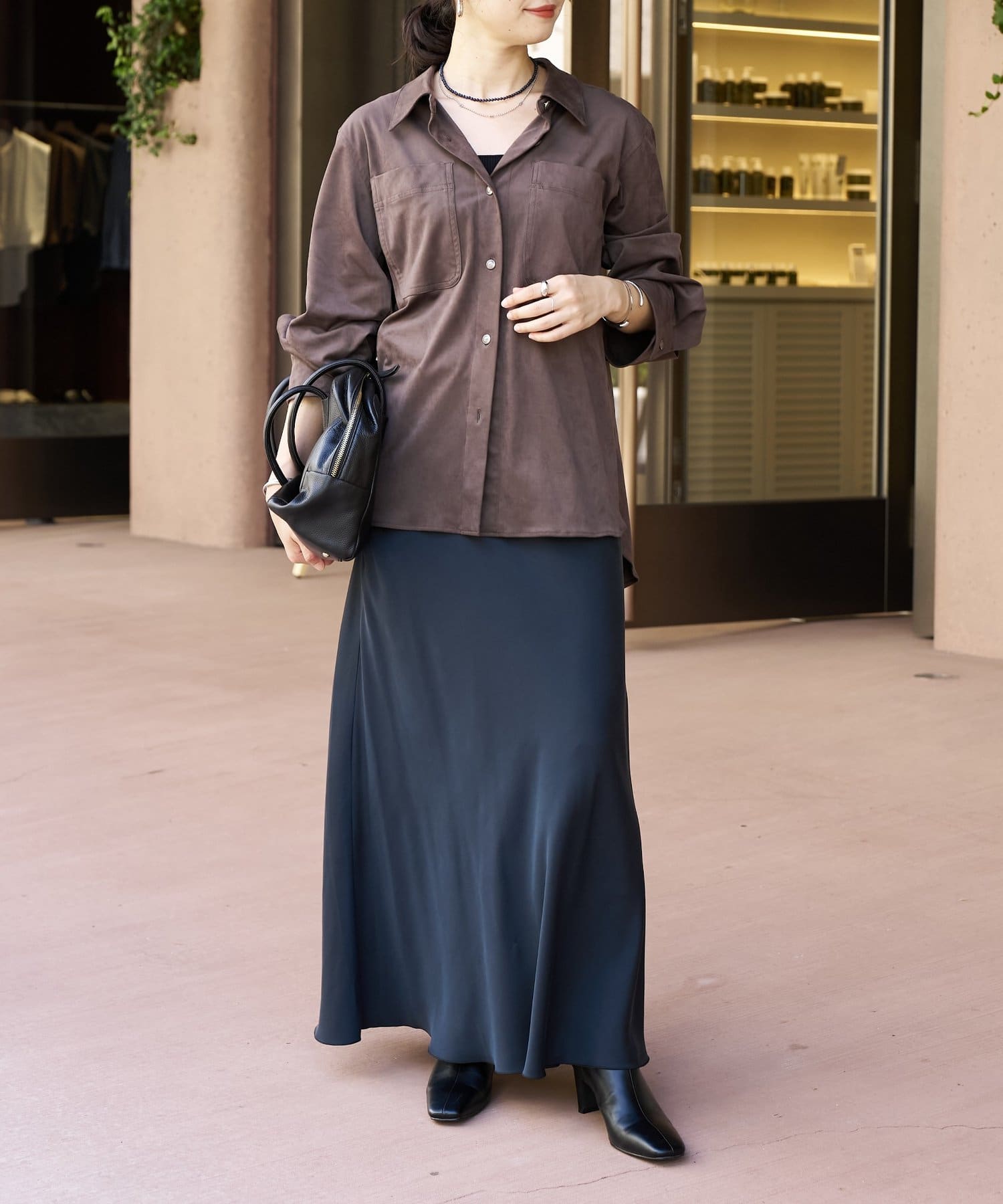落ち感のある素材が上品にスタイルアップ