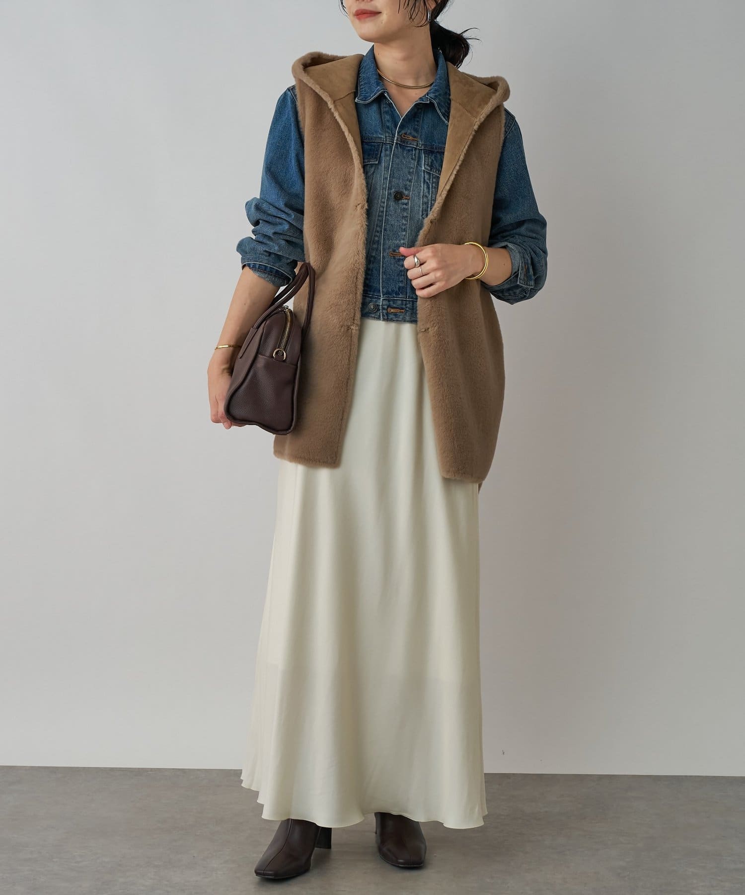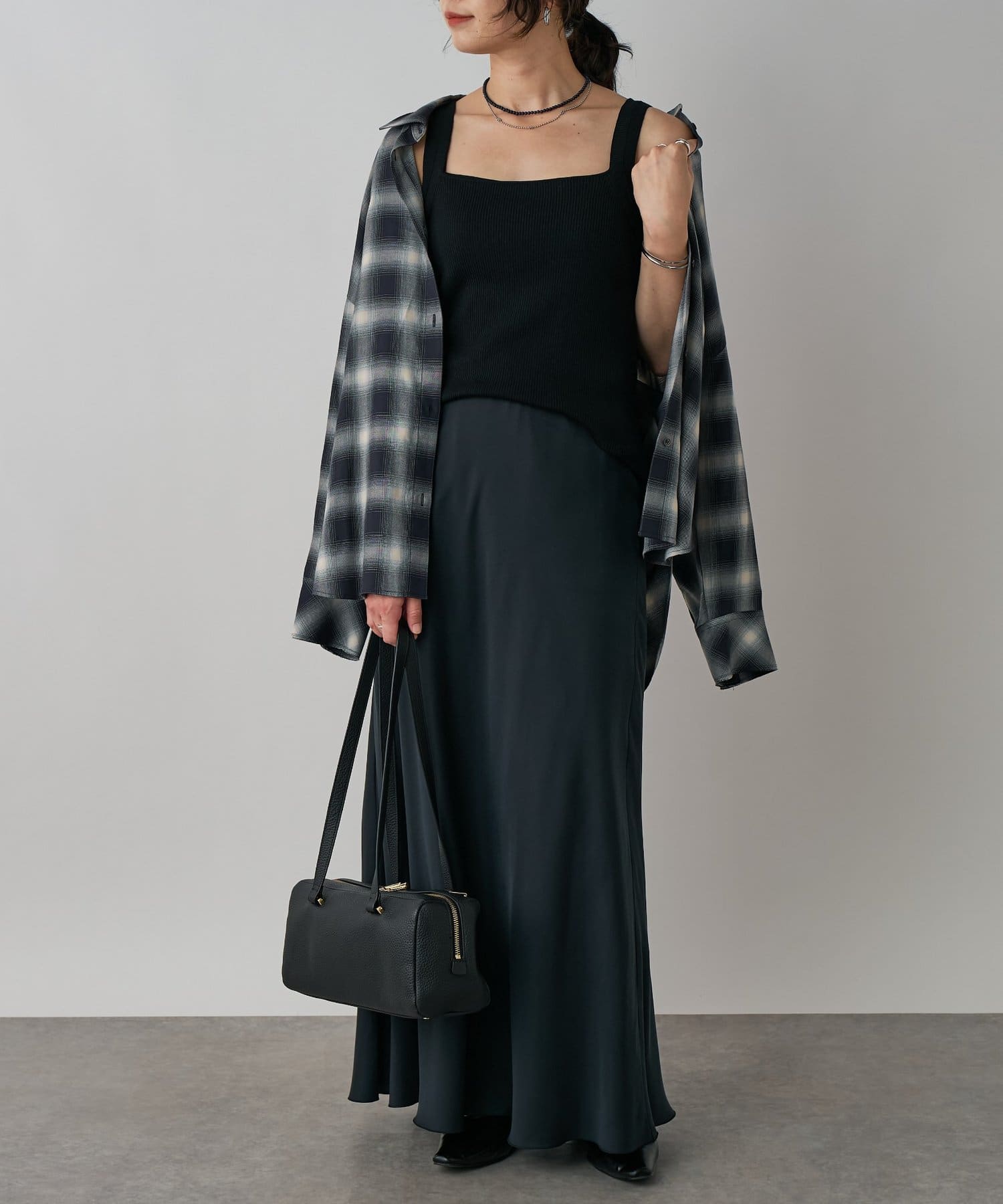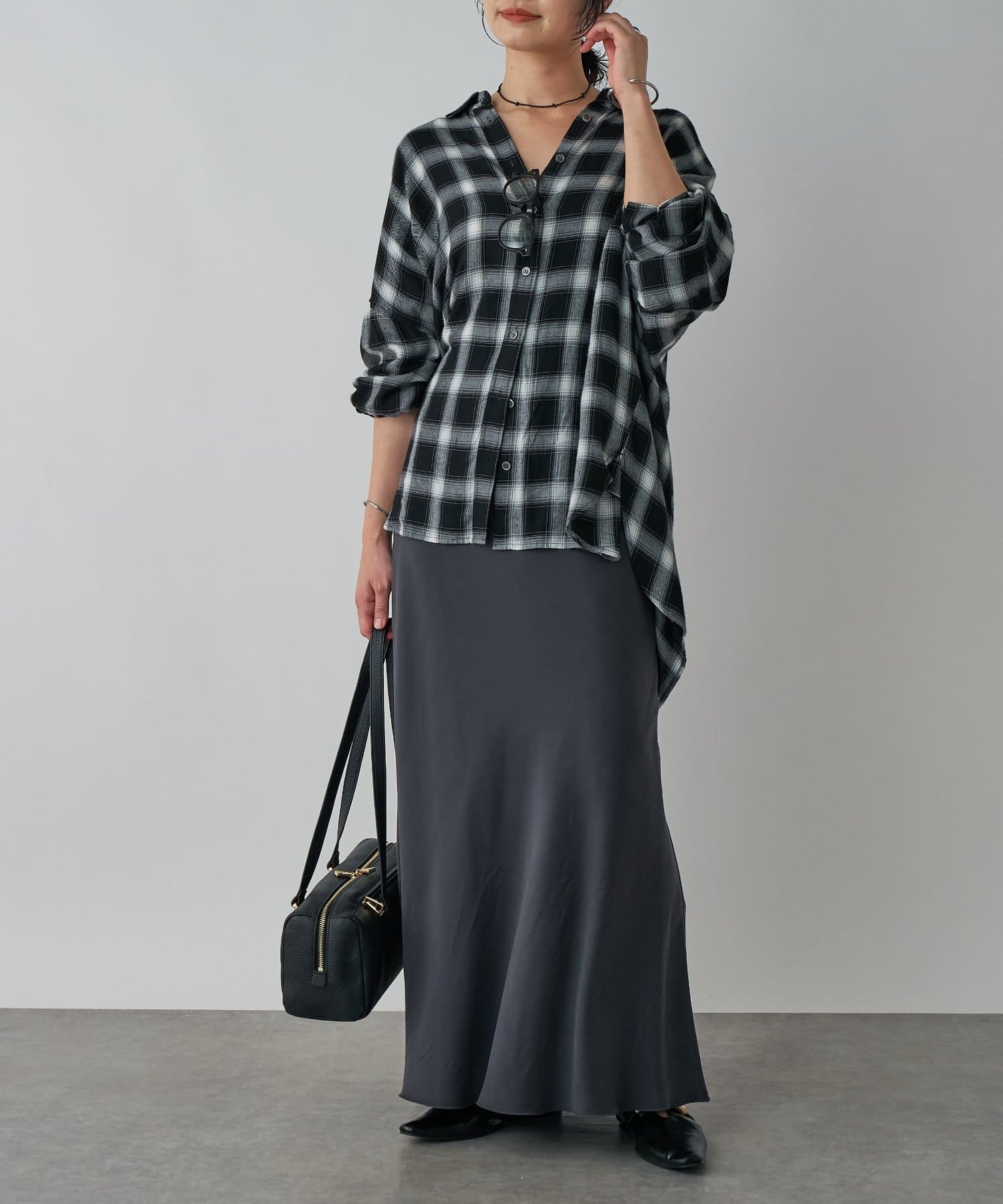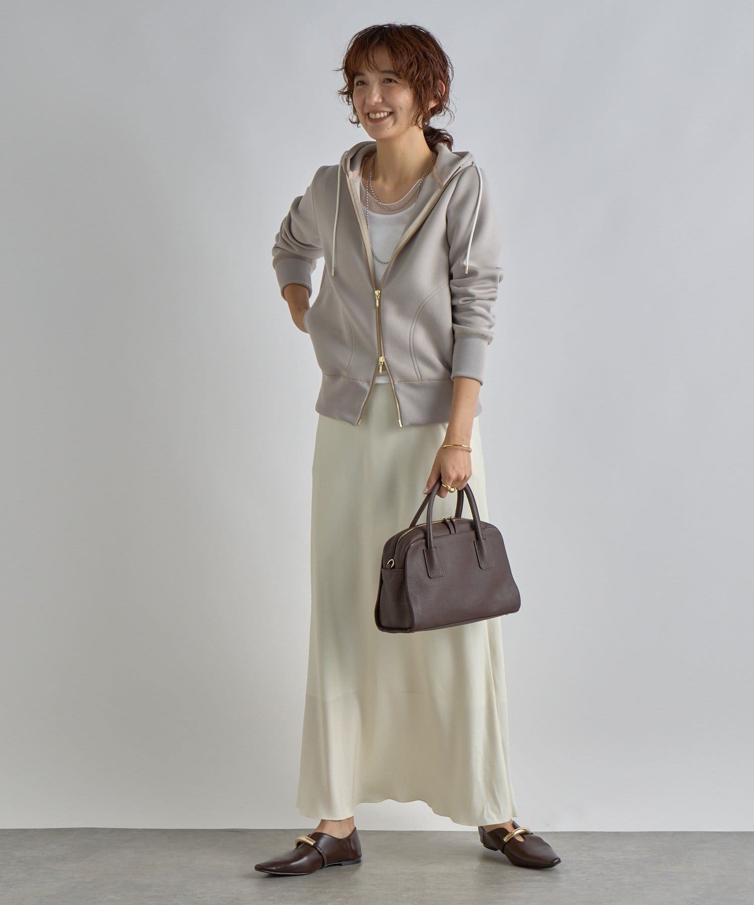 落ち感のある素材が上品にスタイルアップ