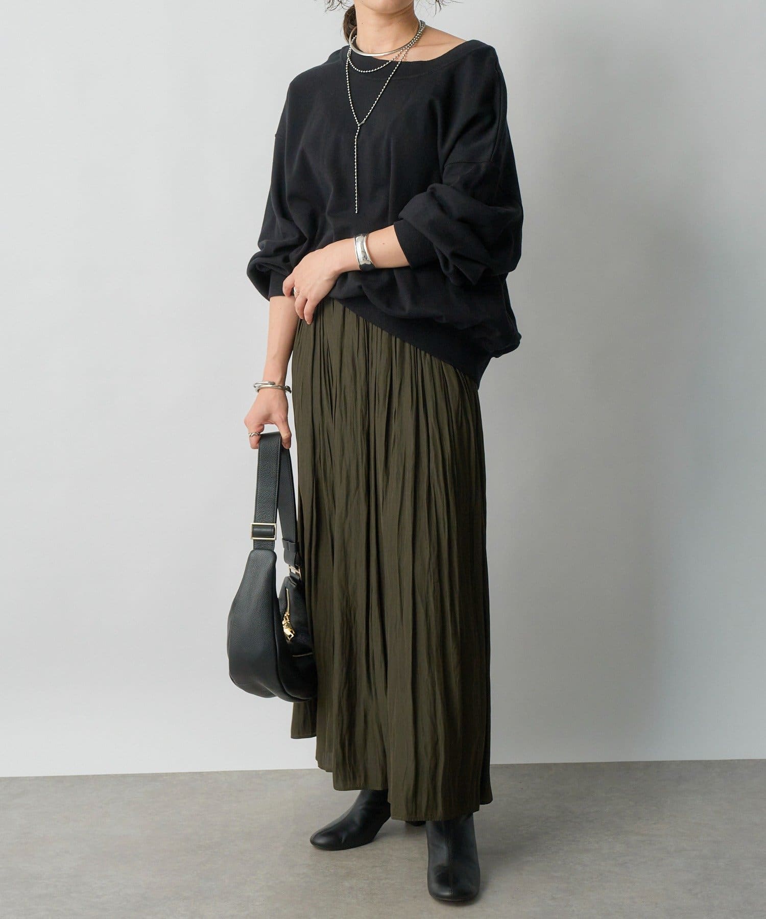 ・落ち感のある素材のため、腰回りが張ってみえないシルエット
