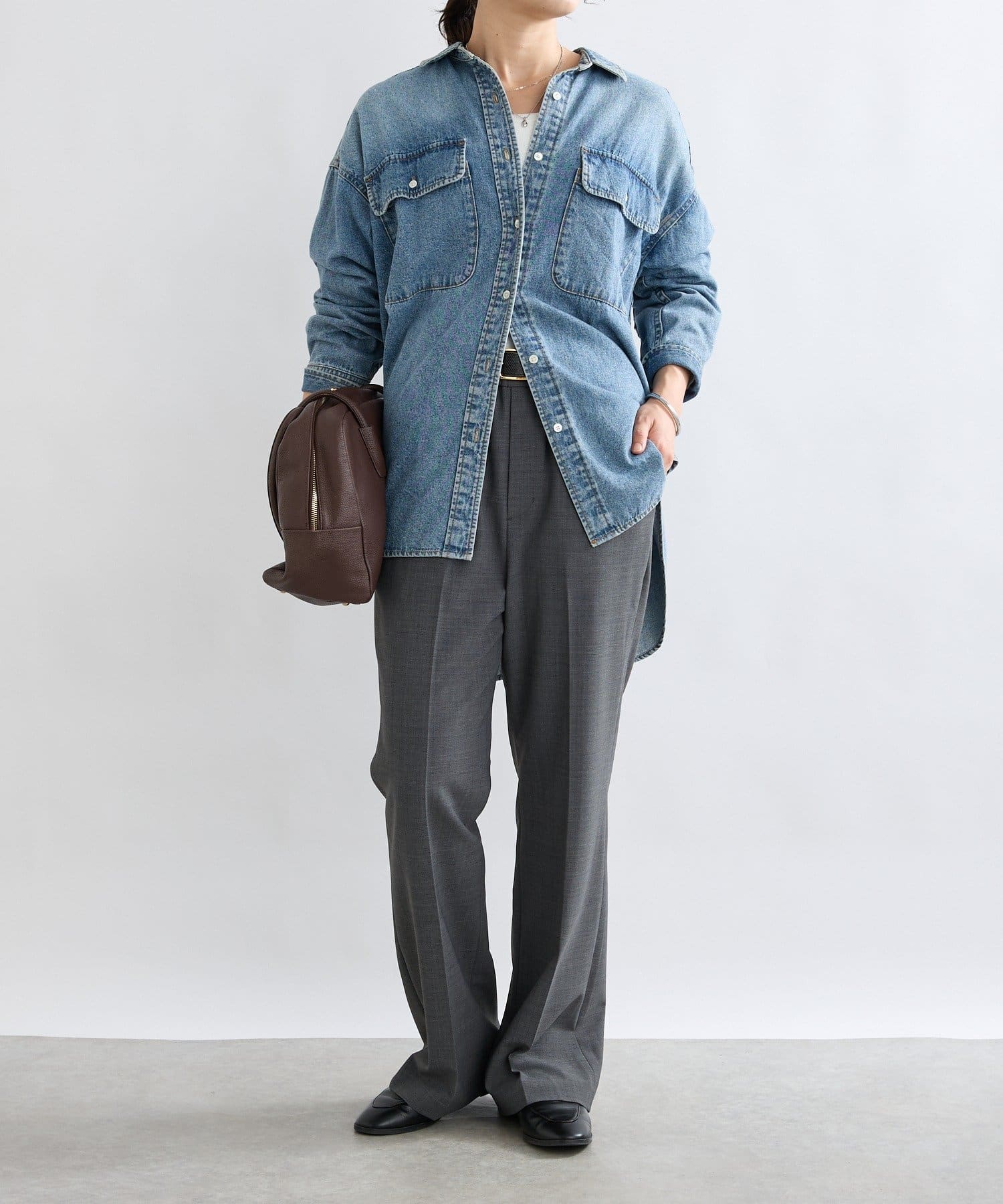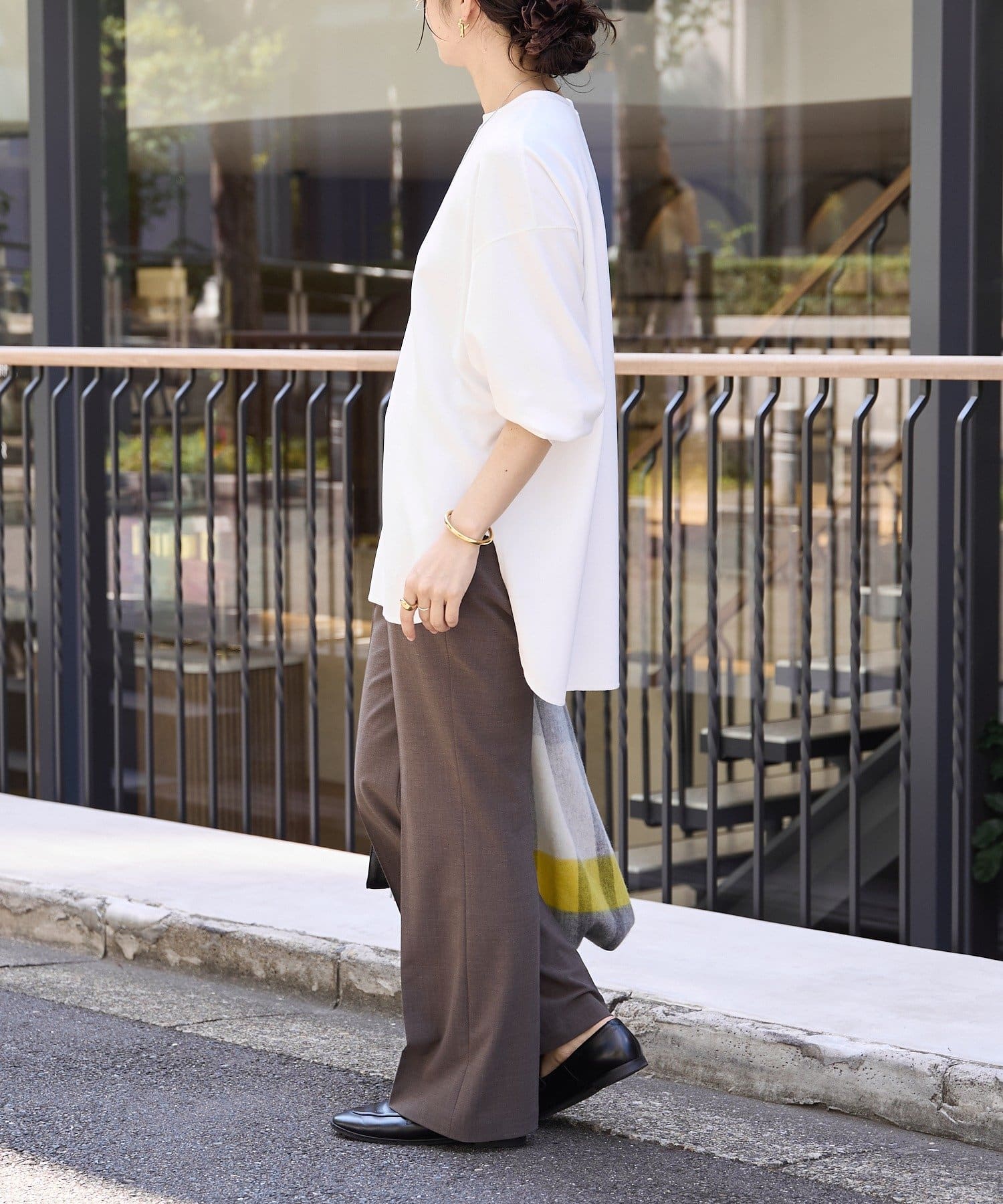 ・オーバーサイズのトップスと合わせて鮮度のあるバランスで着こなしていただくのがおすすめ