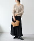ツルっとした素材のバイアスフレアスカートや、イージーパンツなど、
