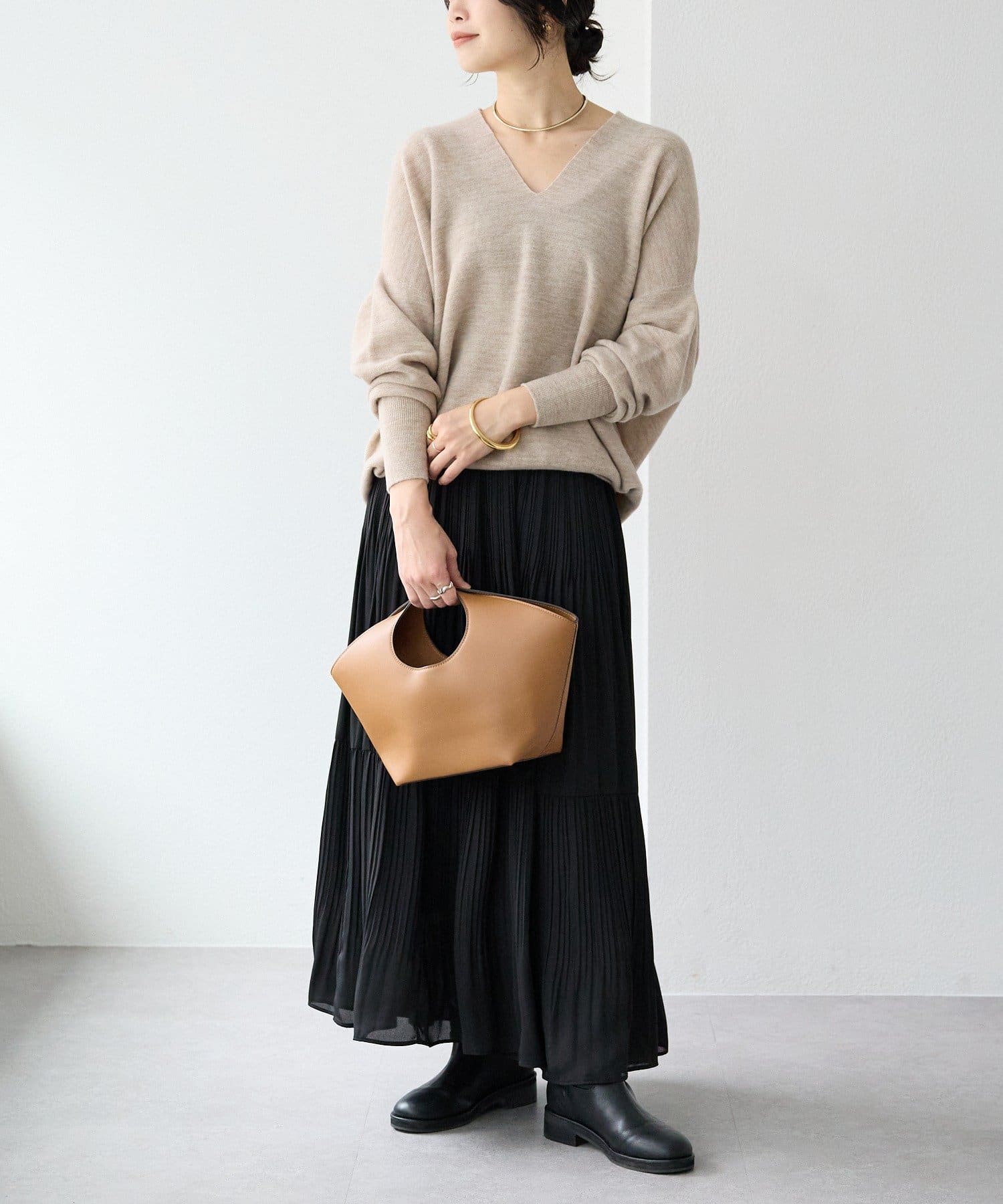リラクシー且つキレイ目見えするボトムと相性がよく、今っぽく着れるベーシックさが魅力の一枚です。