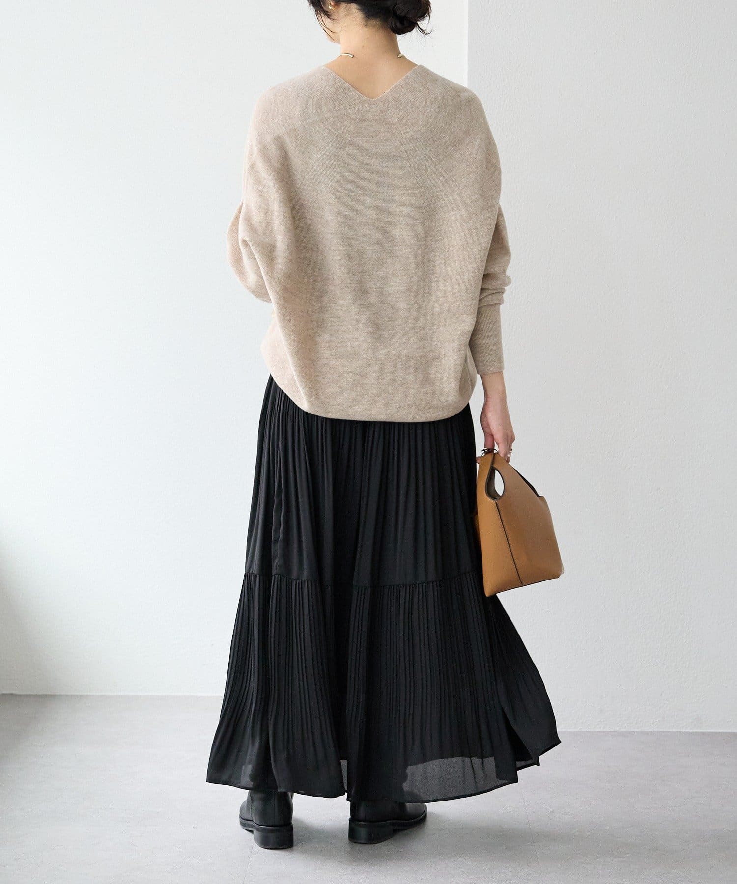 ⇒薄手で柔らかな質感のニットです。ゆったり感もあるシルエットで着やすく、また華奢見えするニットとご好評頂いております。