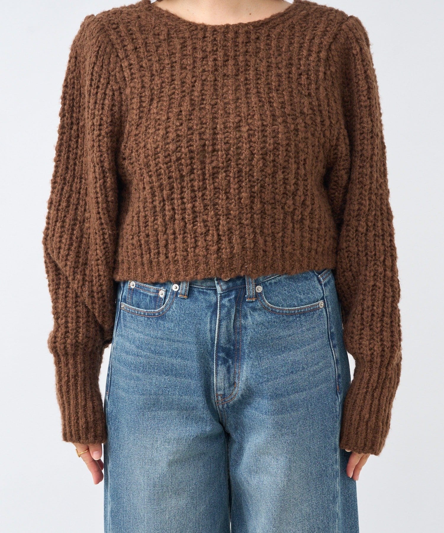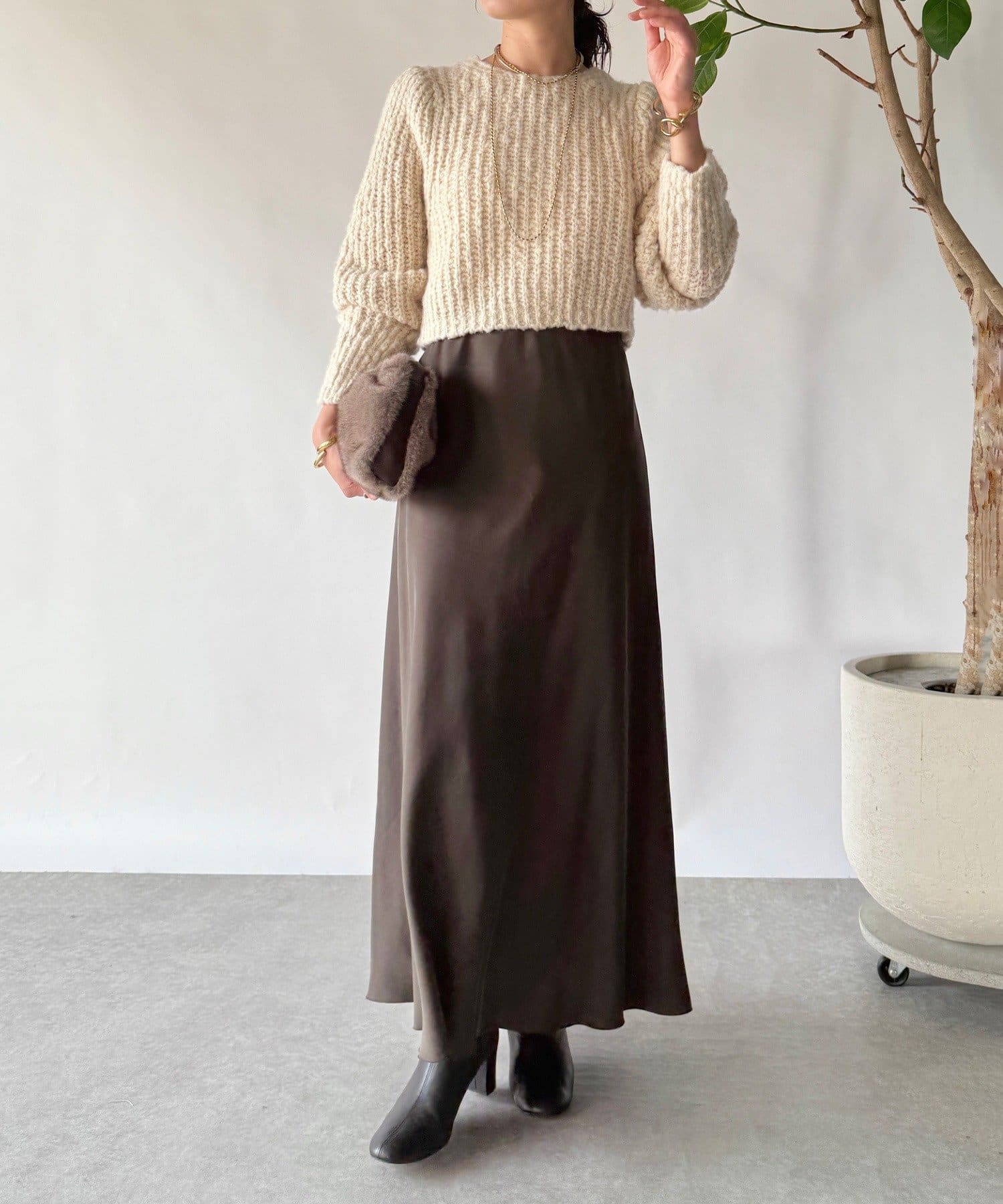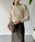 ・ボリューミーなスリーブデザインは今季のトレンド。長めのリブ付きでたくし上げて着るのも可愛い。