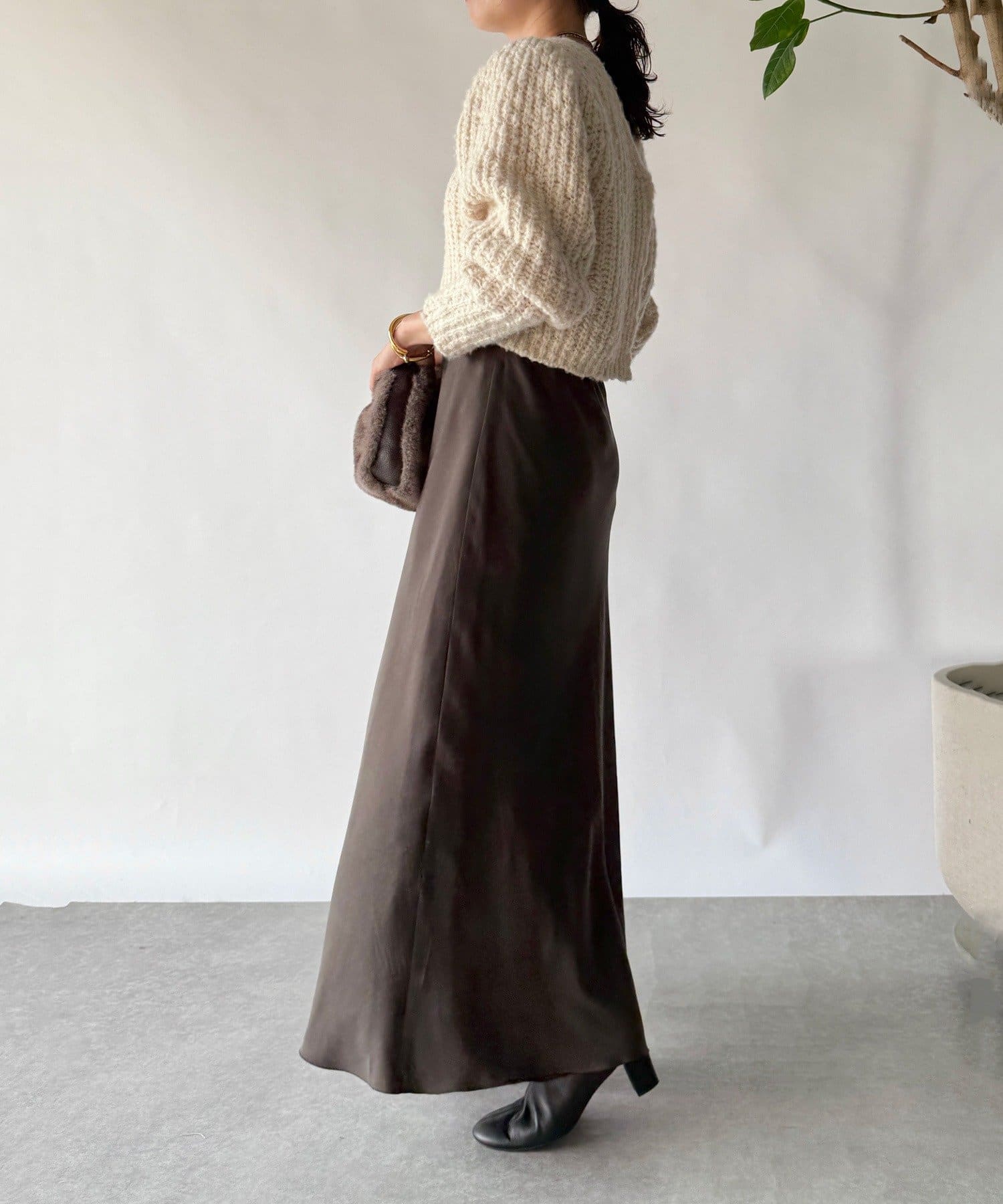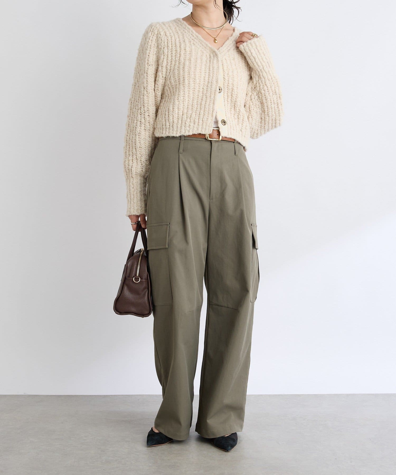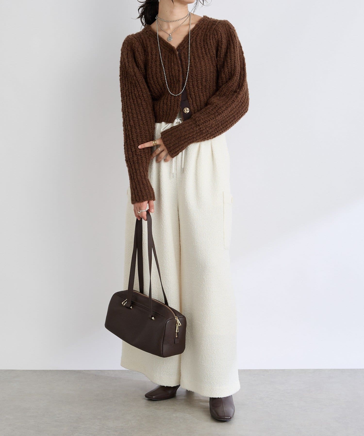 ワイドパンツ・バギーデニム・マキシスカートなどボリューミーなボトムとメリハリをつけたコーデがおすすめ。