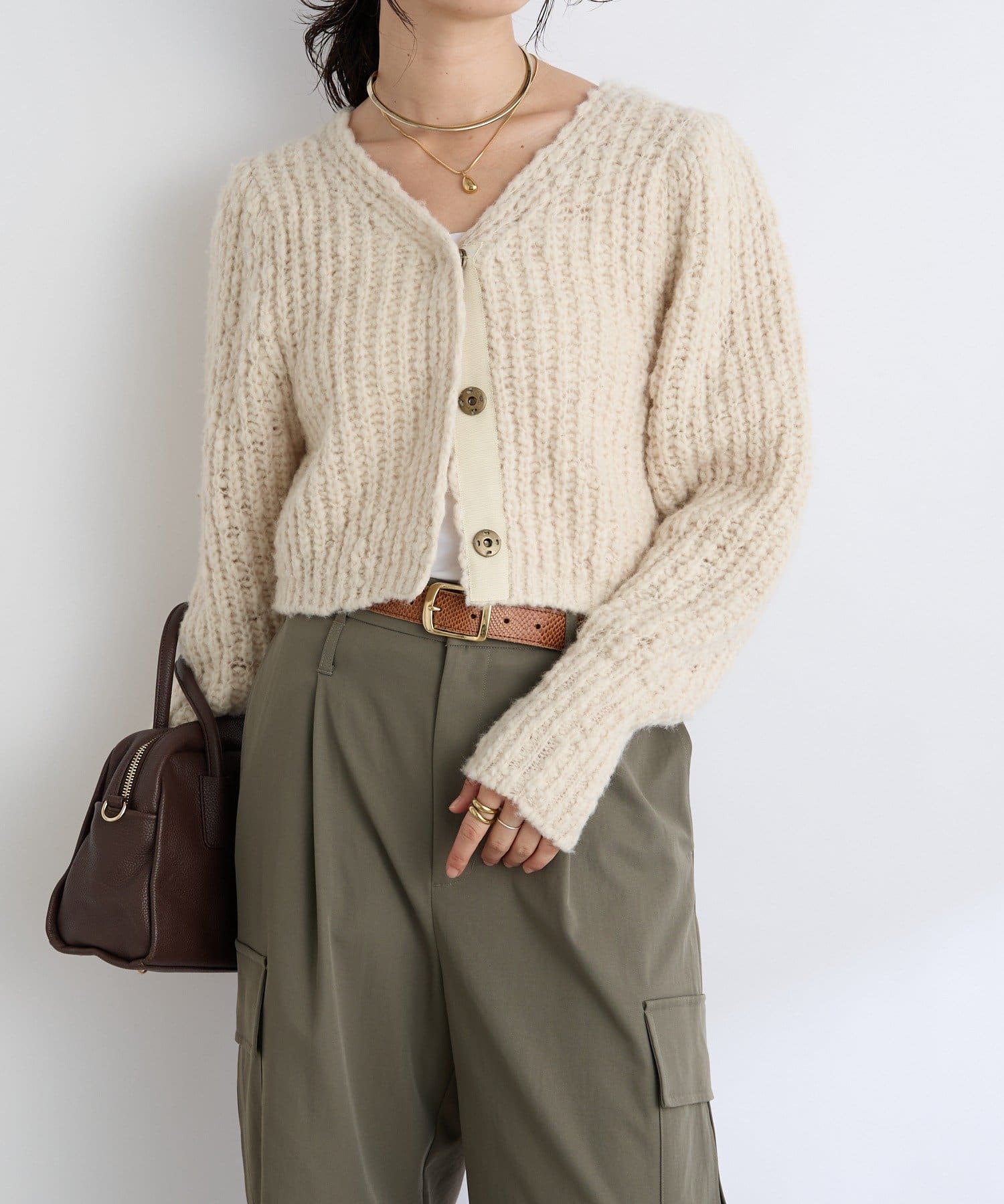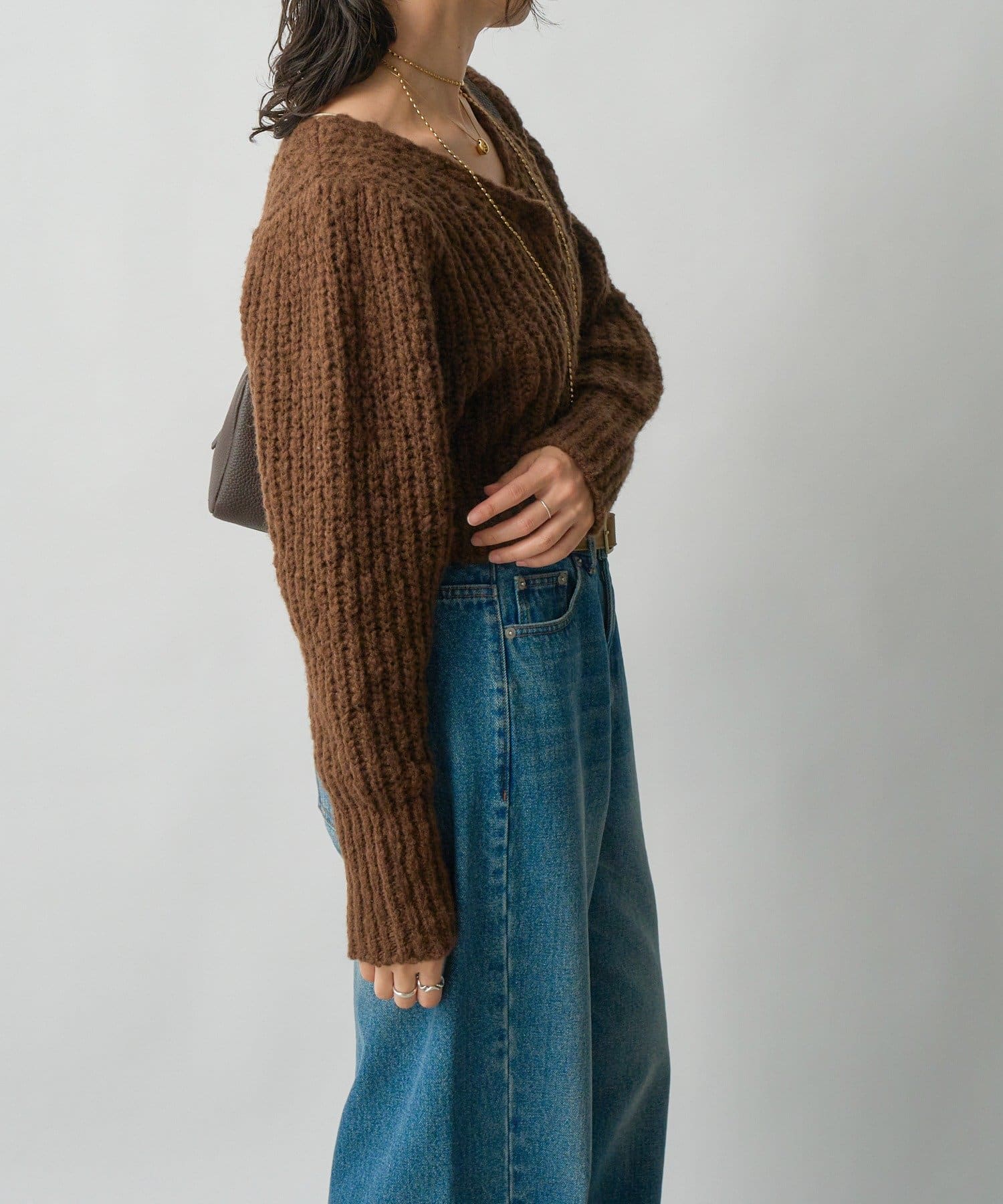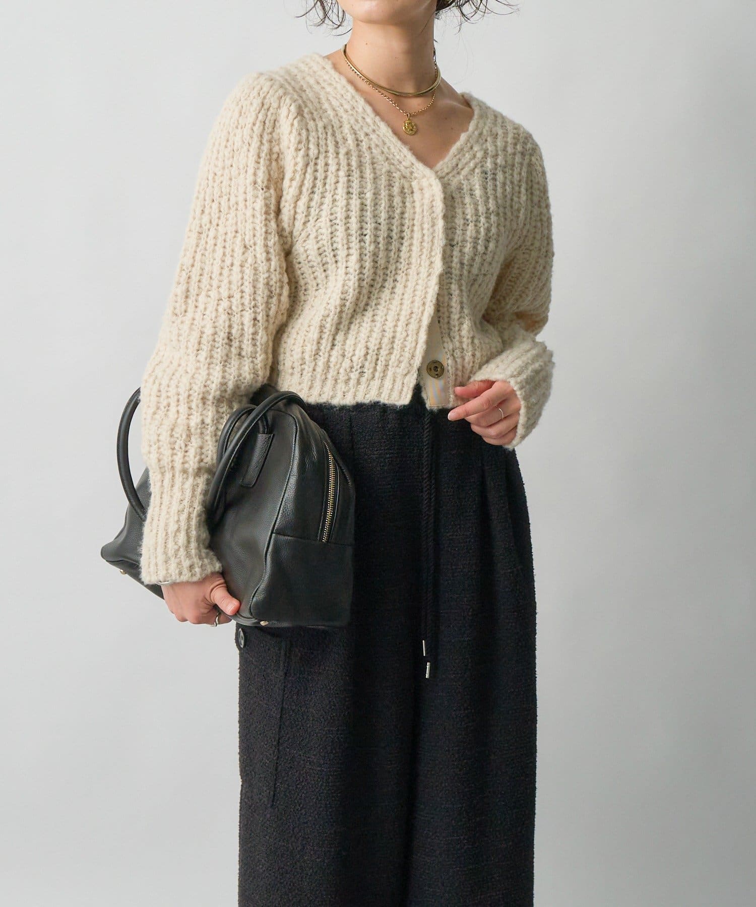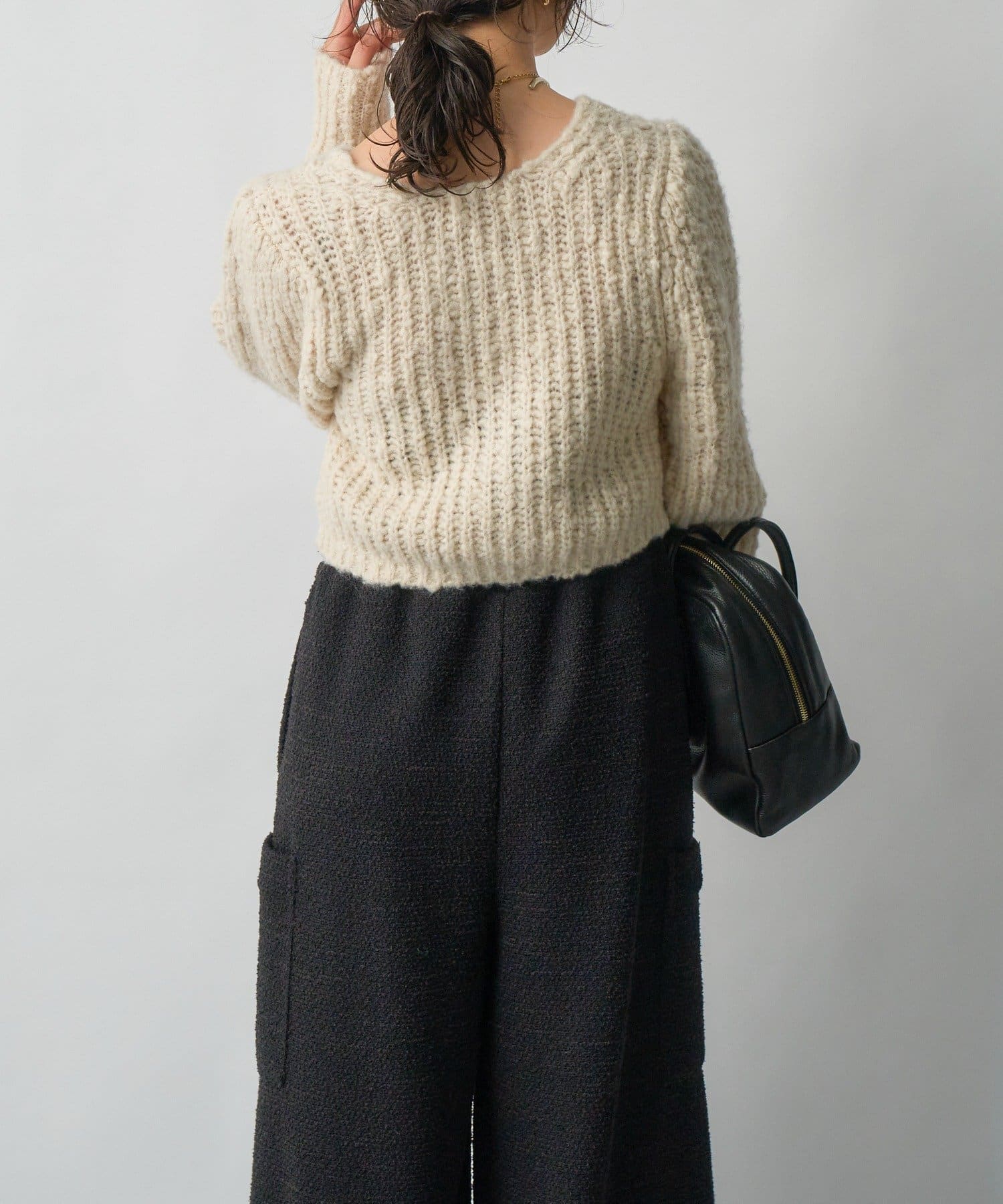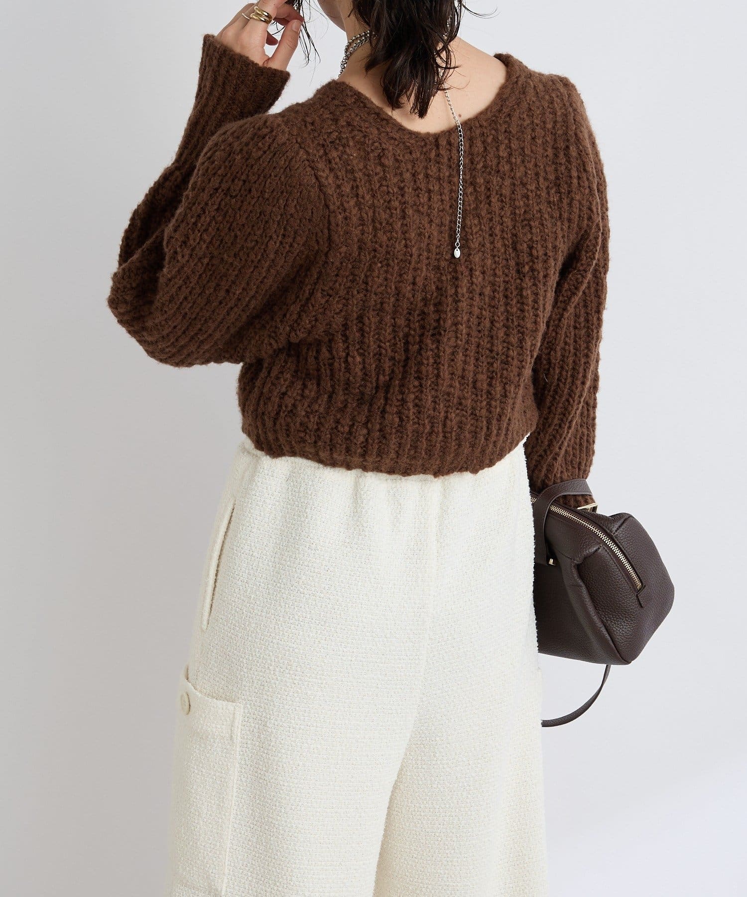 ・スラブヤーンならではチャンキーな表情がシーズンムードを盛り上げるデザインニット