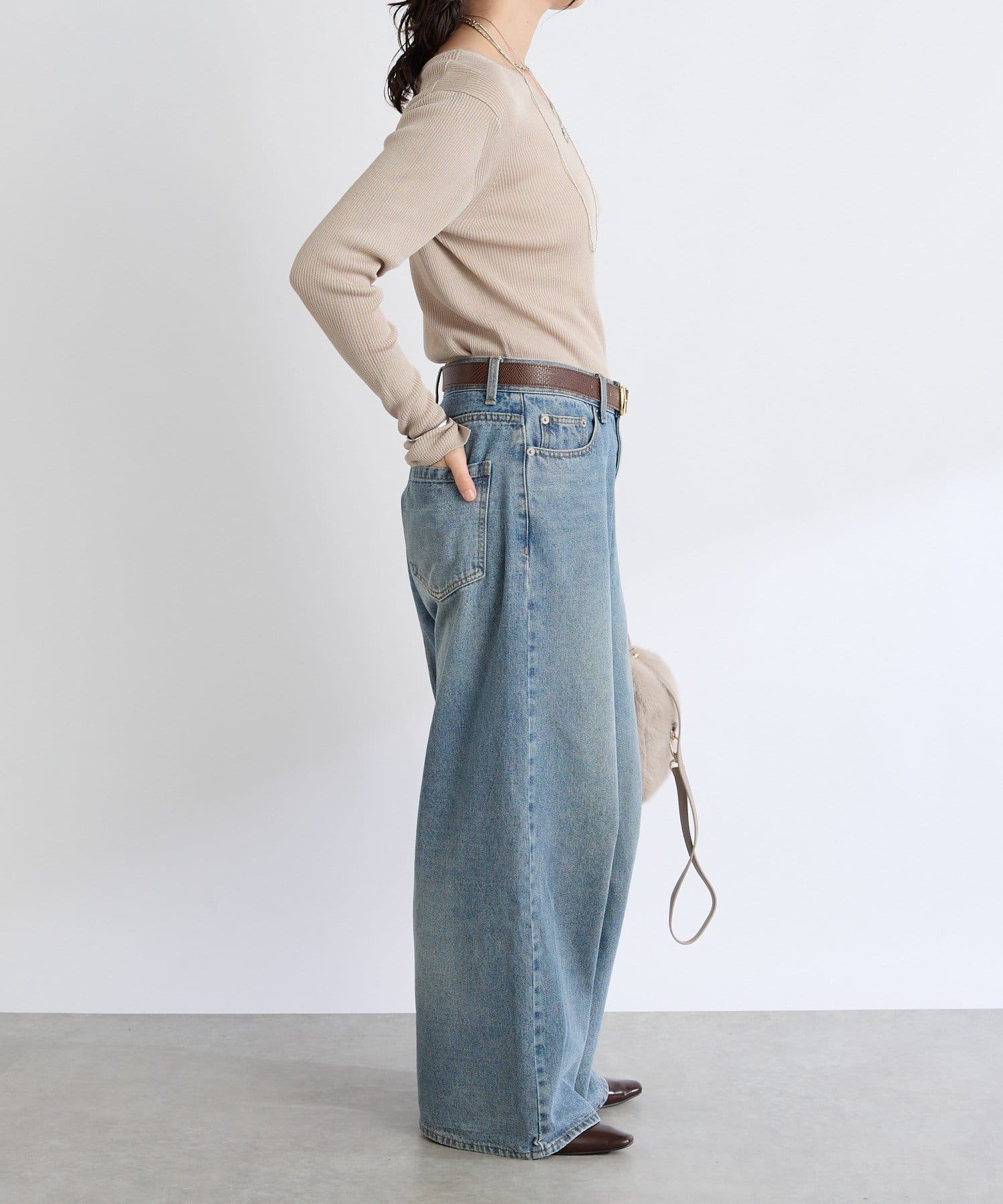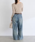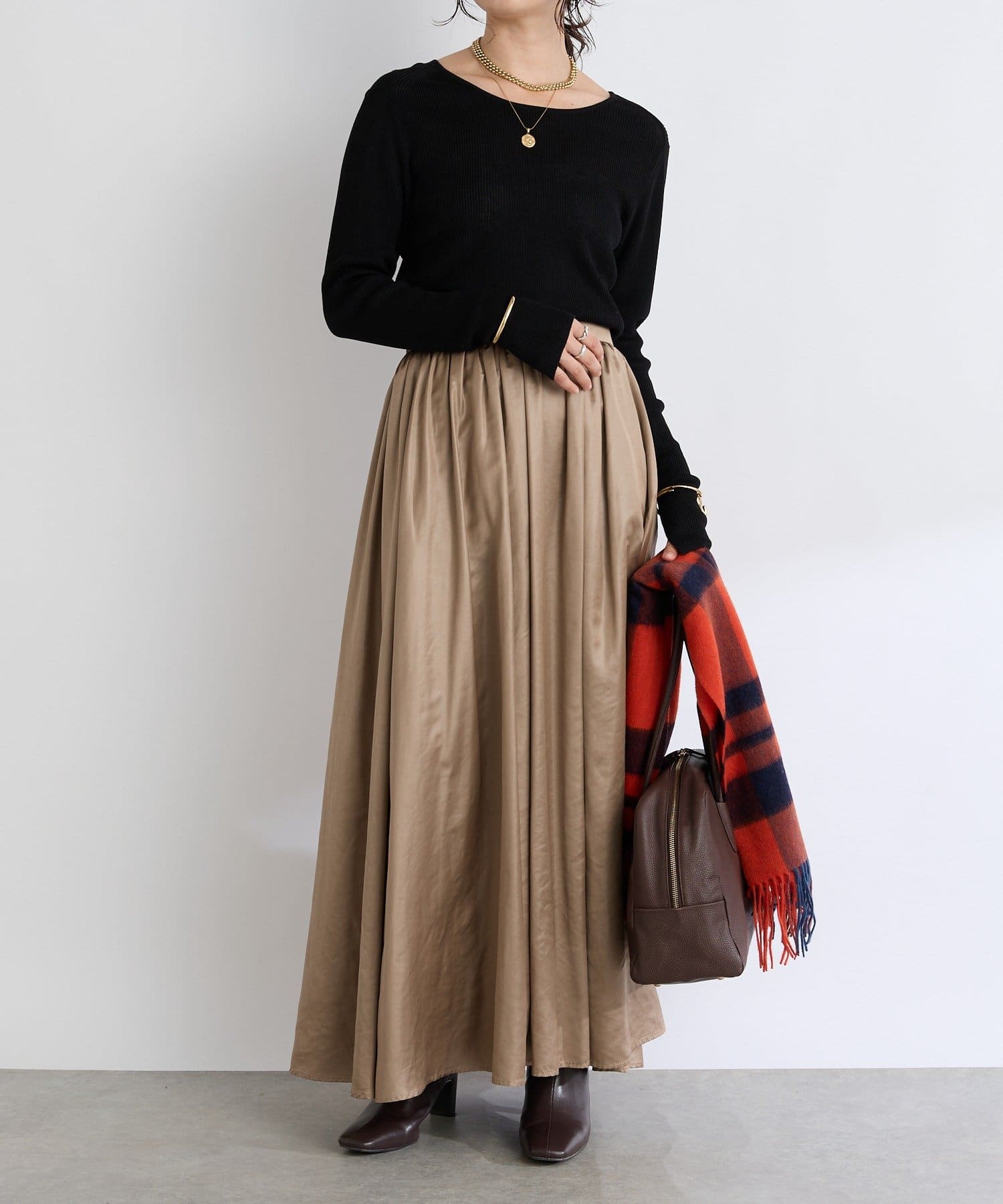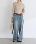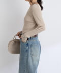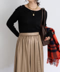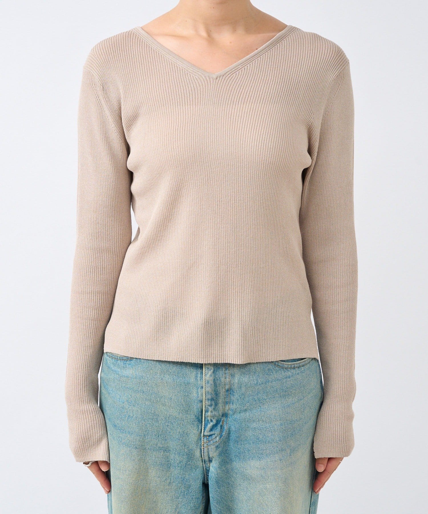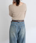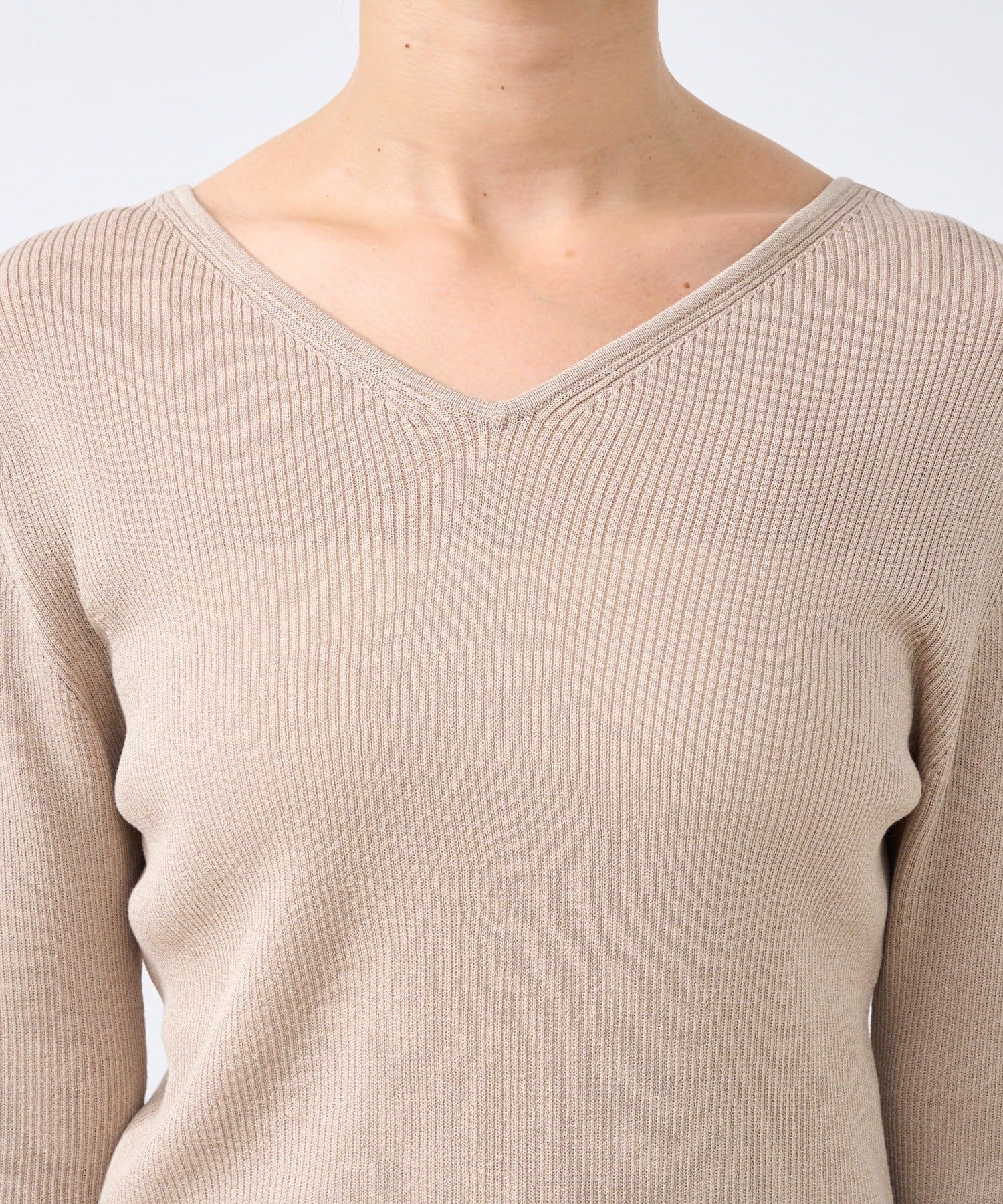 ・ミニマルなデザインのリブニットに、さりげなく袖ぐりと肩にかけて入れた編立てのディテールがポイント