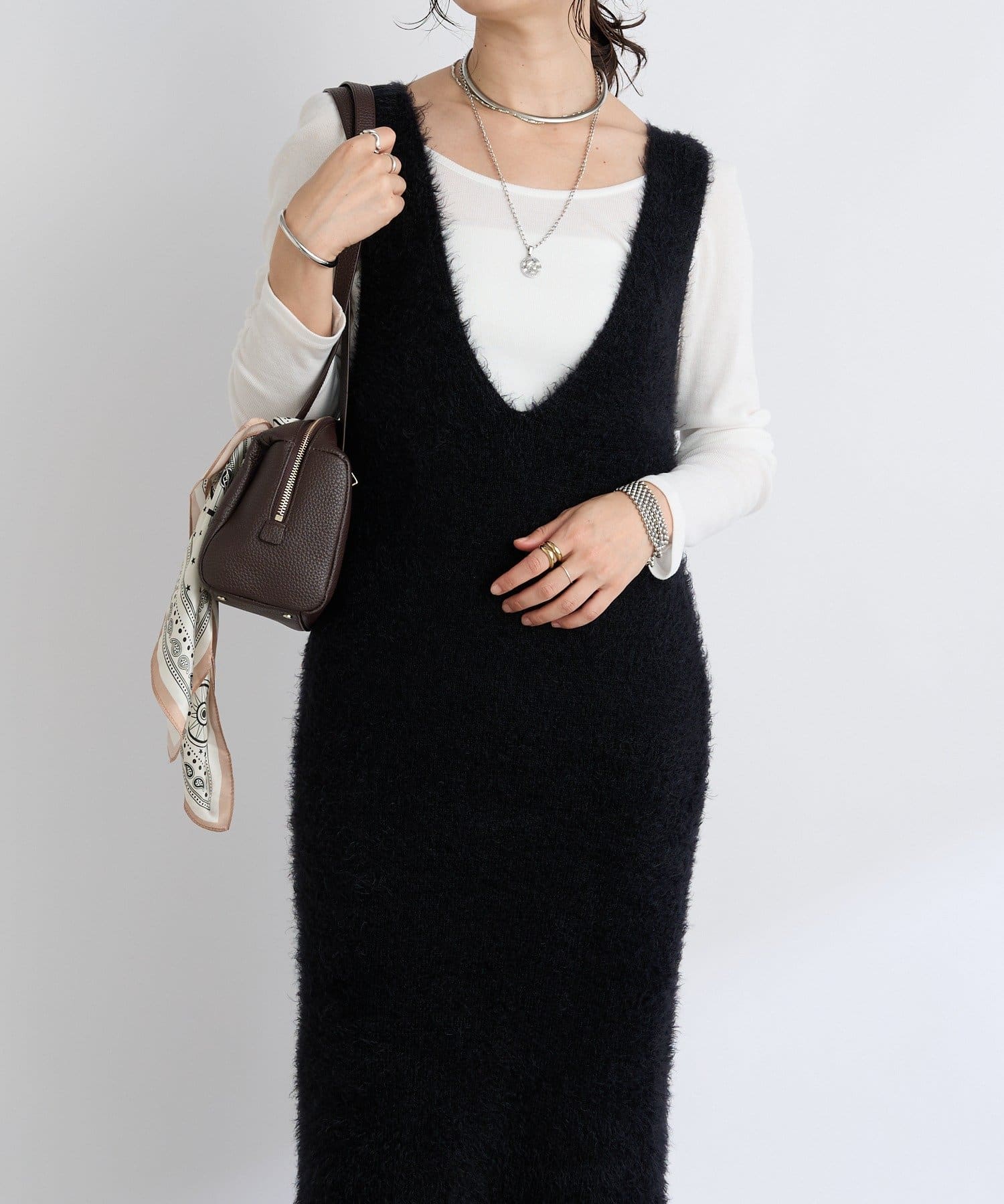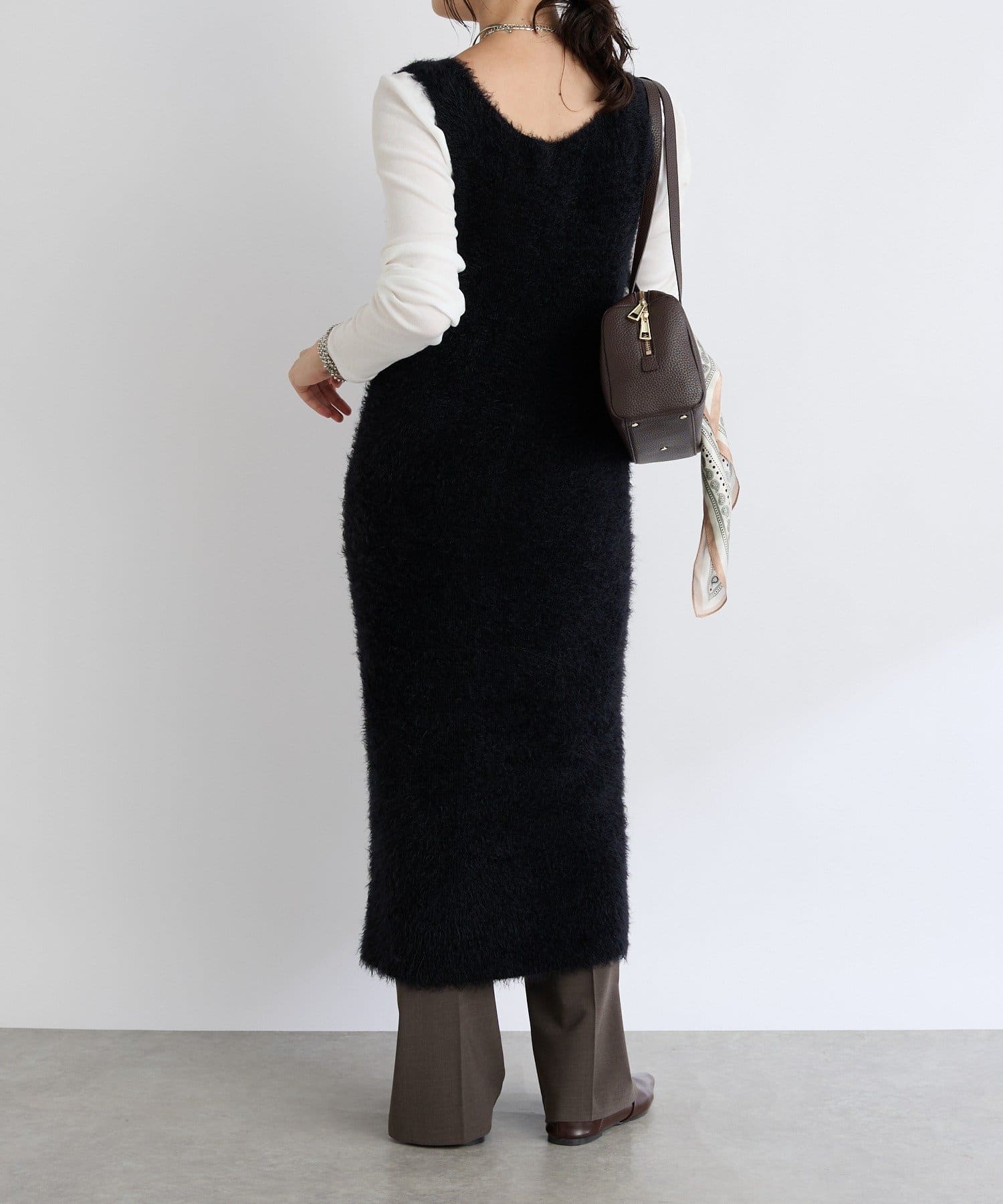 ・キャッチーなフェザーヤーンでコーディネートのポイントになるニットワンピース