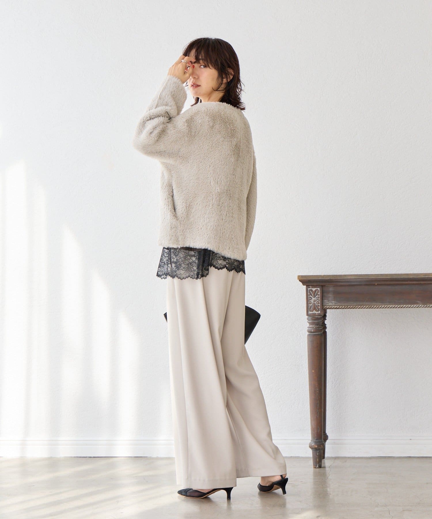 ・ファーライクな毛並みととろける肌触りが心地よく、着映えする素材感