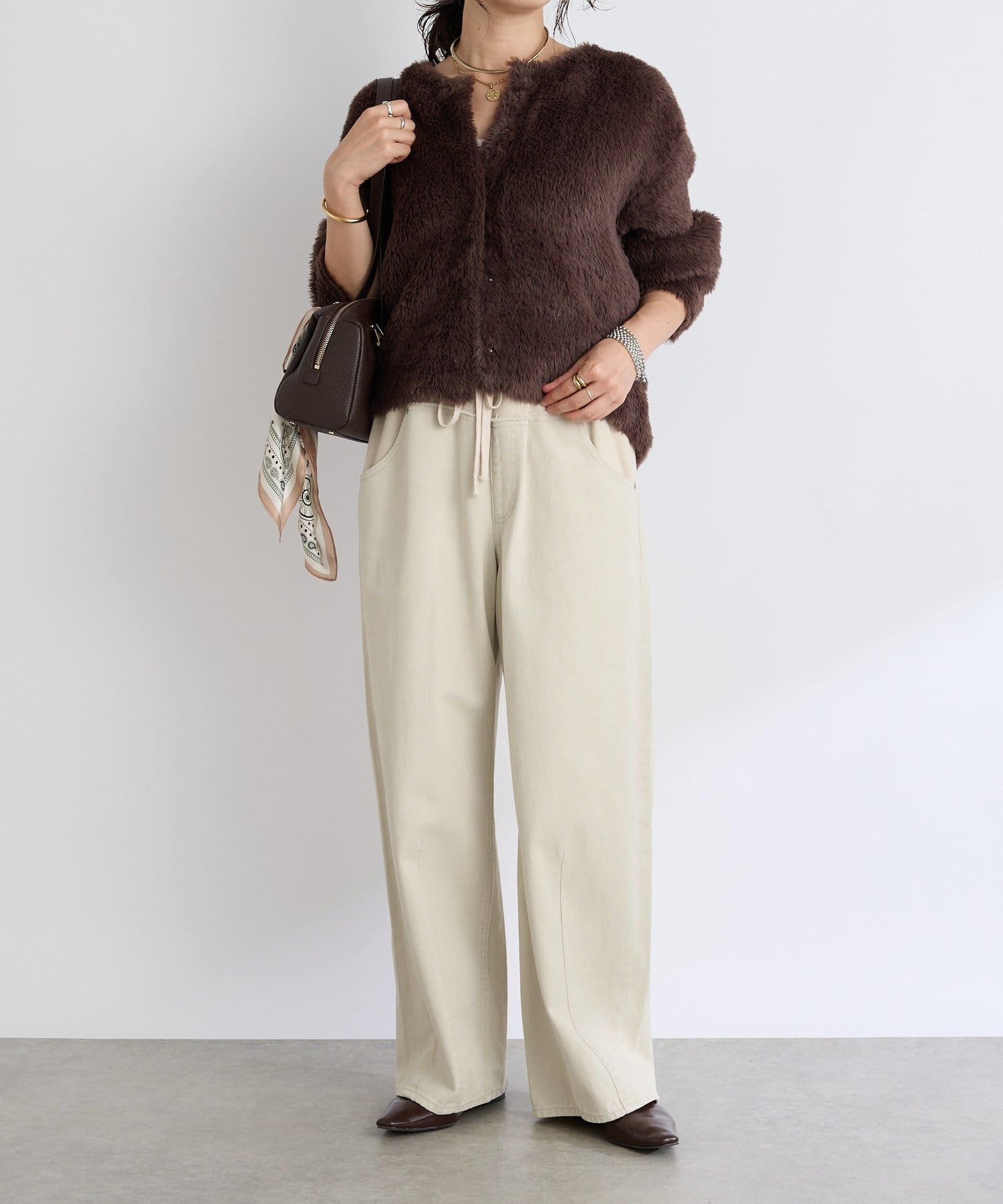 ・昨年好評だったダブルフェイスシャギーカーデの着丈が6cm短くなってリバイバル。